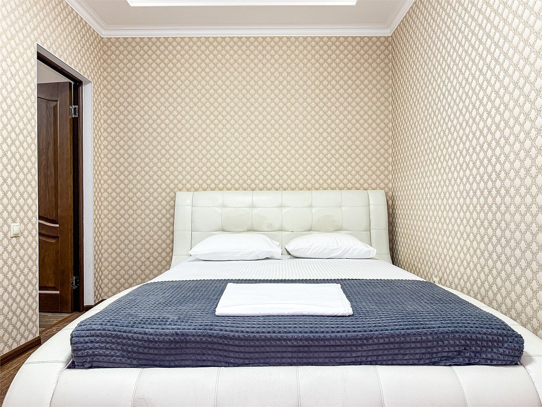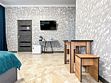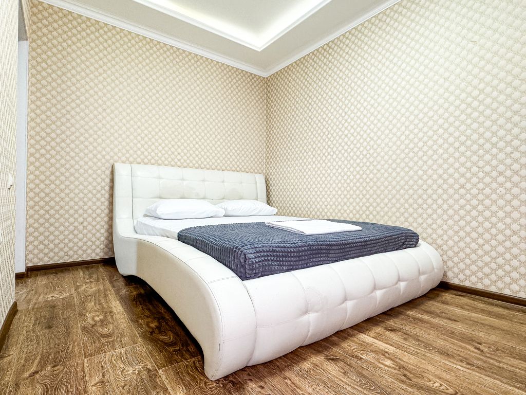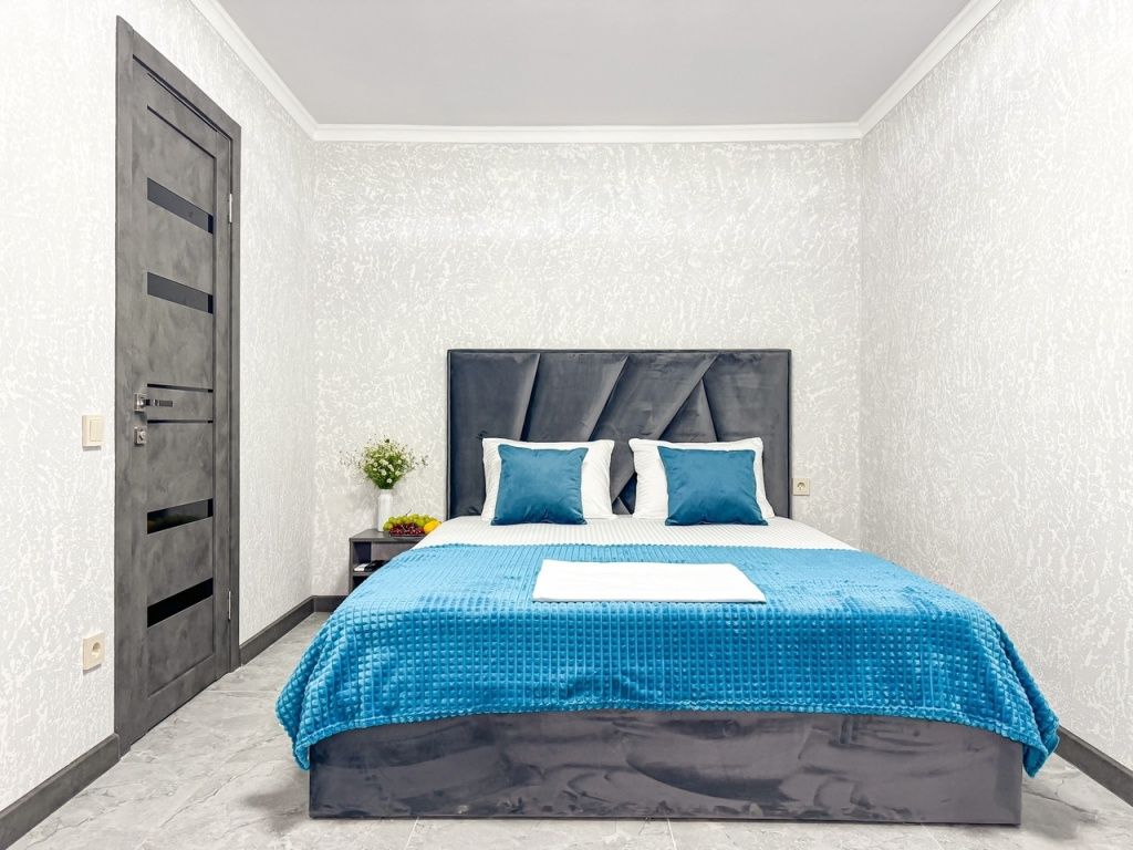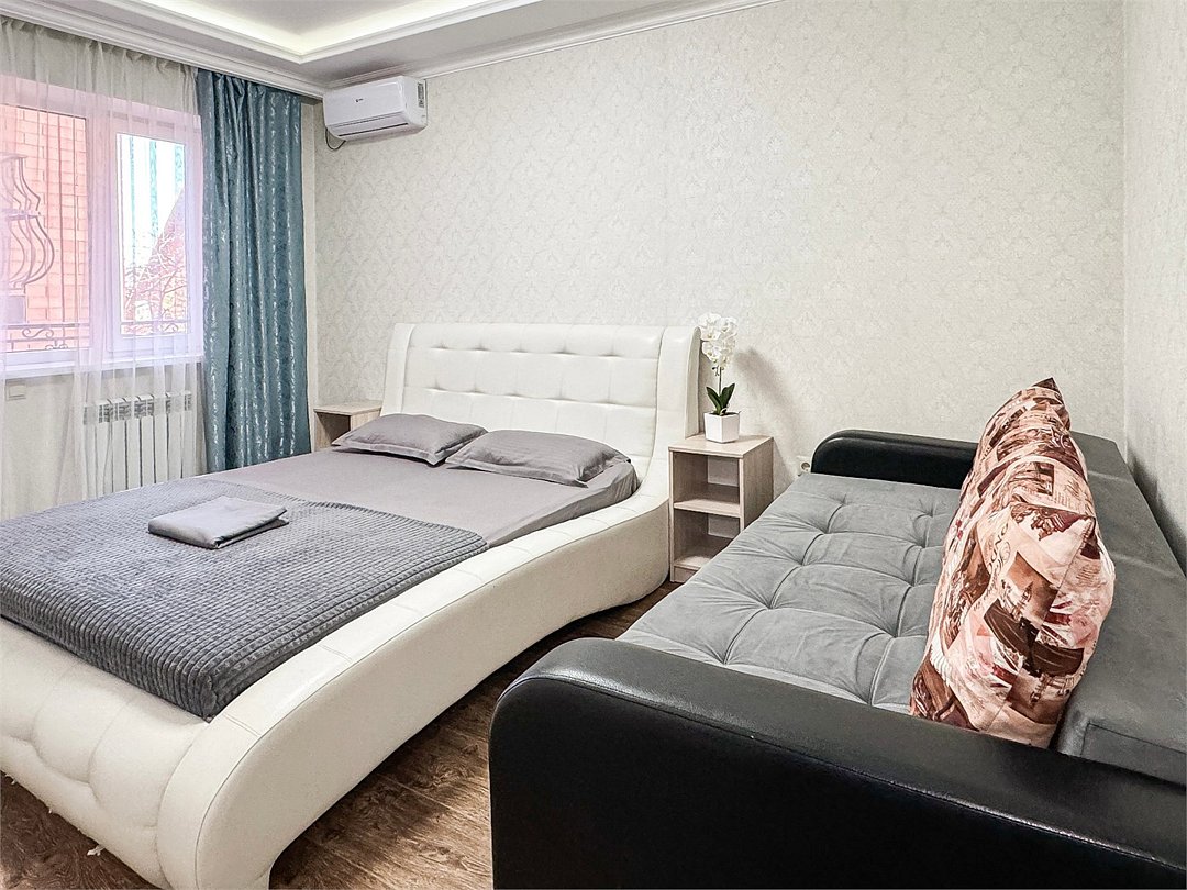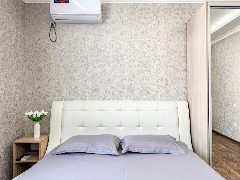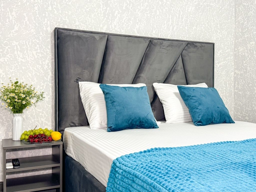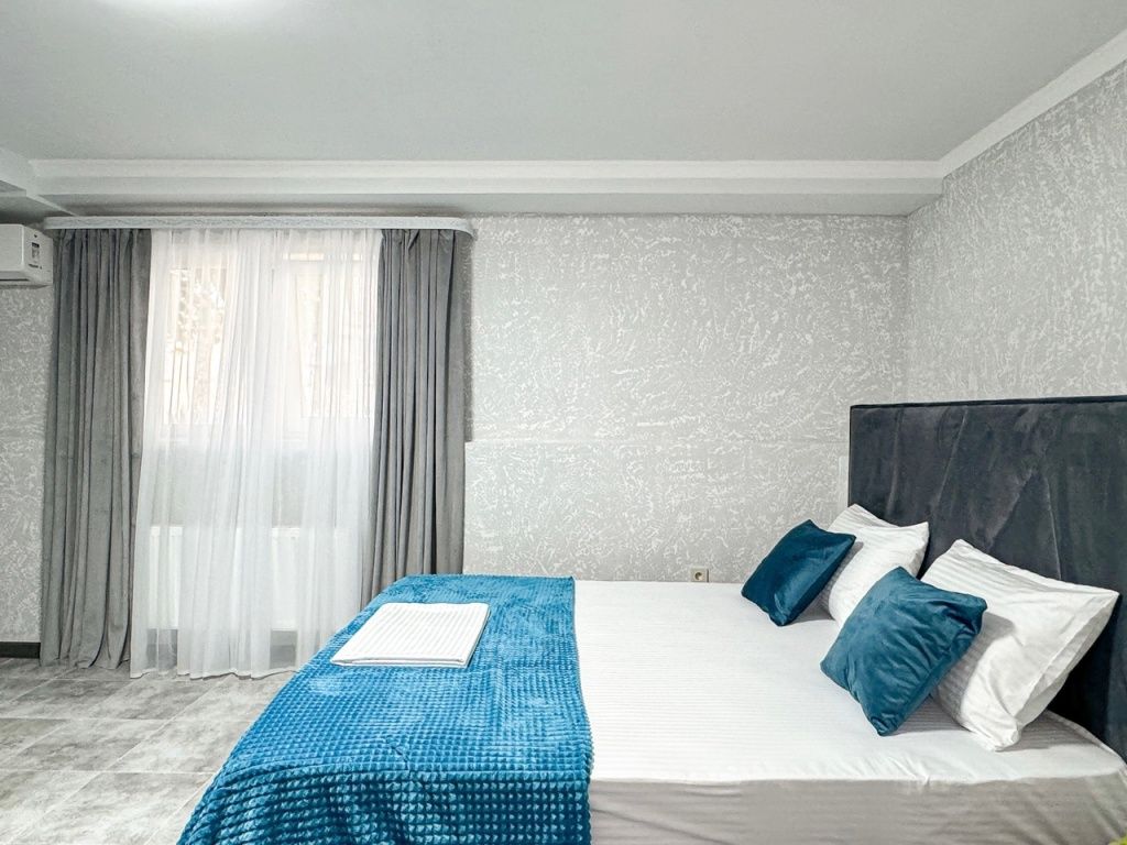Однокомнатный для размещения семьи 2 взрослых и ребенок или 3 взрослых (+1 ребенок может ночевать с родителями). Спальные места: двуспальная кровать + дополнительное односпальное место (пуф-трансформер - раскладывается 76*200, нагрузка до 120 кг). В номере кондиционер, шкаф, холодильник, чайник, небольшой набор посуды, фен, телевизор.