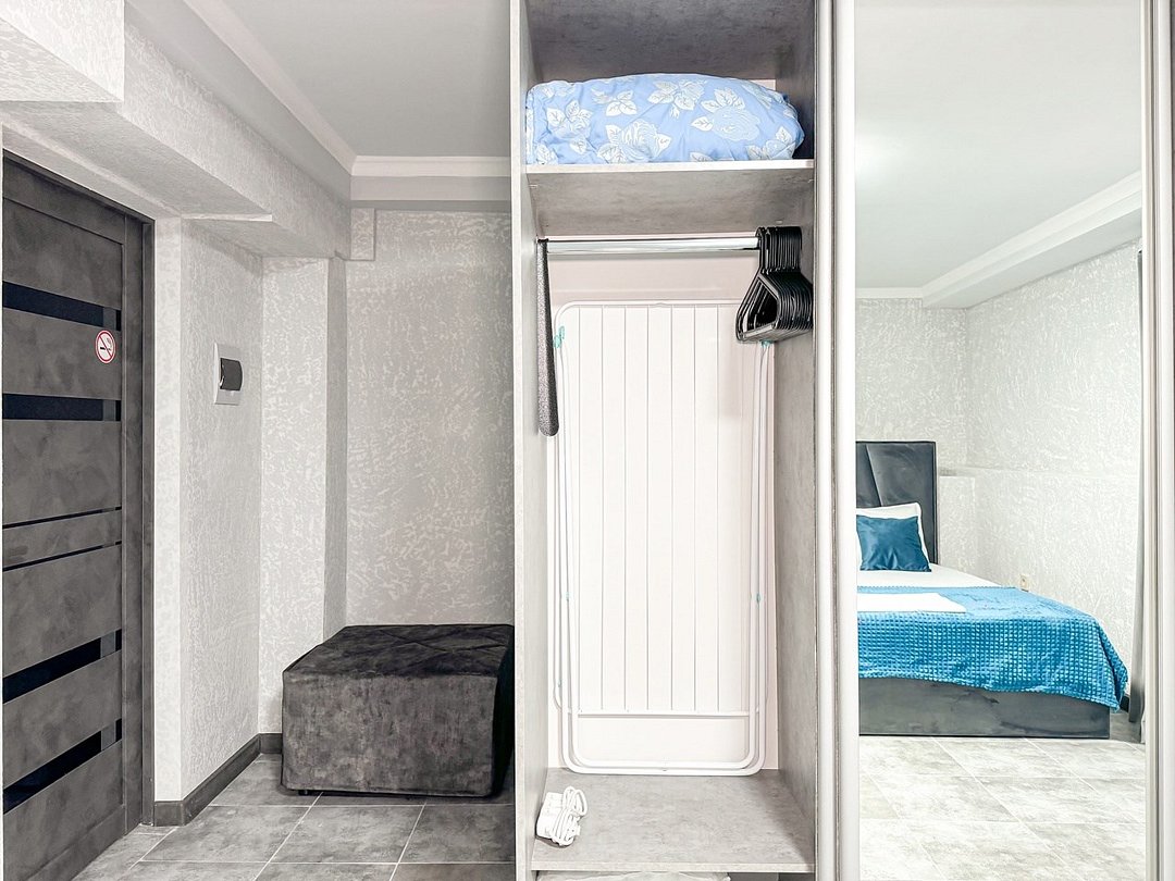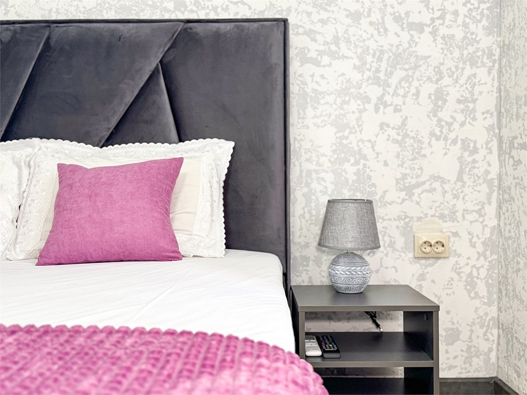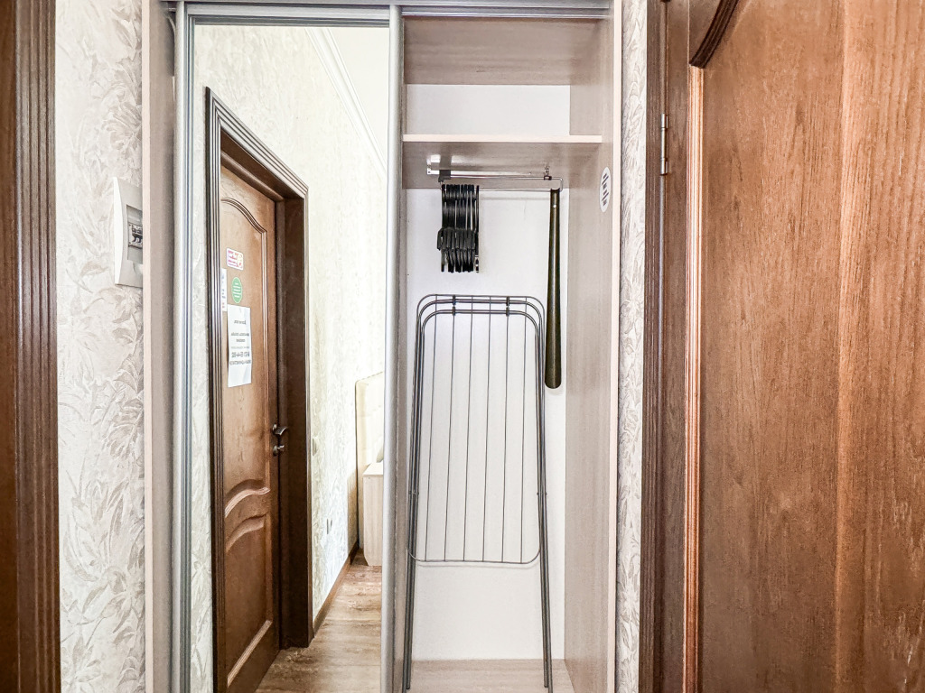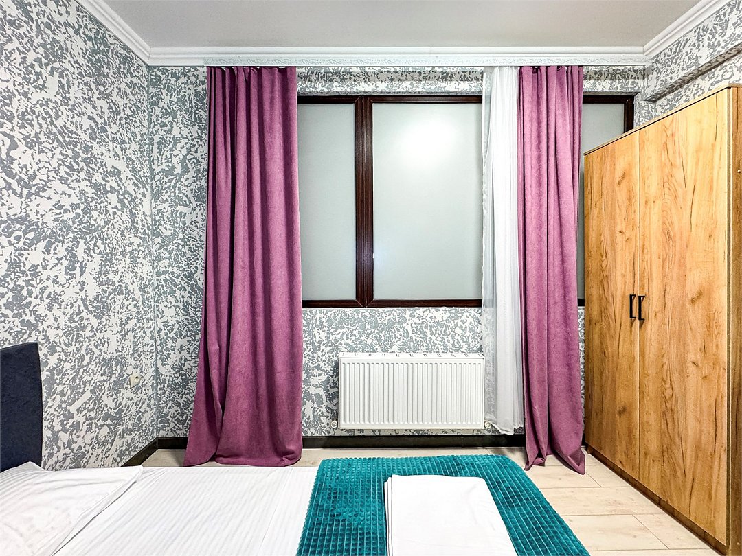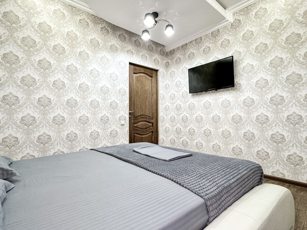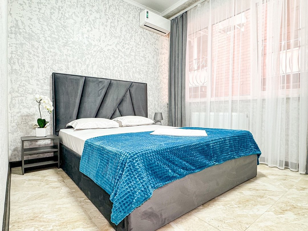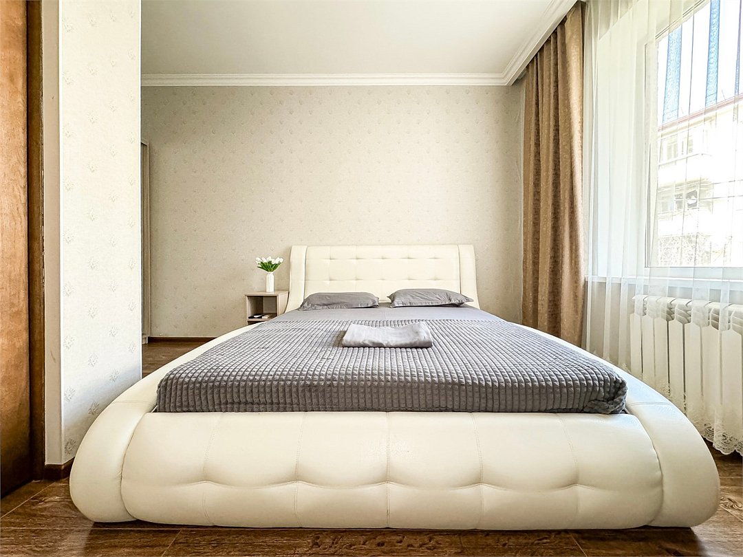 Однокомнатный для размещения семьи 2 взрослых и ребенок или 3 взрослых (+1 ребенок может ночевать с родителями). Спальные места: двуспальная кровать + дополнительное односпальное место (пуф-трансформер - раскладывается 76*200, нагрузка до 120 кг). В номере кондиционер, шкаф, холодильник, чайник, небольшой набор посуды, фен, телевизор.