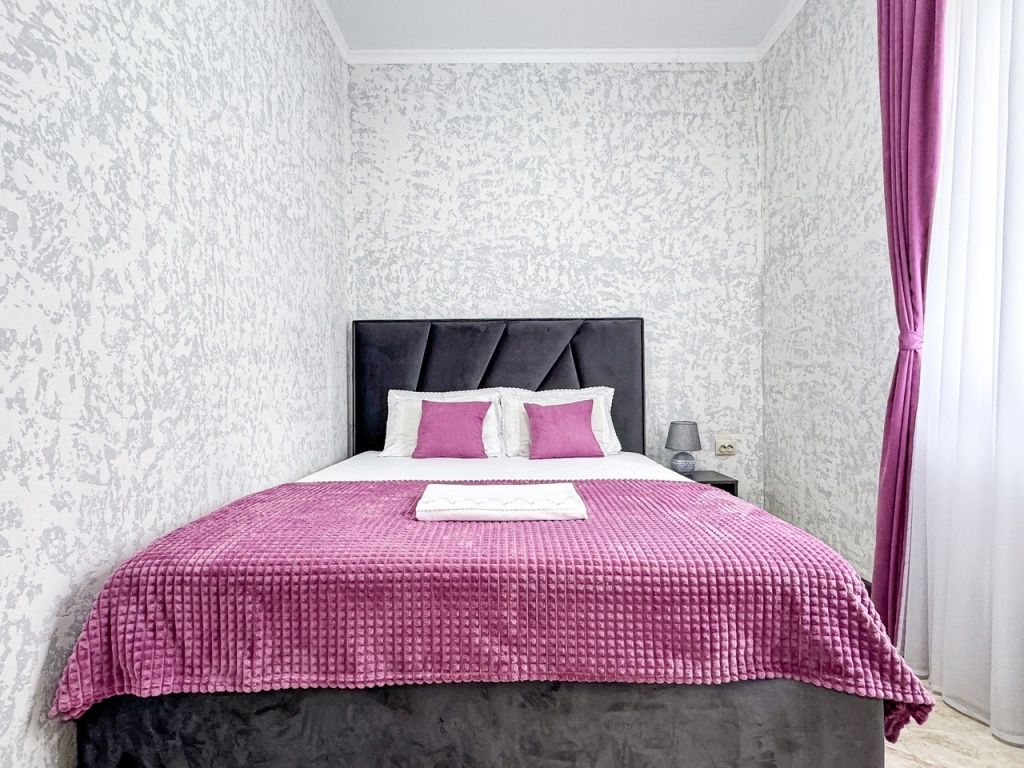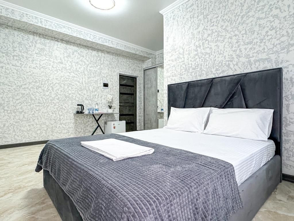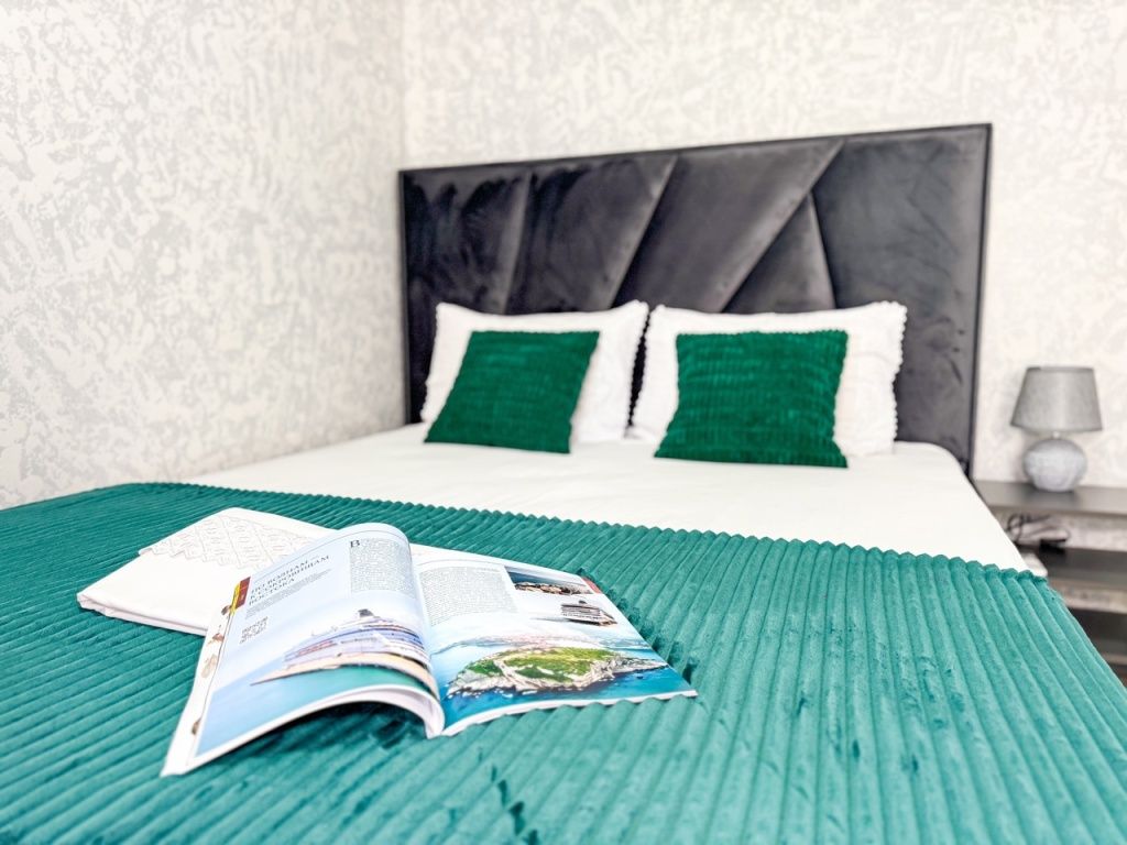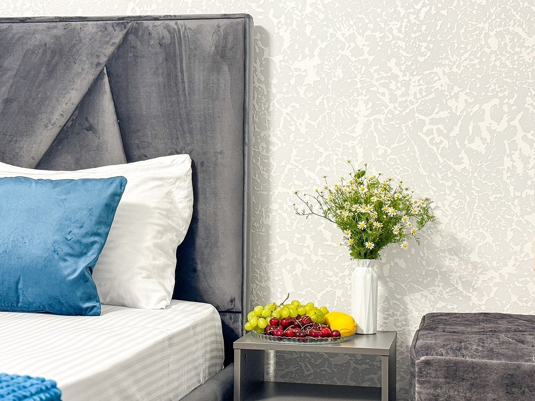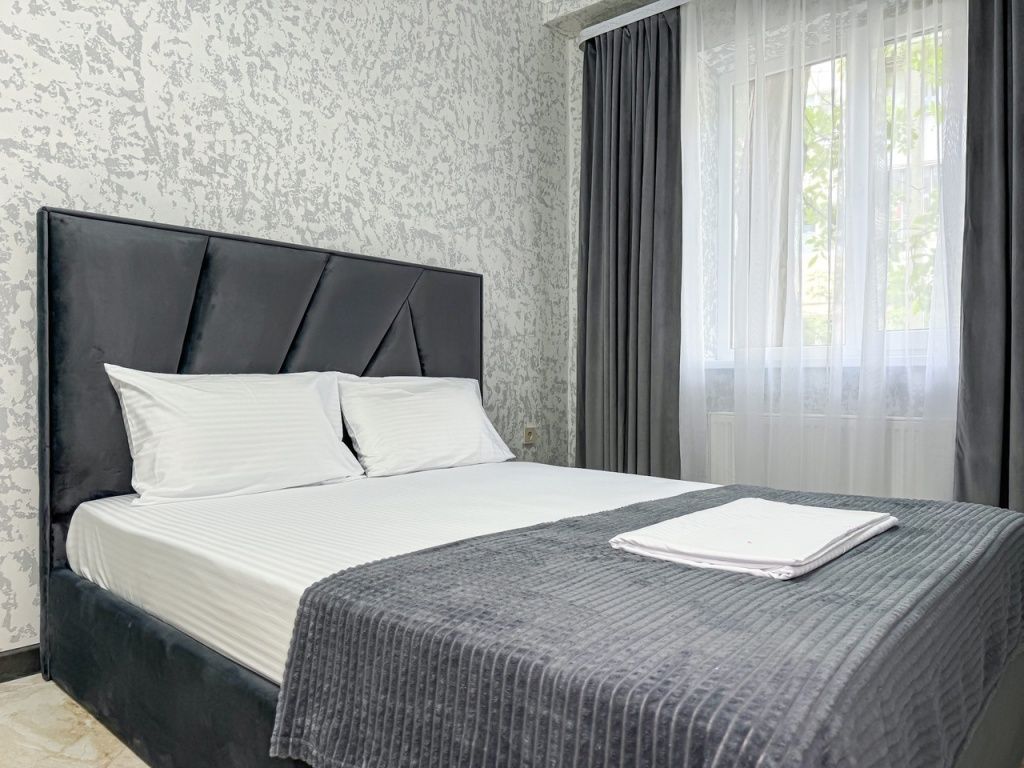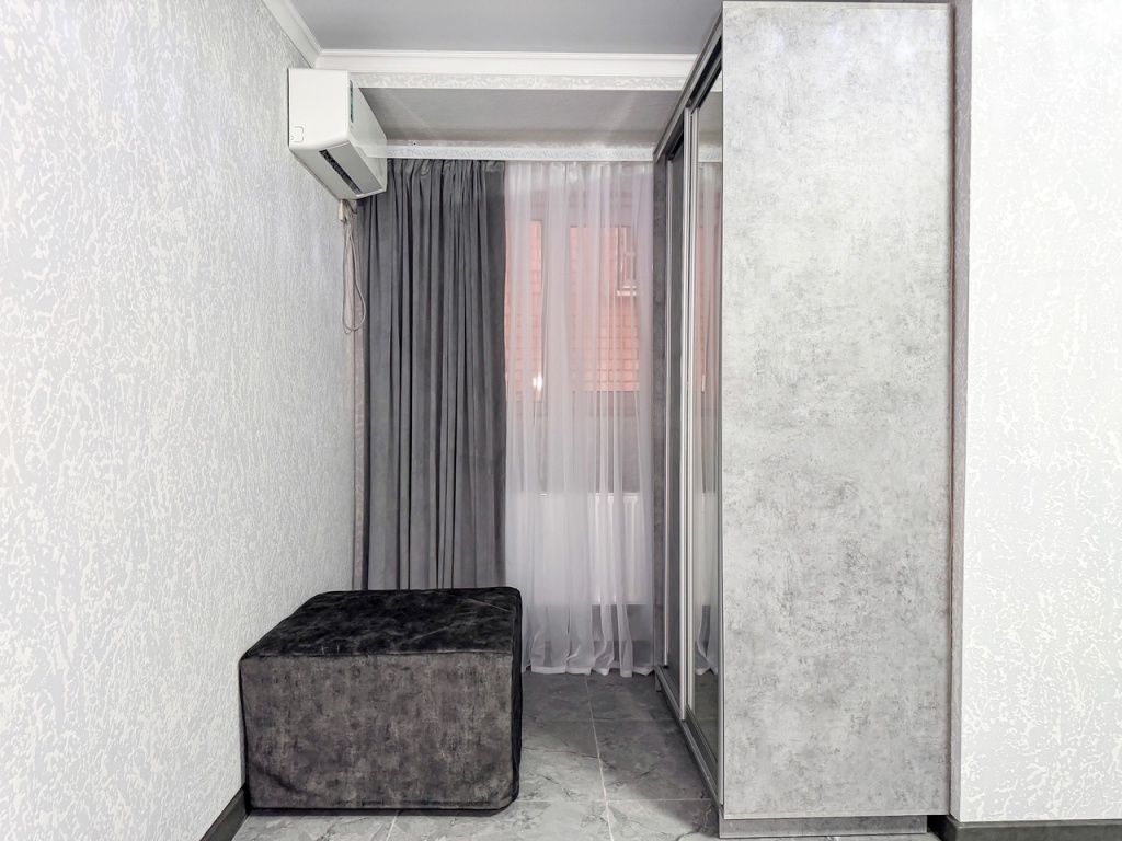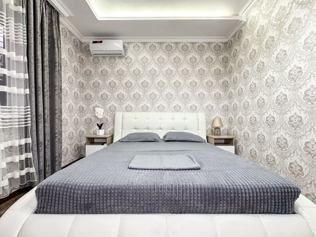 Однокомнатный для размещения семьи 2 взрослых и ребенок или 3 взрослых (+1 ребенок может ночевать с родителями). Спальные места: двуспальная кровать + дополнительное односпальное место (пуф-трансформер - раскладывается 76*200, нагрузка до 120 кг). В номере кондиционер, шкаф, холодильник, чайник, небольшой набор посуды, фен, телевизор.