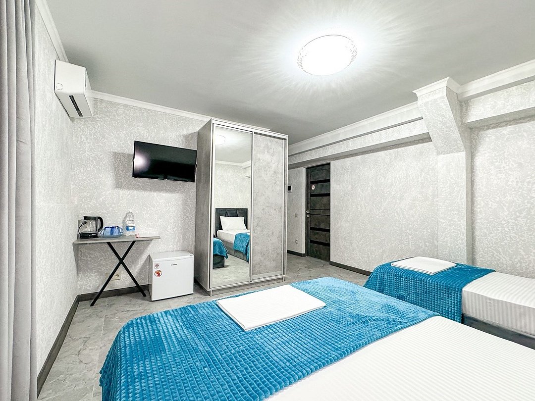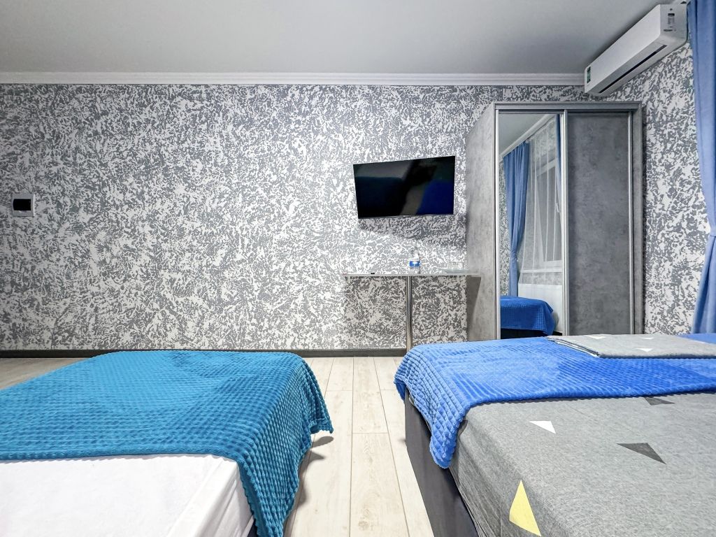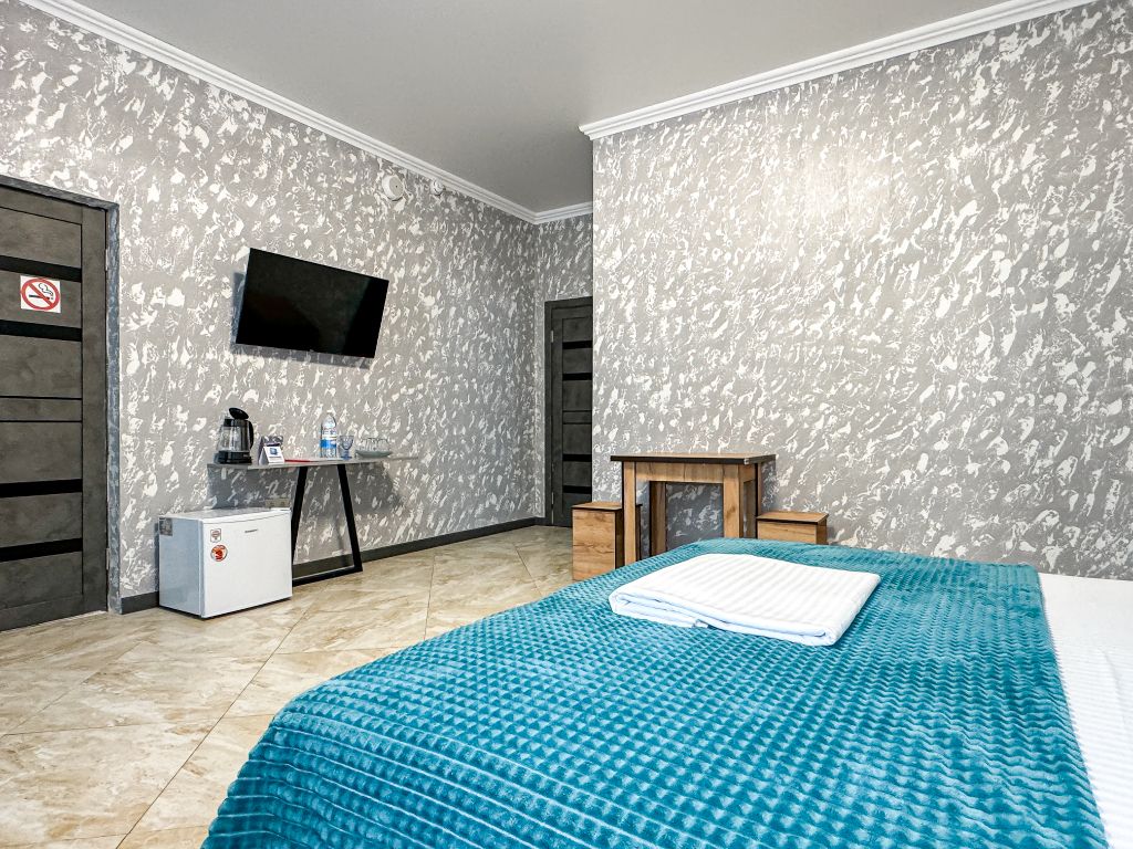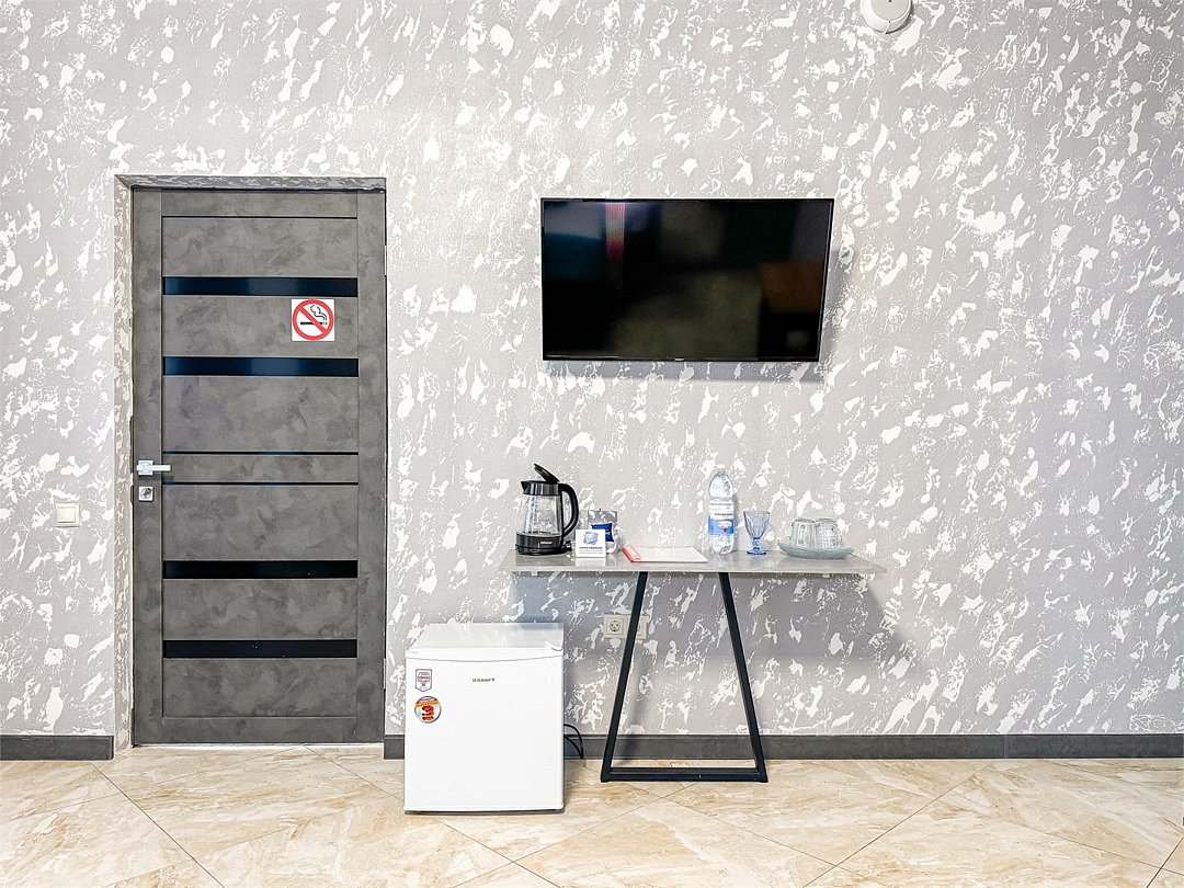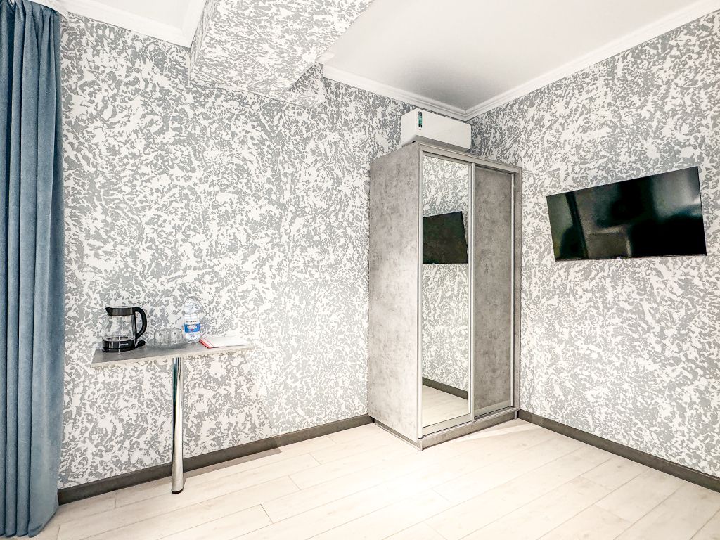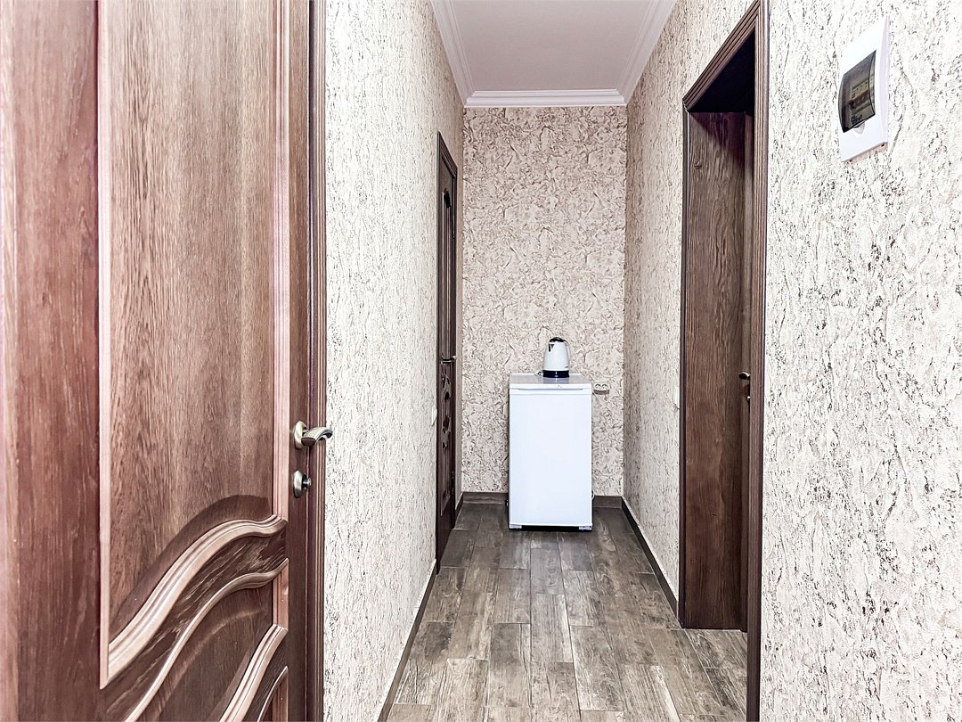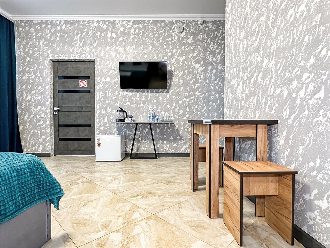 Однокомнатный номер, где можно разместить до 3 гостей. В номере двуспальная кровать + односпальная кровать. В номере, как и в остальных наших номерах обязательный набор удобств для комфортного отдыха: кондиционер, свой душ и туалет, телевизор, чайник с чашками и тарелочками, холодильник, шкаф, фен, тапочки. Особенность этого номера - из окна нет вида. Вид из окна либо в холл гостевого дома, либо на стену соседнего здания Таких номеров у нас 3. Построены июнь 2024. Все номера этой категории на 1 этажеУслуги и удобства