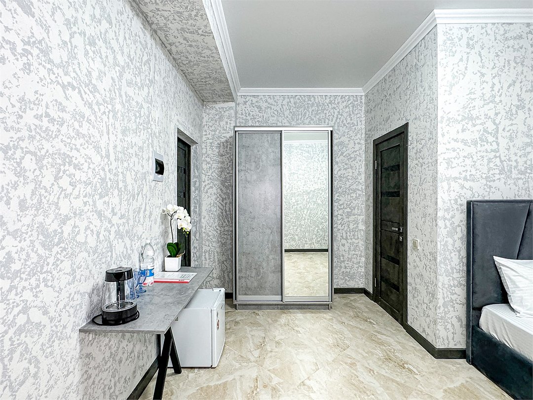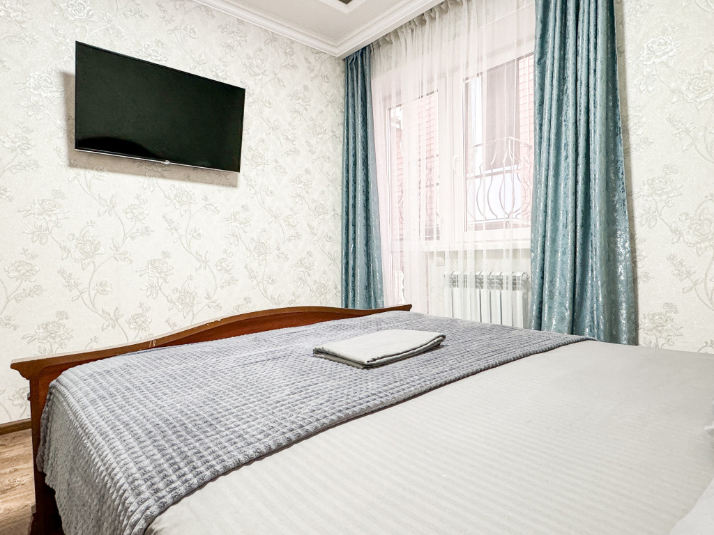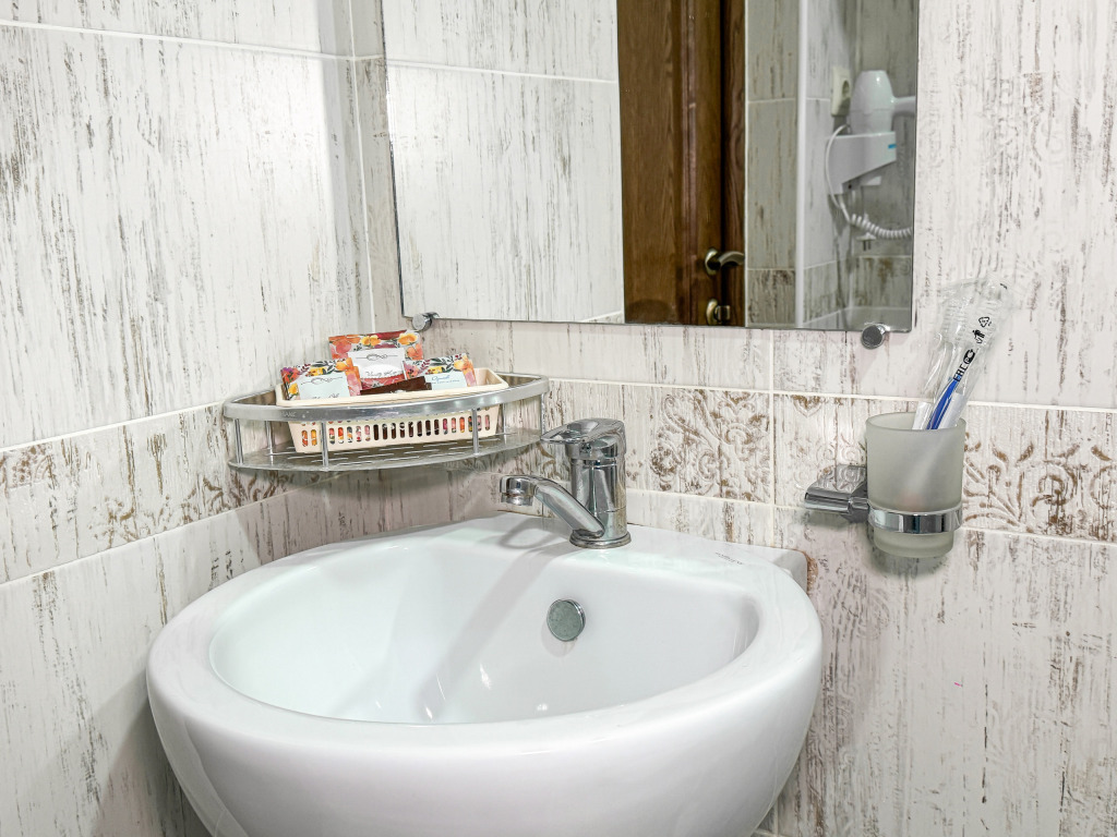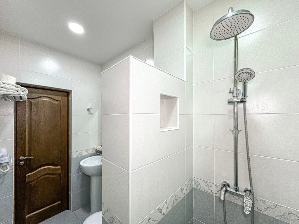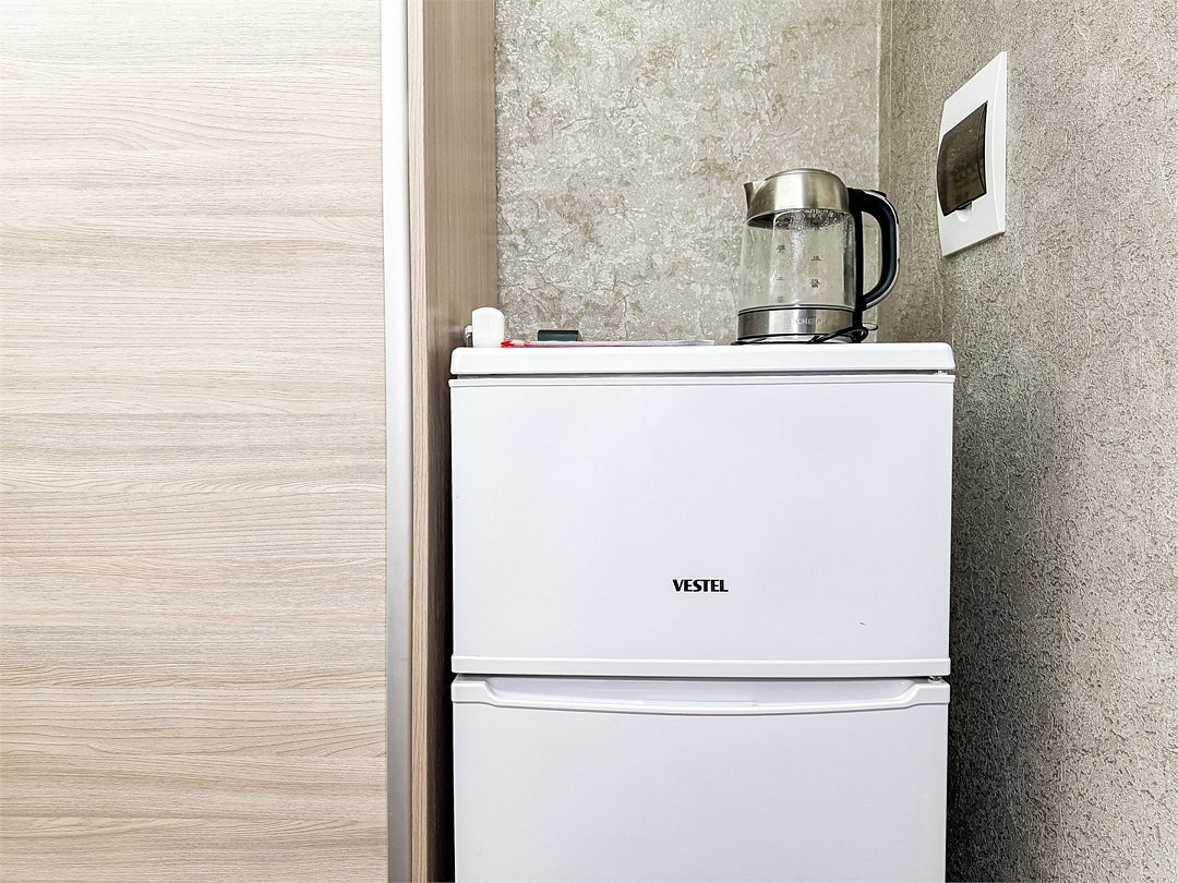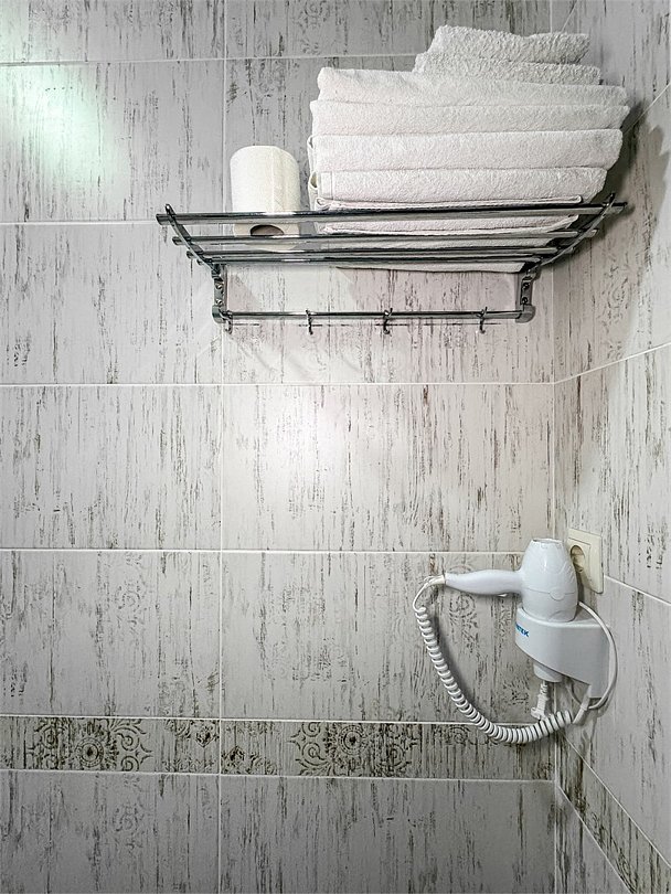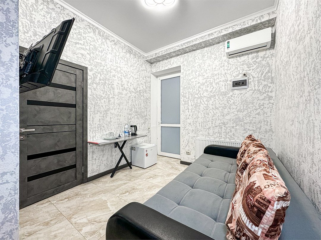 Однокомнатный номер, где можно разместить до 3 гостей. В номере двуспальная кровать + односпальная кровать. В номере, как и в остальных наших номерах обязательный набор удобств для комфортного отдыха: кондиционер, свой душ и туалет, телевизор, чайник с чашками и тарелочками, холодильник, шкаф, фен, тапочки. Особенность этого номера - из окна нет вида. Вид из окна либо в холл гостевого дома, либо на стену соседнего здания Таких номеров у нас 3. Построены июнь 2024. Все номера этой категории на 1 этажеУслуги и удобства