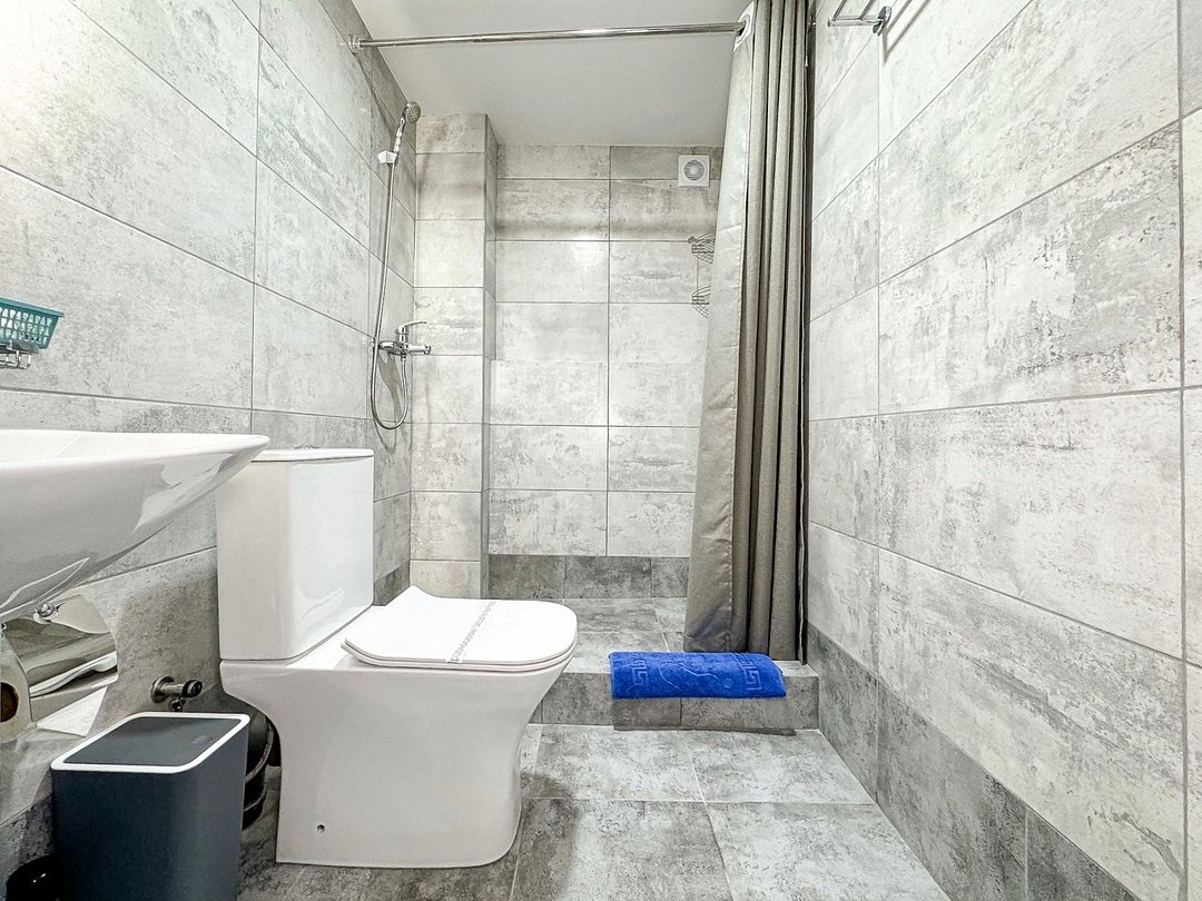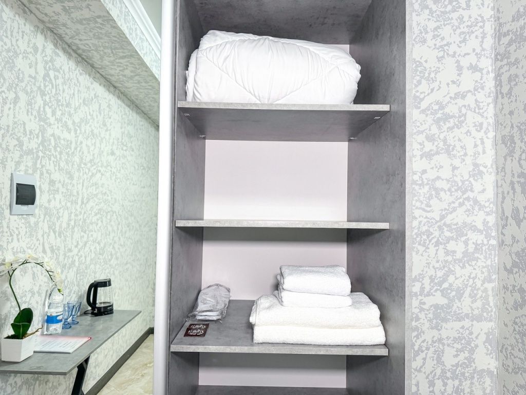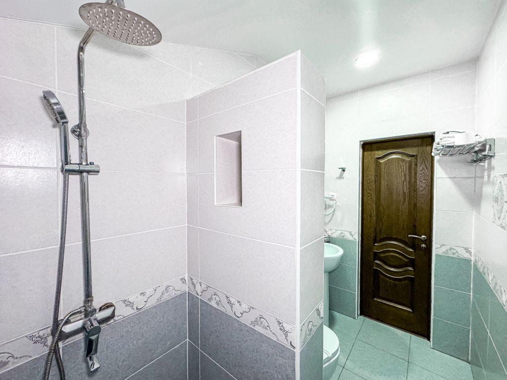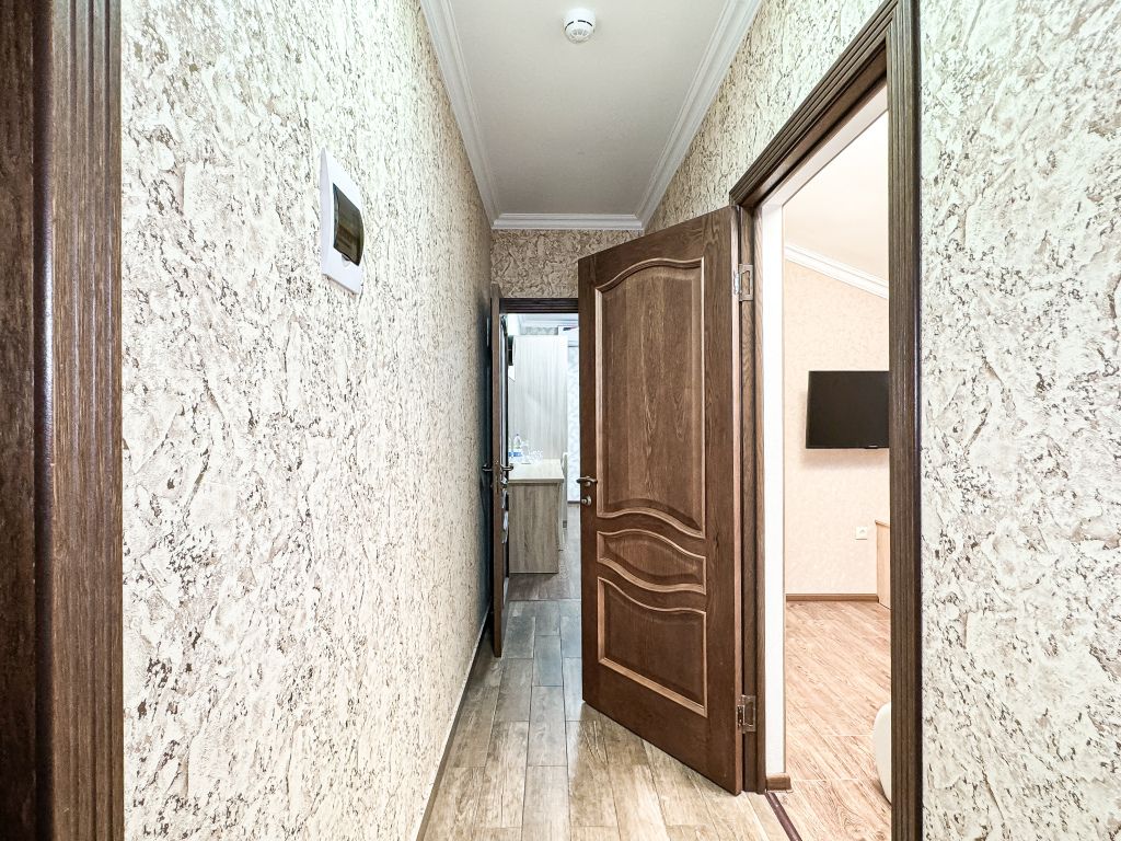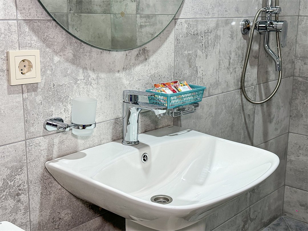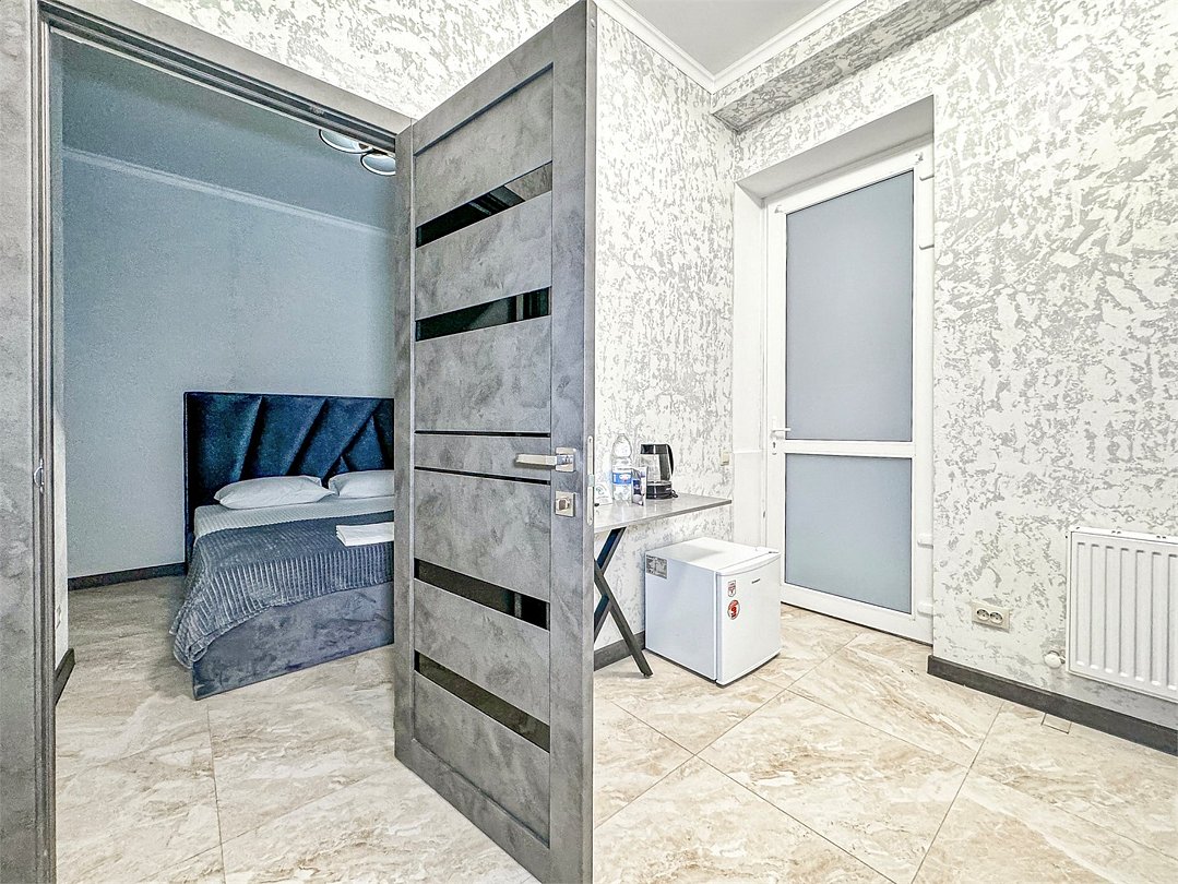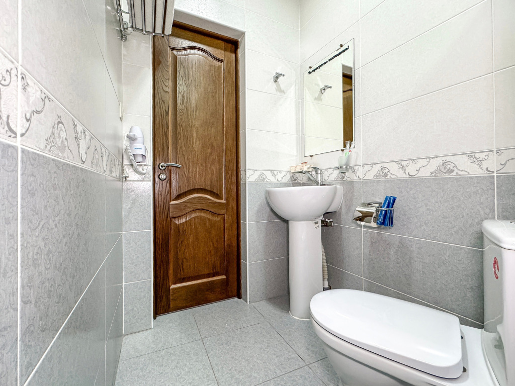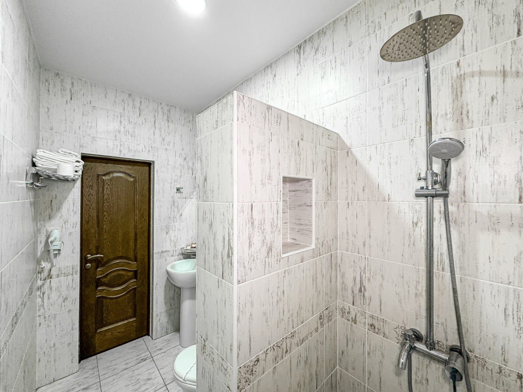 Однокомнатный номер, где можно разместить до 3 гостей. В номере двуспальная кровать + односпальная кровать. В номере, как и в остальных наших номерах обязательный набор удобств для комфортного отдыха: кондиционер, свой душ и туалет, телевизор, чайник с чашками и тарелочками, холодильник, шкаф, фен, тапочки. Особенность этого номера - из окна нет вида. Вид из окна либо в холл гостевого дома, либо на стену соседнего здания Таких номеров у нас 3. Построены июнь 2024. Все номера этой категории на 1 этажеУслуги и удобства