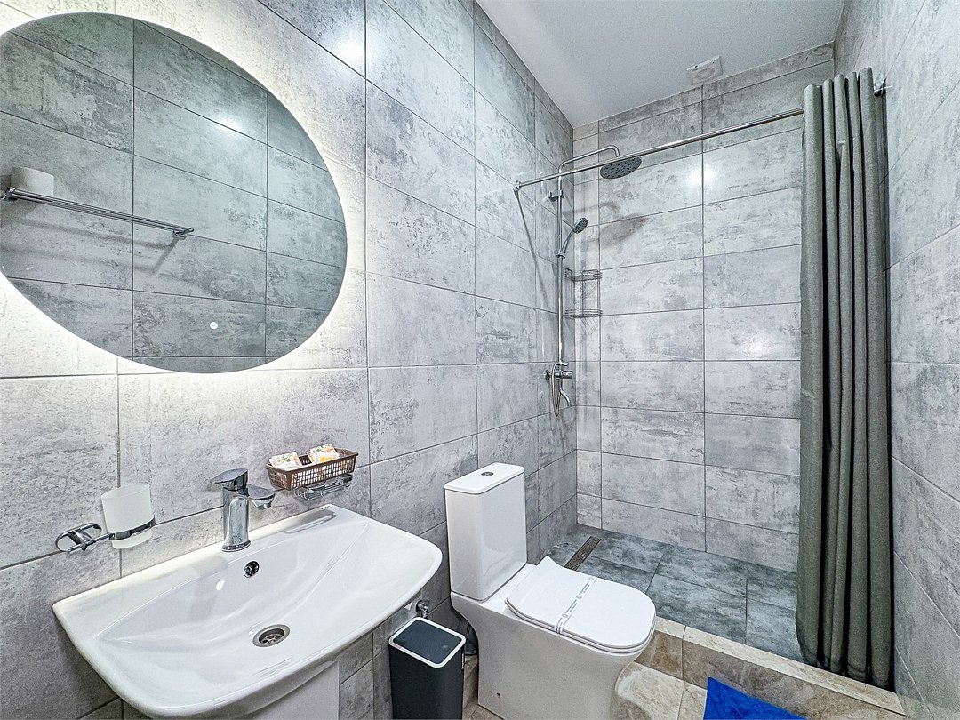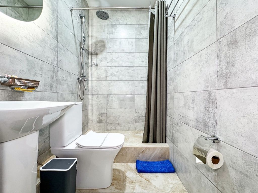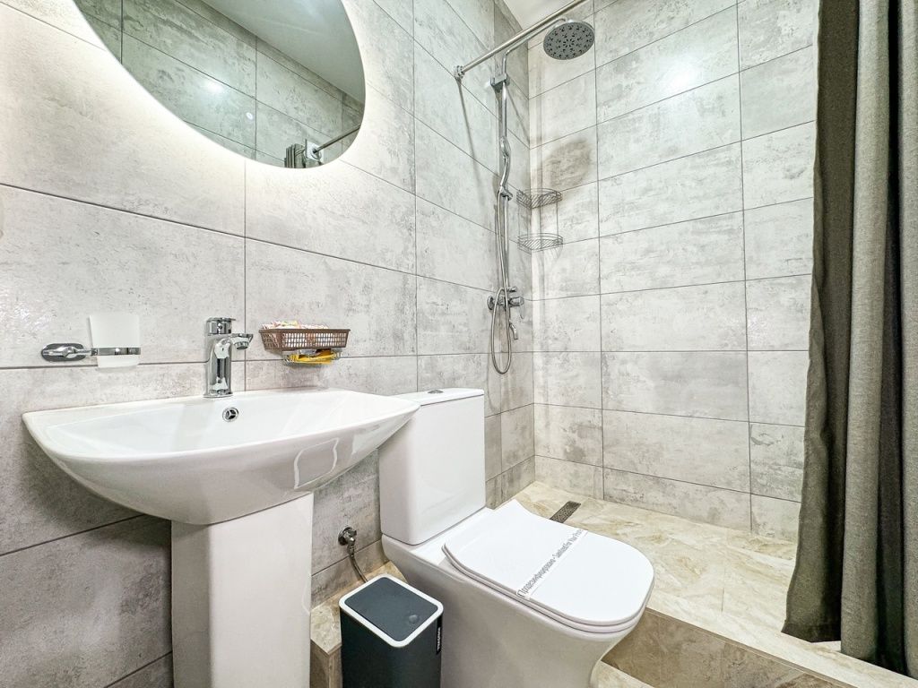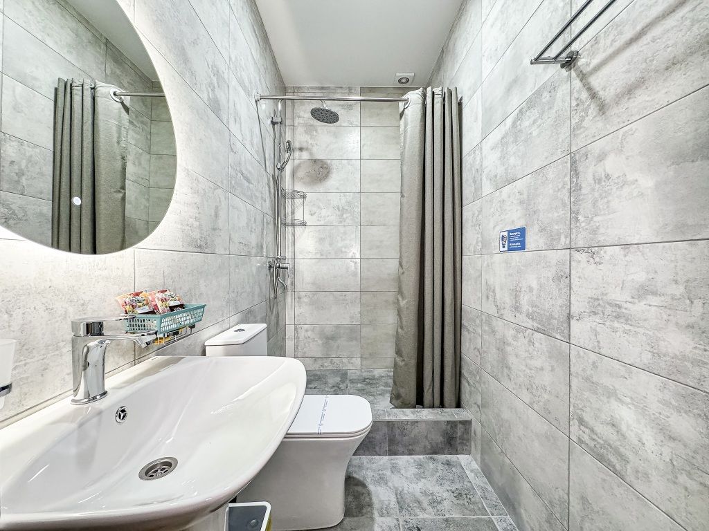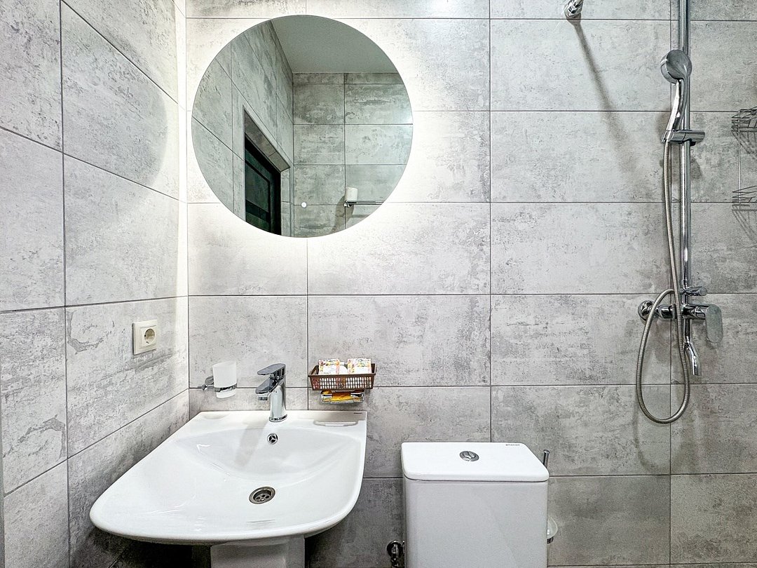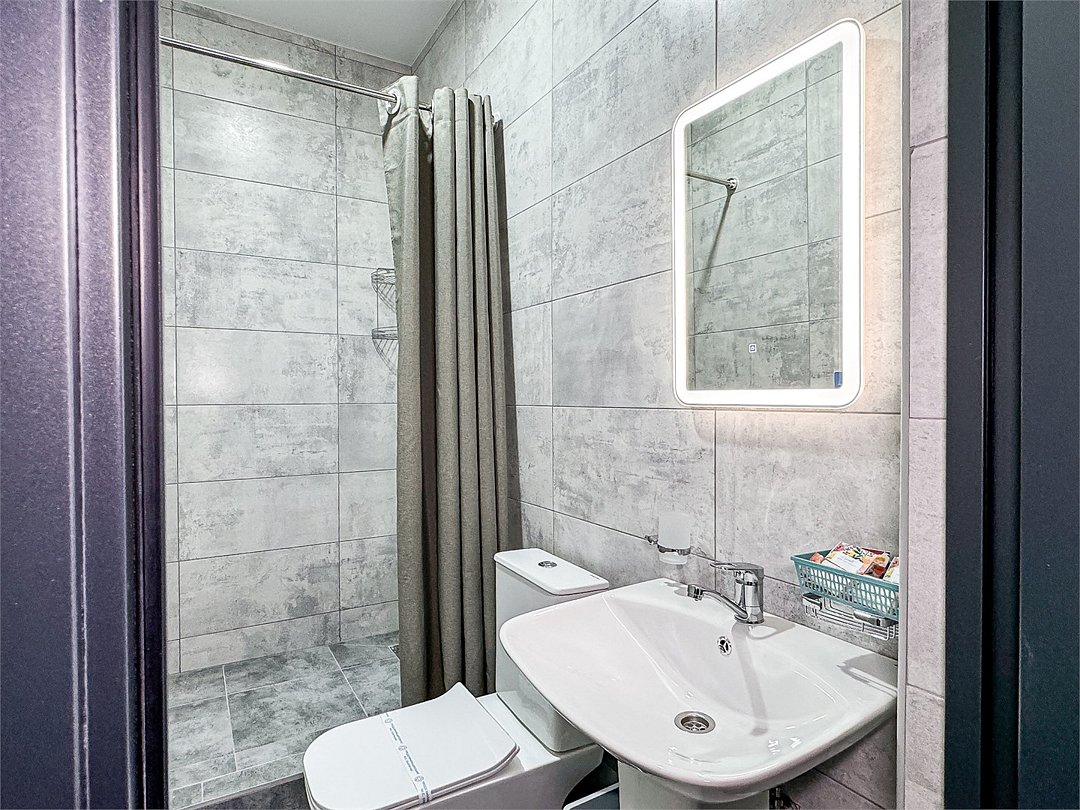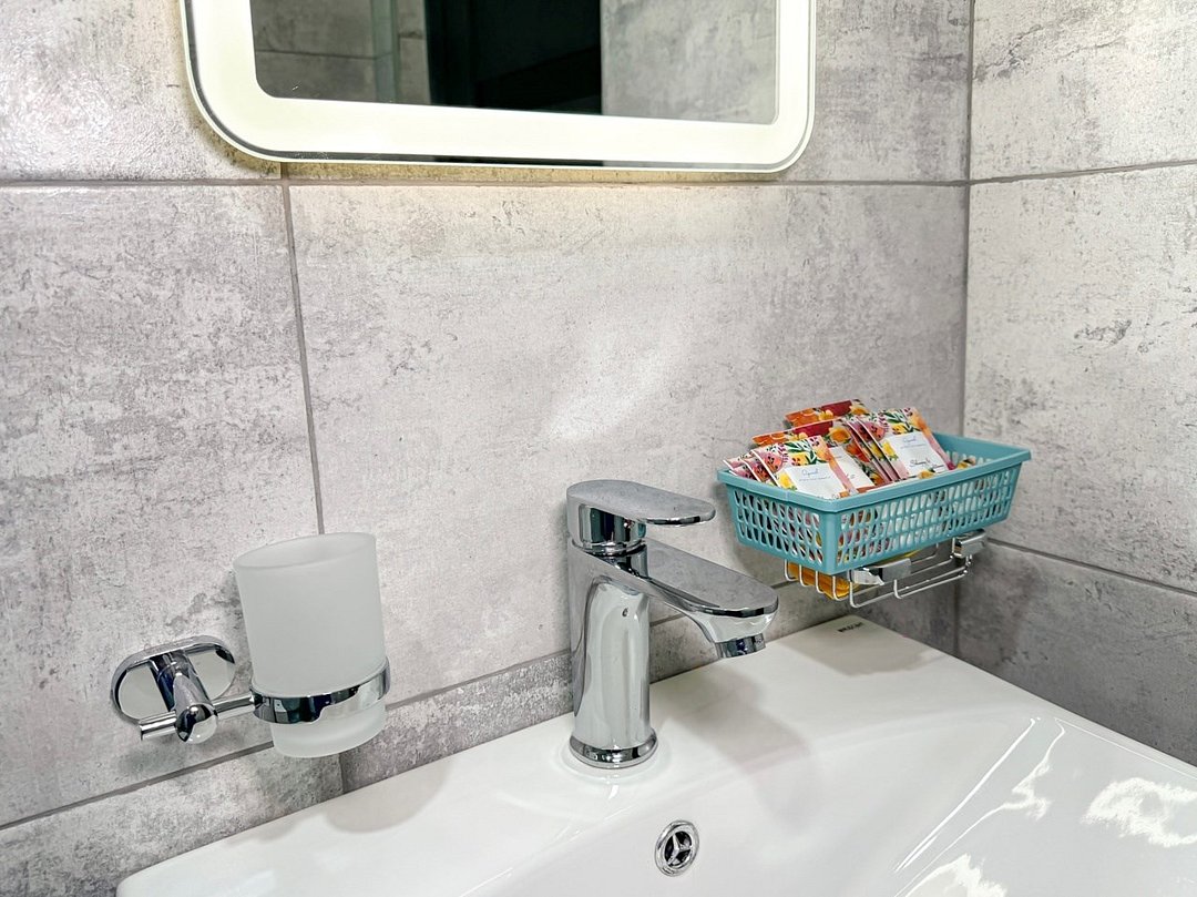 Однокомнатный номер, где можно разместить до 3 гостей. В номере двуспальная кровать + односпальная кровать. В номере, как и в остальных наших номерах обязательный набор удобств для комфортного отдыха: кондиционер, свой душ и туалет, телевизор, чайник с чашками и тарелочками, холодильник, шкаф, фен, тапочки. Особенность этого номера - из окна нет вида. Вид из окна либо в холл гостевого дома, либо на стену соседнего здания Таких номеров у нас 3. Построены июнь 2024. Все номера этой категории на 1 этажеУслуги и удобства