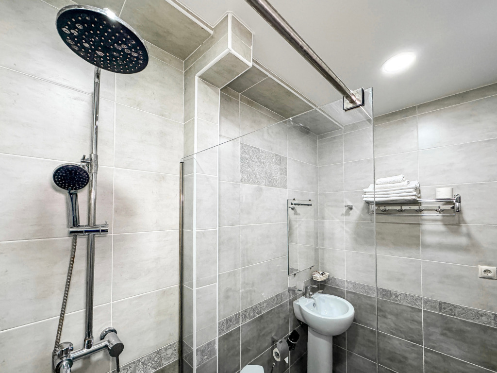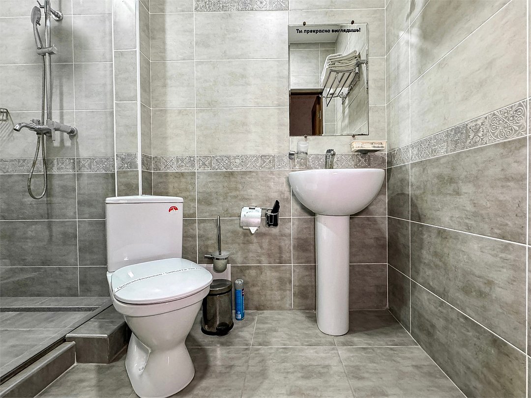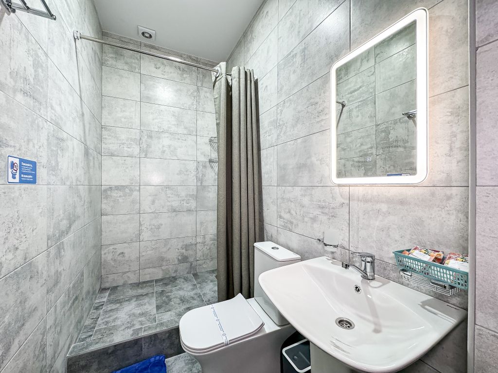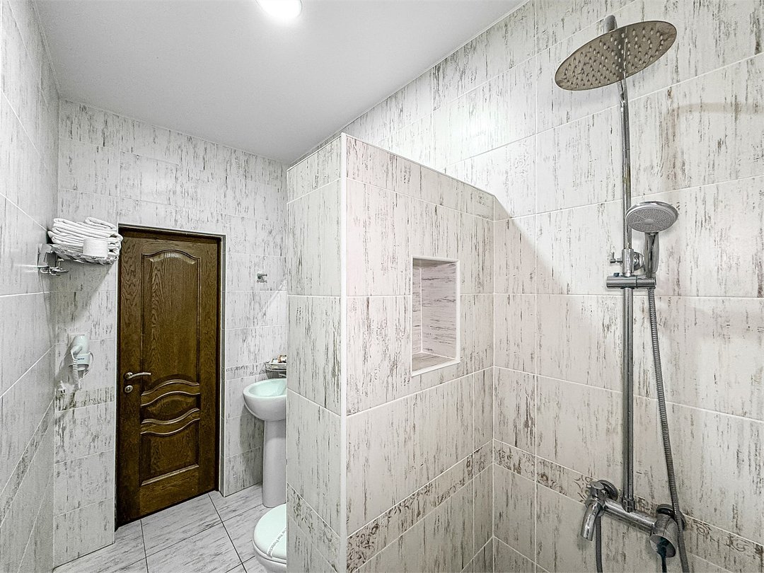 Маленький по площади однокомнатный номер со своим душем и туалетом для одного гостя.