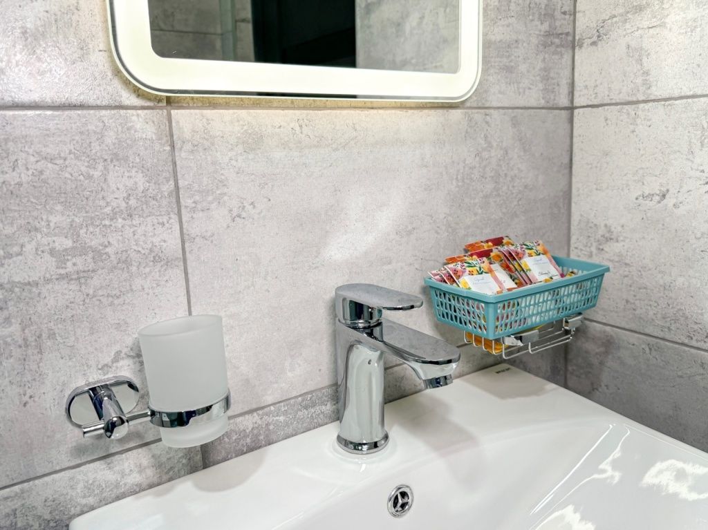 Маленький по площади номер со своим душем и туалетом. Кондиционер, телевизор, холодильник, небольшой шкаф, чайник с чашками и тарелочками, фен, тапочки, банные полотенца, необходимые косметические средства (мыло, гель для душа, шампунь, ватные палочки, диски). Спальные места в номере - две односпальные кровати, которые совместить нельзя. Недорогой вариант для 1 взрослого и 1 ребенка, например. Таких номеров всего 2, находятся на 2 этаже №38 чуть попросторнее номера №40 Номера абсолютно новые, построены май 2024. Ждем Вас в гостиУслуги и удобства