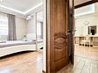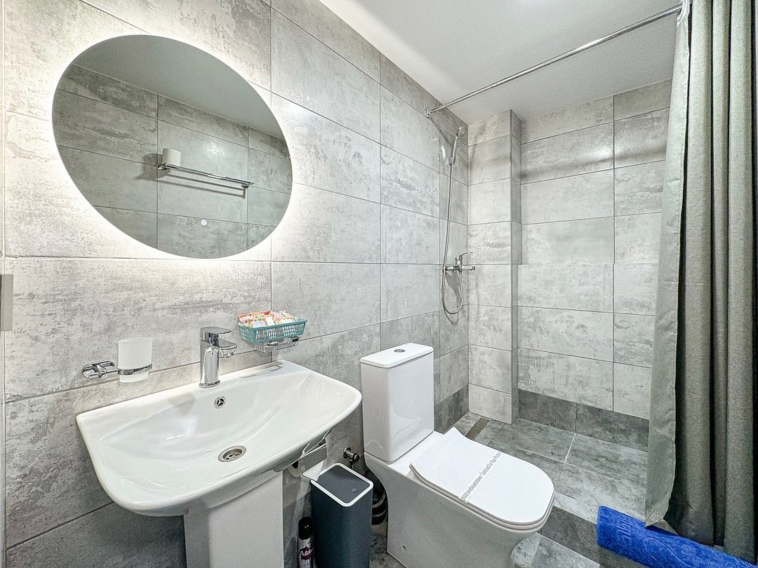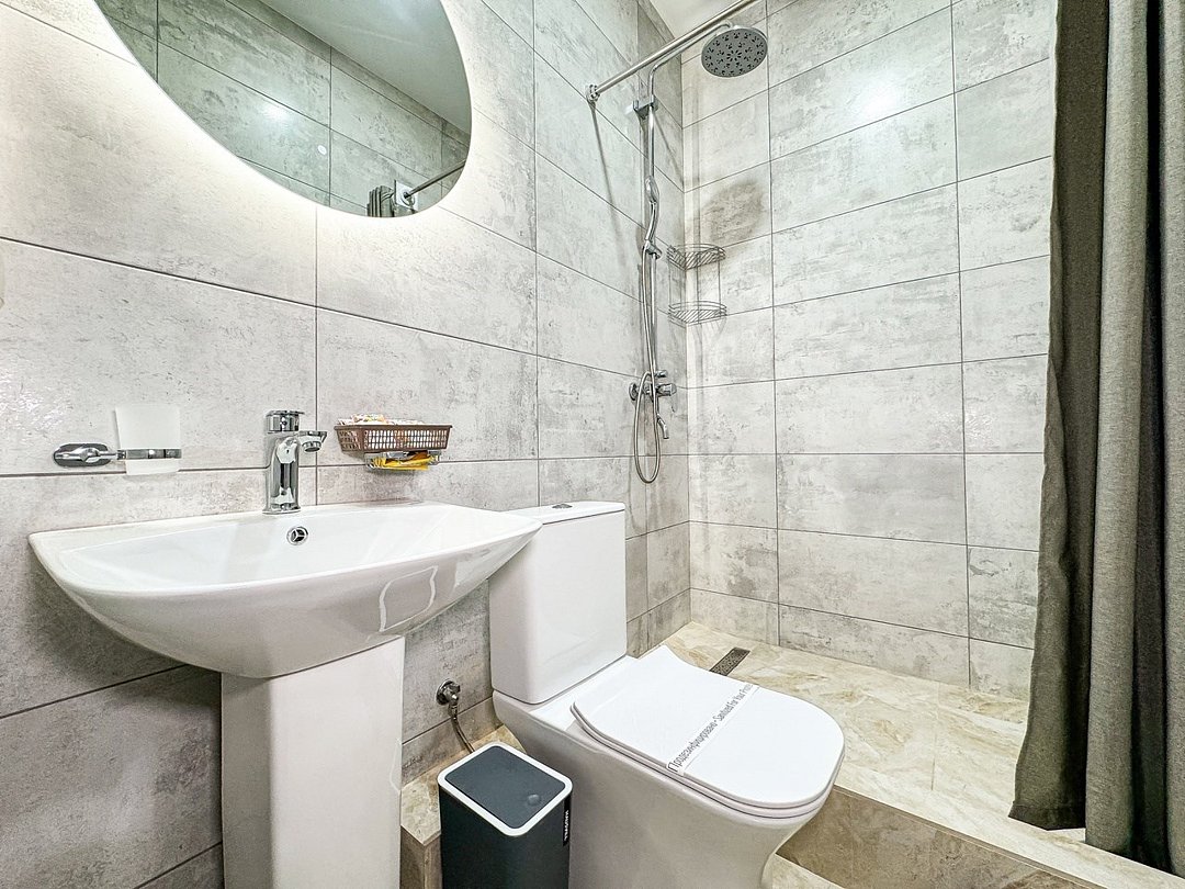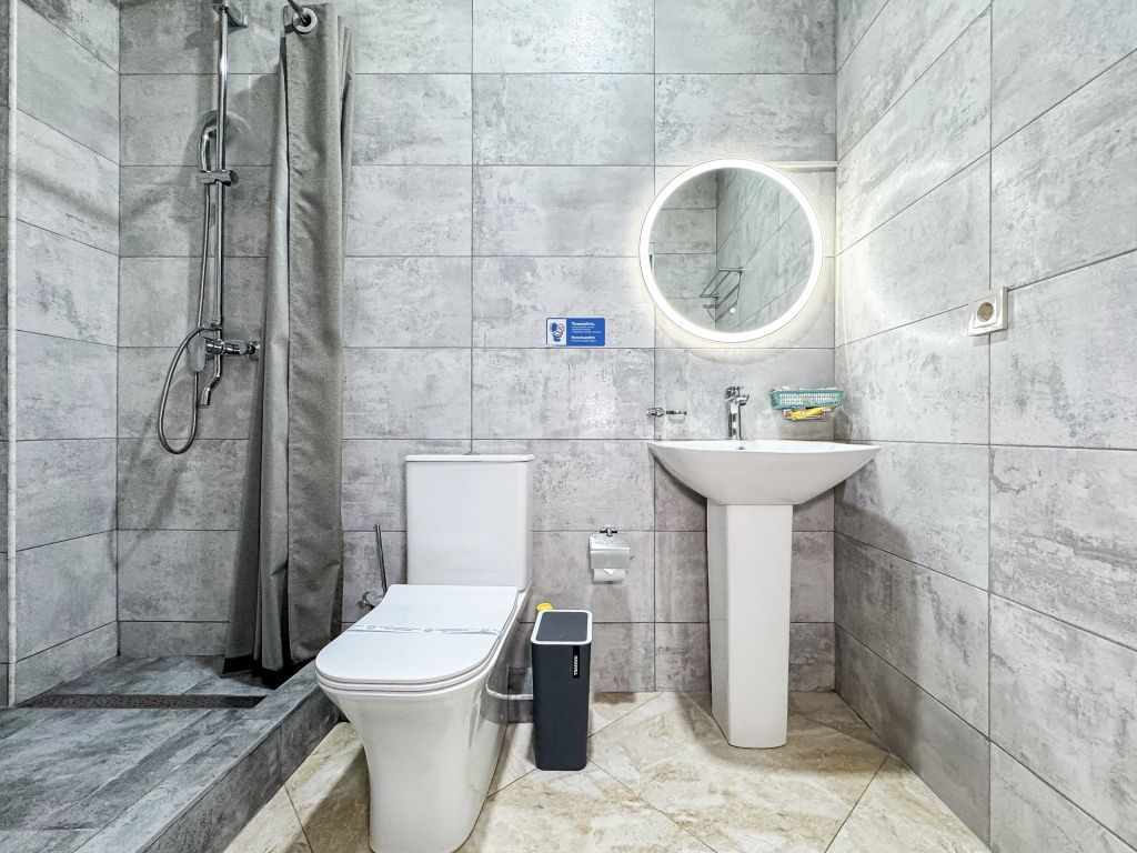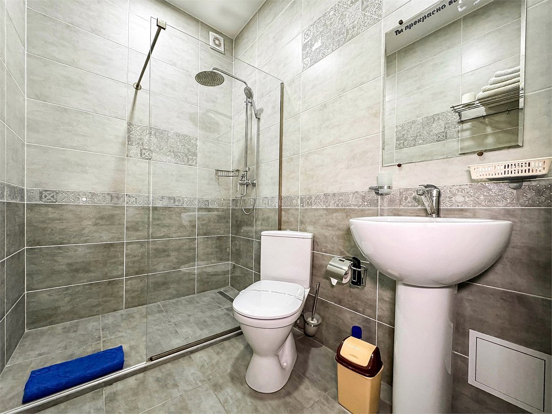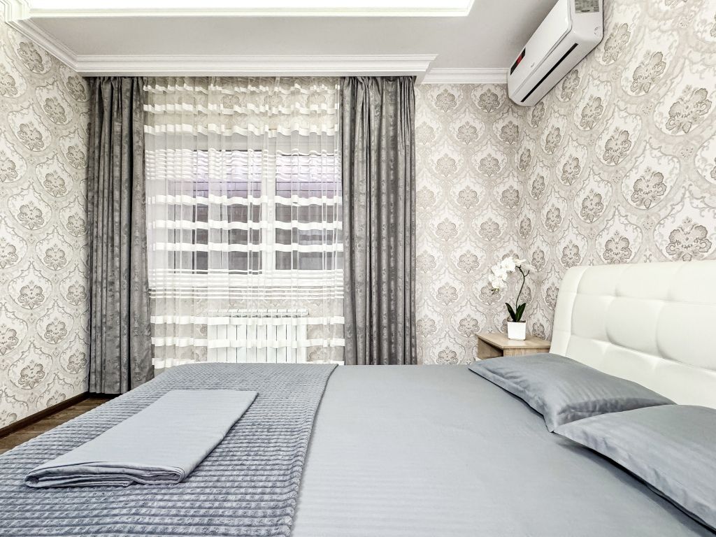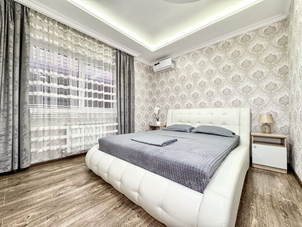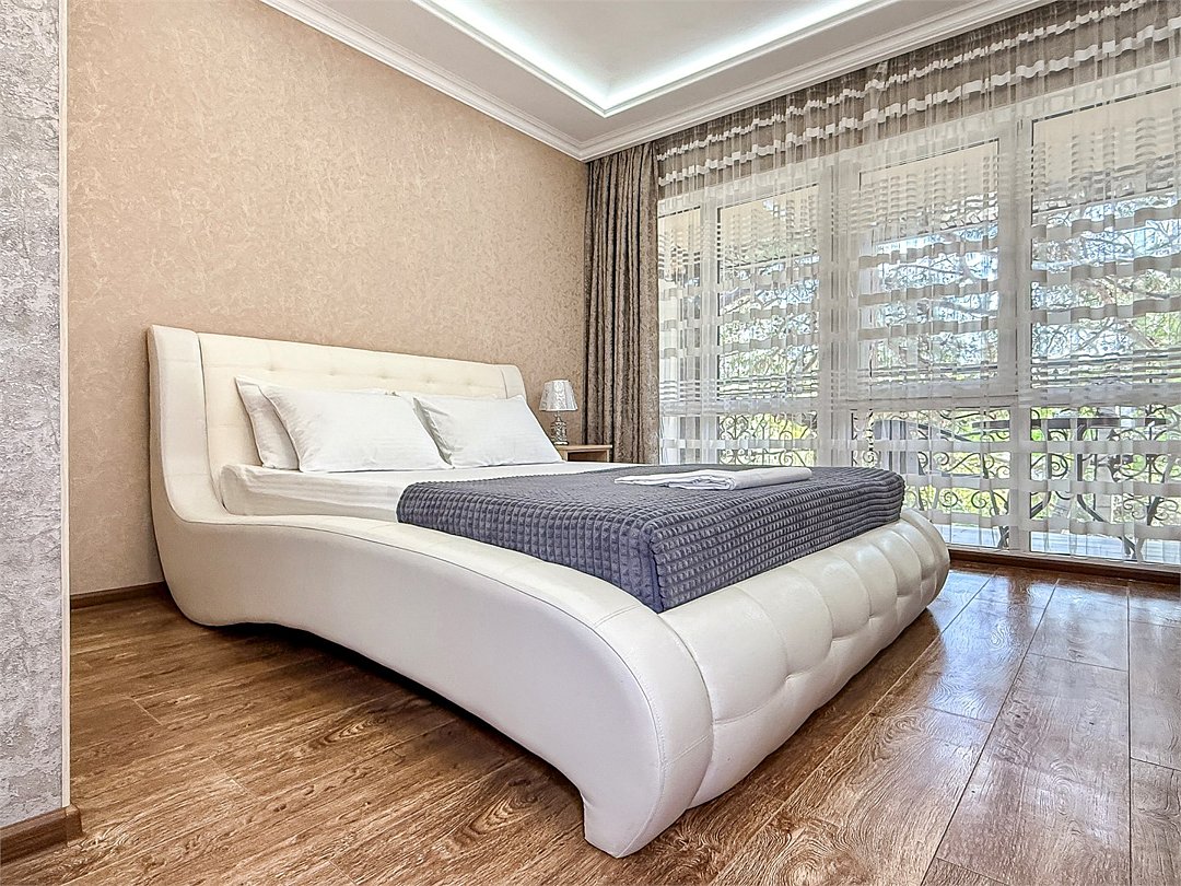 Wi-Fi, холодильник, кондиционер, светильник, фен, санузел, банные полотенца, тапочки, гигиенические средства, балкон, балкон с красивым видом, две двуспальные кровати, стулья, шкаф для одежды, вешалки, письменный стол, зеркало, две комнаты, сейф, чайник, раковина, душ, вид на город, паркет, кухонная посуда, стол, сушилка для белья, телевизор с плоским экраном, шкаф-купе, морозильная камера, вешалки-плечики, мыло, затемняющая штора, зеркало в полный рост, дождевой и ручной душ, можно с питомцамиВ гостиничном номере