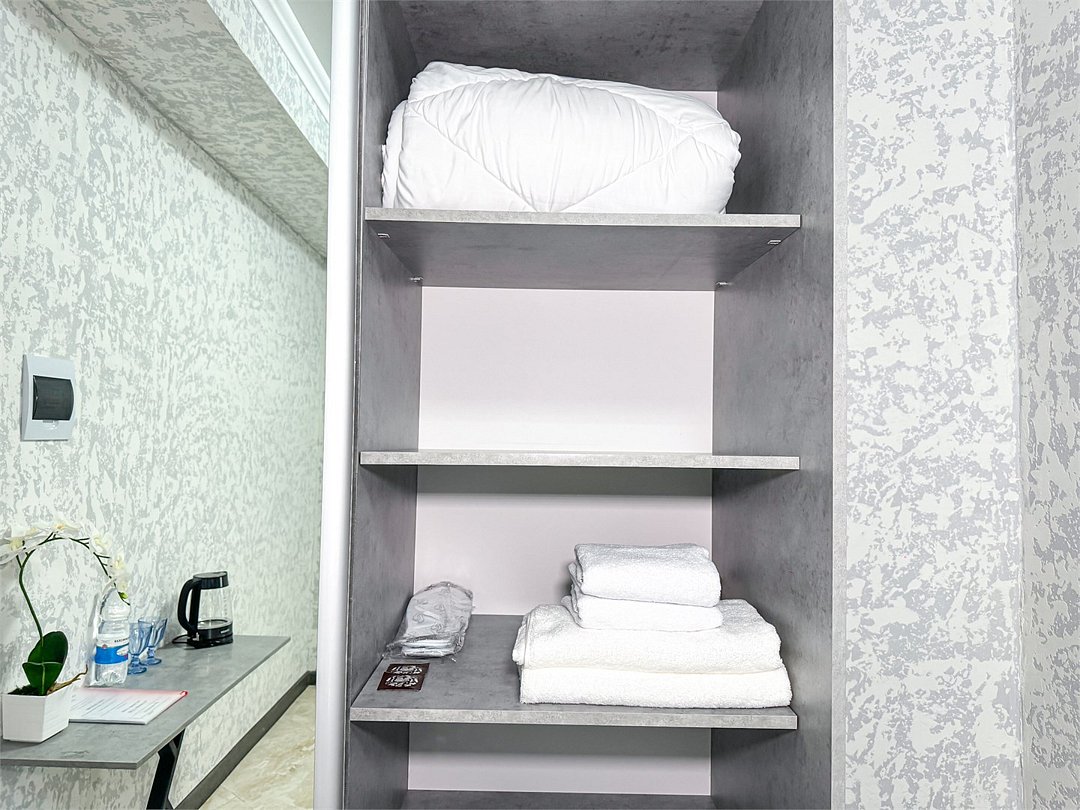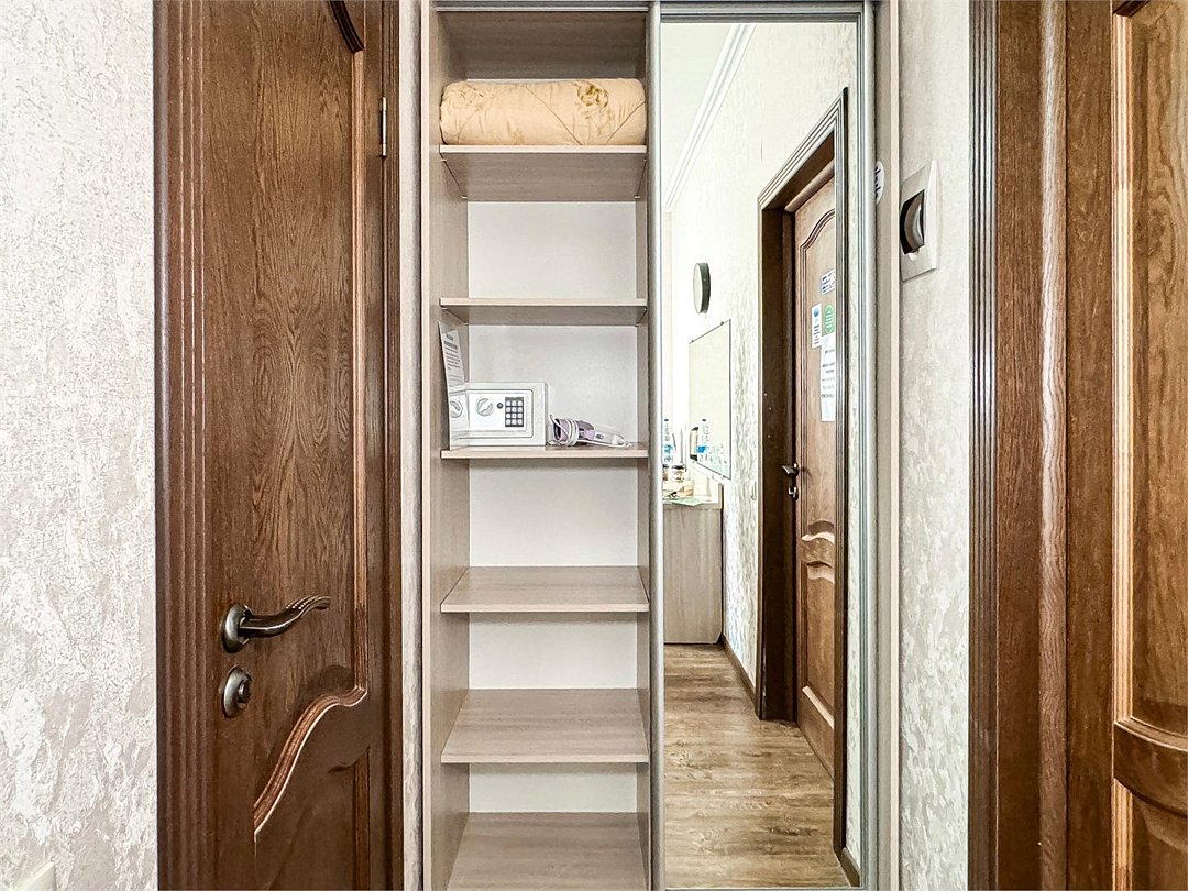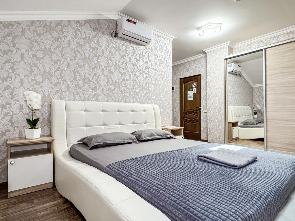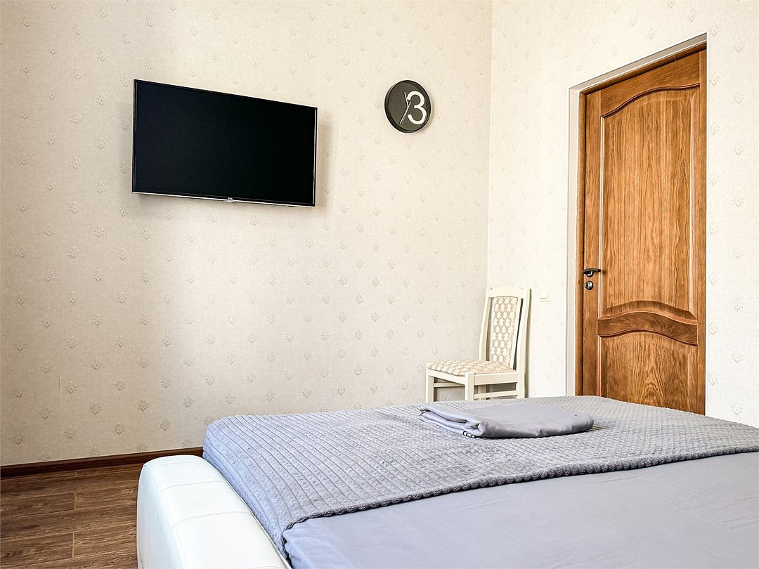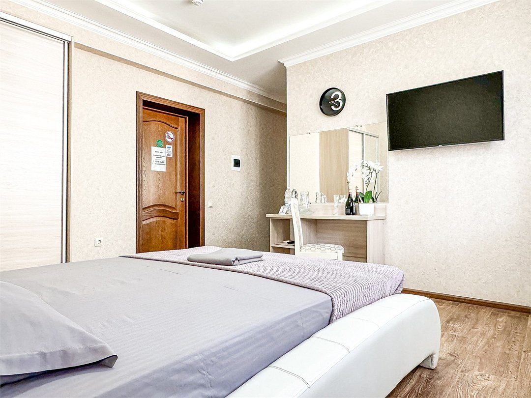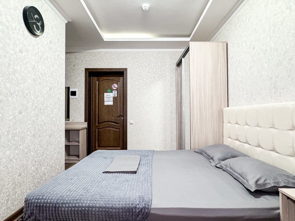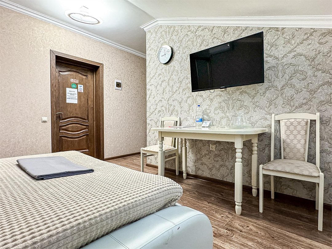 Двухместный стандартный номер - 18-20 кв м Однокомнатный номер для двоих со всеми необходимыми удобствами. Широкая двуспальная кровать, шкаф с зеркалом в полный рост, стол, стул, кондиционер, плазменный большой телевизор, туалетная комната со своим душем и туалетом. В номере так же есть чайник, холодильник, небольшой набор посуды, фен, сейф. Банные полотенца и косметические средства, ложка для обуви. Таких номеров у нас всего 3. Только один из них имеет балкон, который смотрит на соседнее здание. Это #8. Запрашивайте этот номер при бронировании, если Вам нужен принципиально балкон Запросите видеообзор своего номера при бронировании +7-921-55-44-982Услуги и удобства