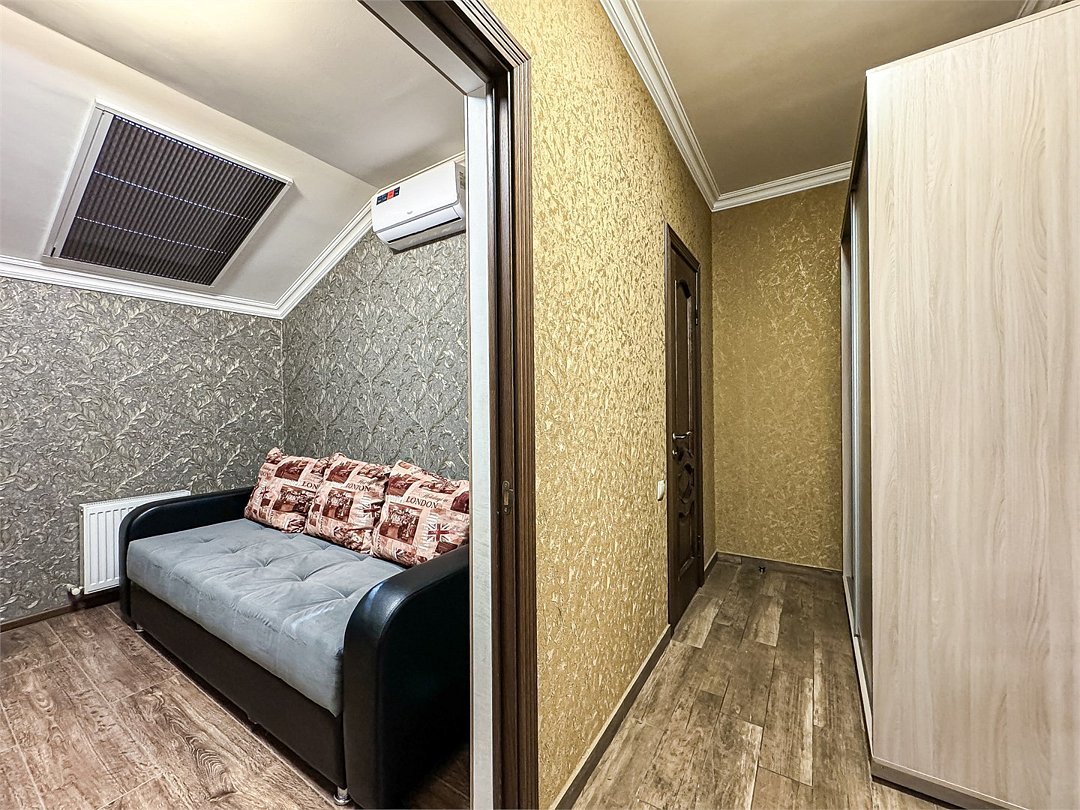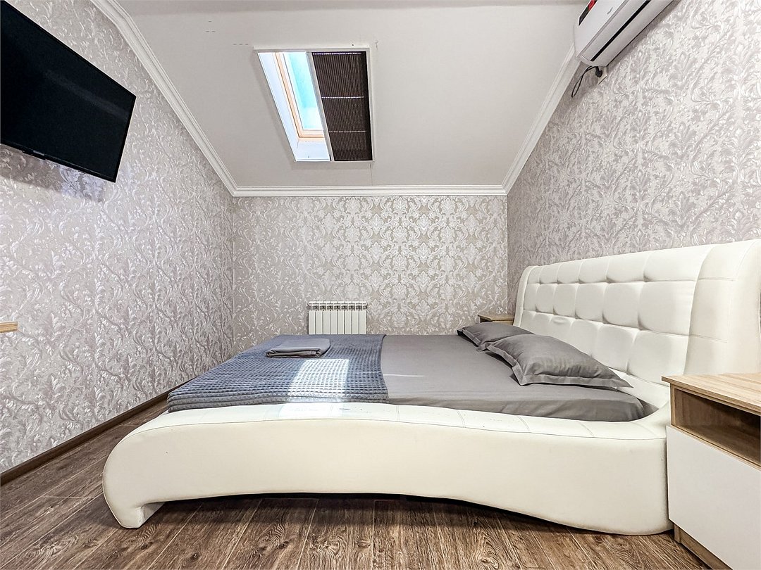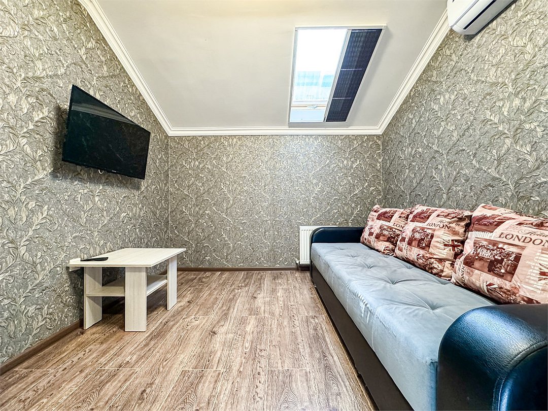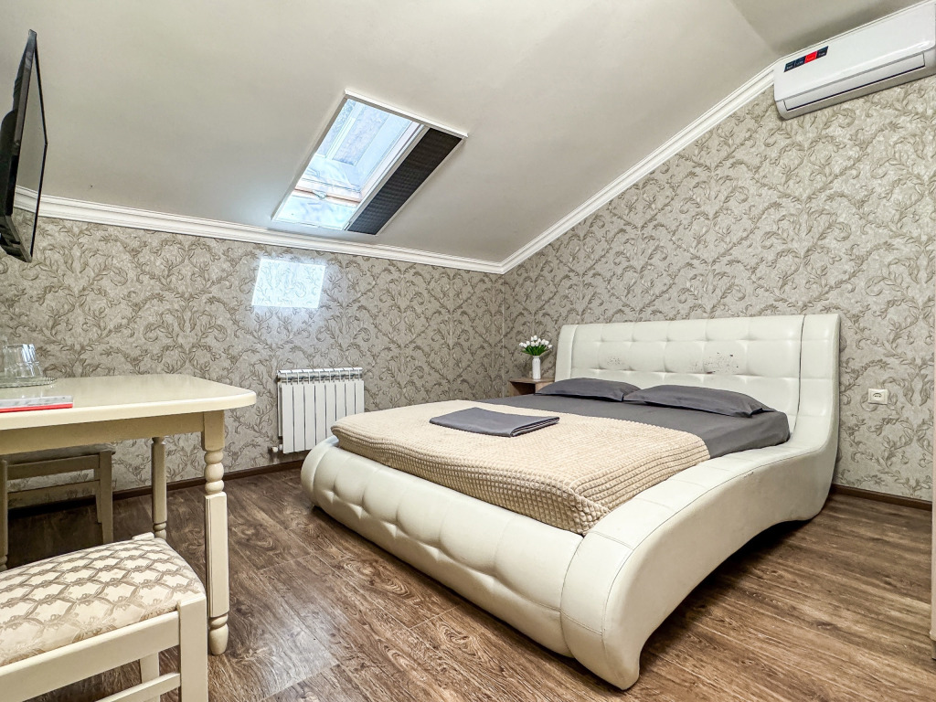 Однокомнатный номер для двоих 18- 20 кв м . Нет номера романтичнее - чем уютная мансарда Мансардные окна затонированы от жары южного солнца, чтобы Ваш номер не нагревался и всегда был комфортным. На окнах так же удобные шторы плиссе, чтобы Вы могли закрыть окно от солнечного света для комфортного сна. Номер со всеми необходимыми удобствами. Широкая двуспальная кровать, шкаф с зеркалом в полный рост, кондиционер, плазменный большой телевизор, туалетная комната со своим душем и туалетом. В номере так же есть чайник, холодильник, небольшой набор посуды, фен, сейф. Банные полотенца и косметические средства, ложка для обуви. При желании можно добавить доп место (или детскую кроватку) для одного ребёнка, это будет самый бюджетный вариант, чтобы разместиться небольшой семьей 2+1 Таких номеров - 3. только один из них не имеет стола в номере - это №16. Дополнительное место можно добавить только в 2 номера из 3х (в №14 и №16), запрашивайте данную услугу при бронировании Запросите видеообзор своего номера при бронировании +7-921-55-44-982Услуги и удобства