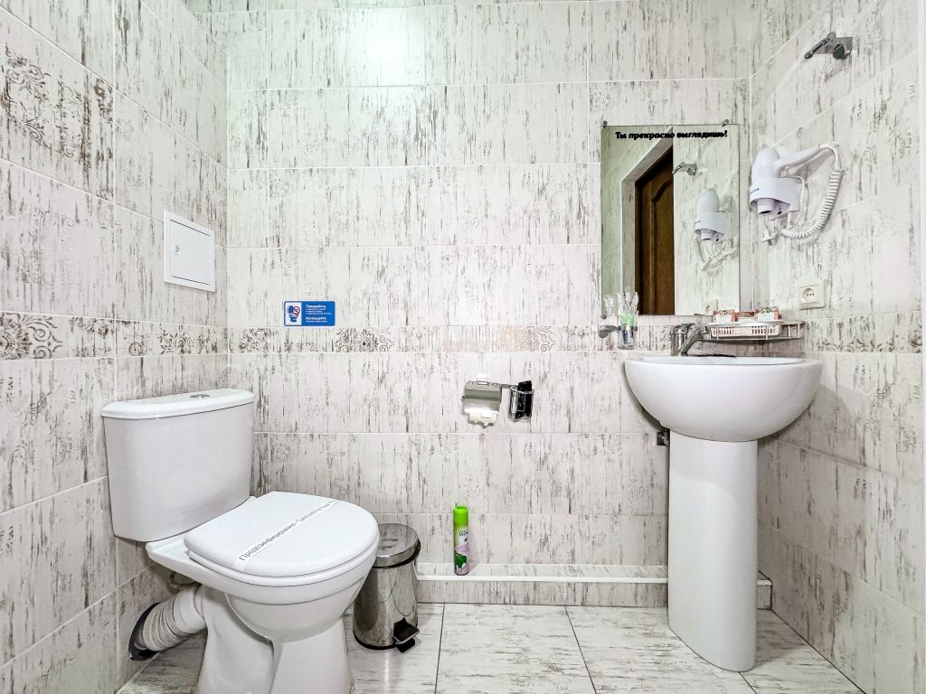 телевизор, Wi-Fi, фен, тапочки, двуспальная кровать, шкаф для одежды, чайник, раковина, душ, вид во двор, туалетные средства, туалет, сплит-система, мини-холодильник, номер для некурящих, пуфик, кресло-кровать, мыло, зеркало в полный рост, можно с питомцамиВ гостиничном номере