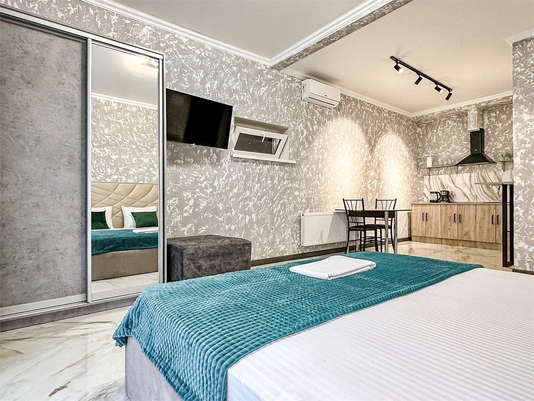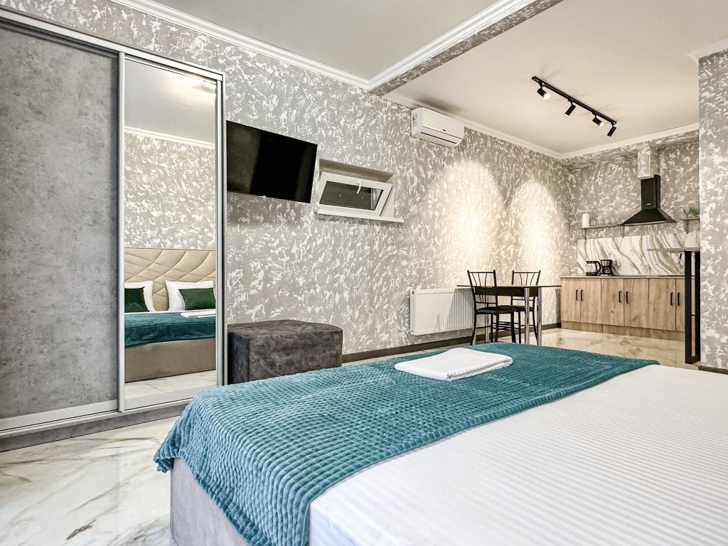 Однокомнатная студия с оборудованной кухней и кроватью King Size