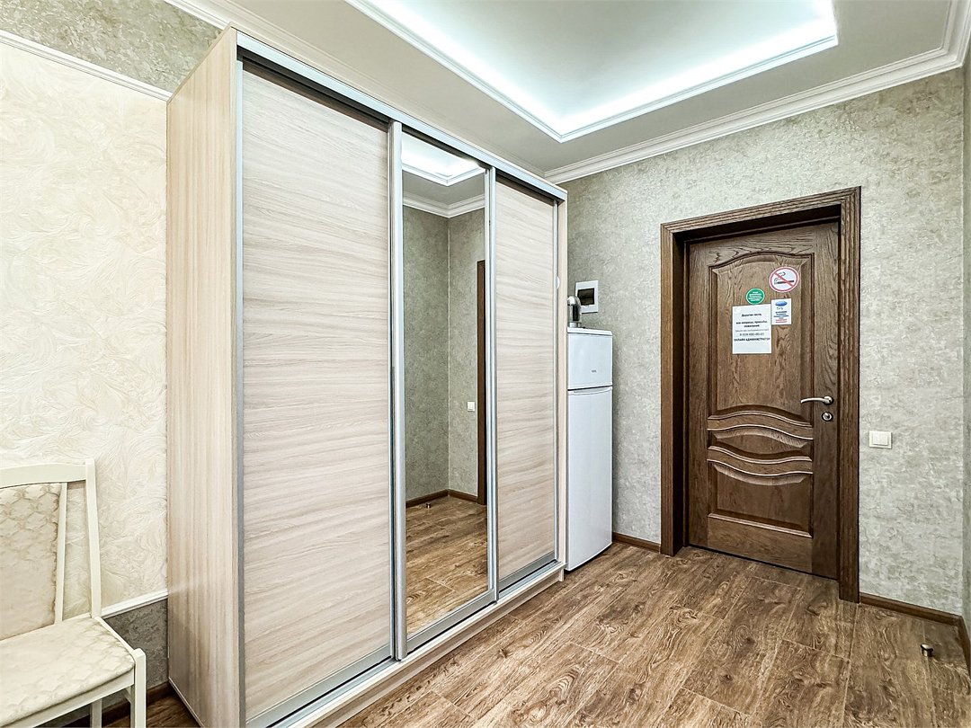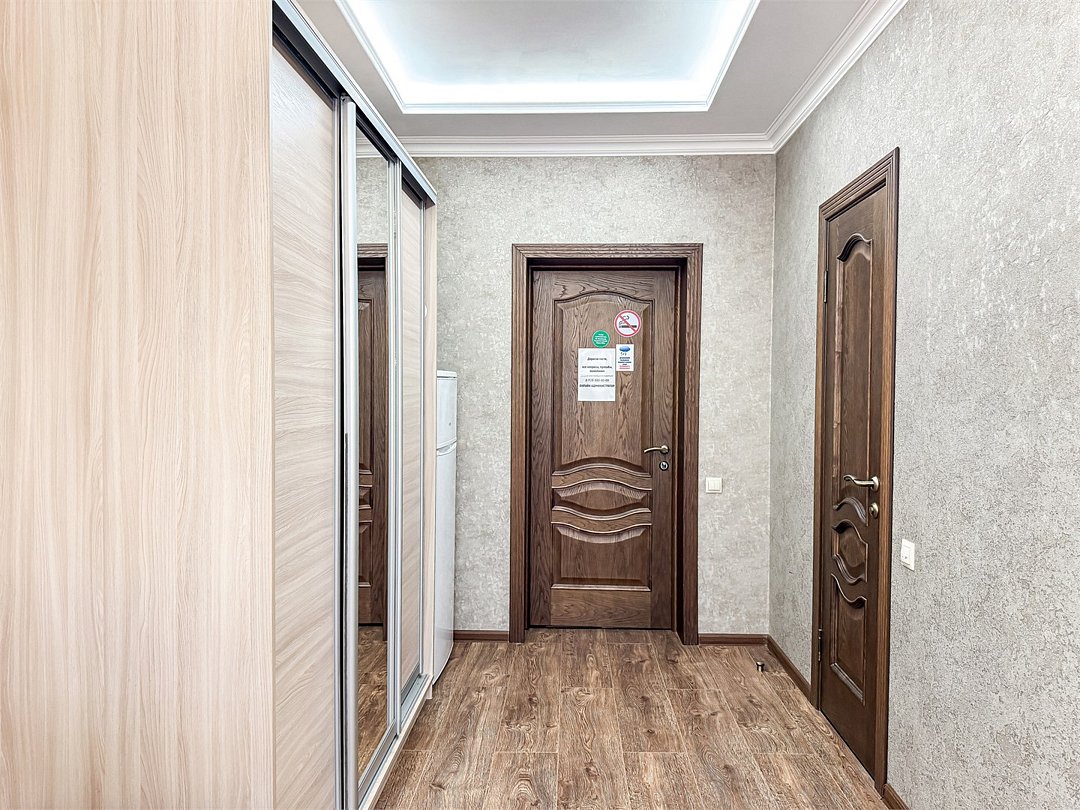 холодильник, кондиционер, санузел, банные полотенца, гигиенические средства, двуспальная кровать, две односпальные кровати, тумбы, стулья, шкаф для одежды, вешалки, письменный стол, сейф, чайник, раковина, душ, две спальни, вид во двор, паркет, сушилка для белья, телевизор с плоским экраном, шкаф-купе, номер для некурящих, можно с питомцамиВ гостиничном номере