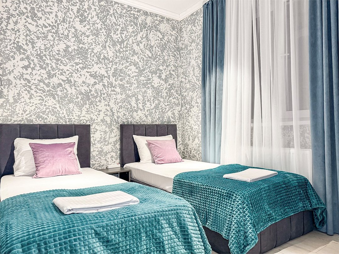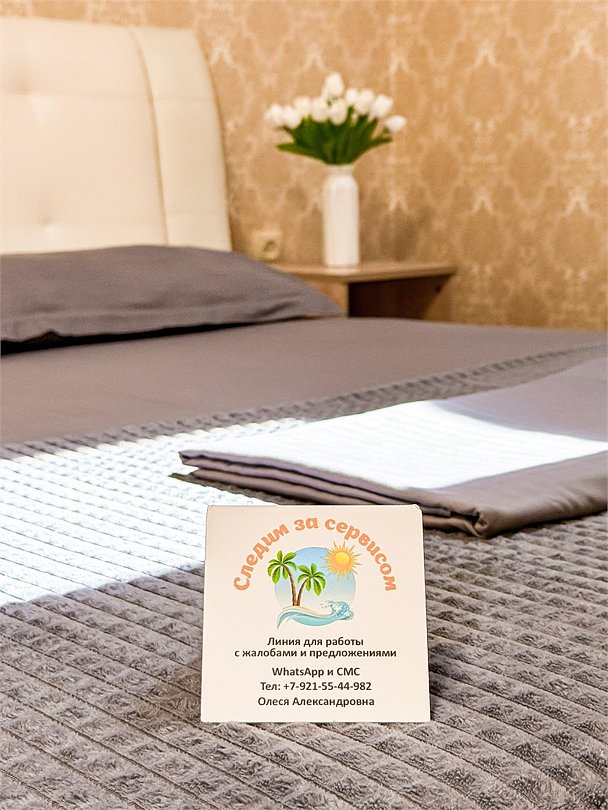 Таких номеров у нас 3. #1, #13, #42 Только #42 со своими особенностями - номер находится на 1 этаже, во второй спальне две односпальные кровати. #1 и #13 на 2 и 3 этаже. В обоих спальнях двуспальная кровать Просторный комфортный номер для размещения семьи из 4 человек + можно добавить доп место. В обеих спальнях номера свой кондиционер и большой плазменный телевизор. На обе спальни свой душ и туалет. Так же шкаф-купе с зеркалом в полный рост, фен, холодильник, чайник, небольшой набор посуды, стол, стулья. Вид в зеленый двор Запросите видеообзор своего номера при бронировании +7-921-55-44-982Услуги и удобства