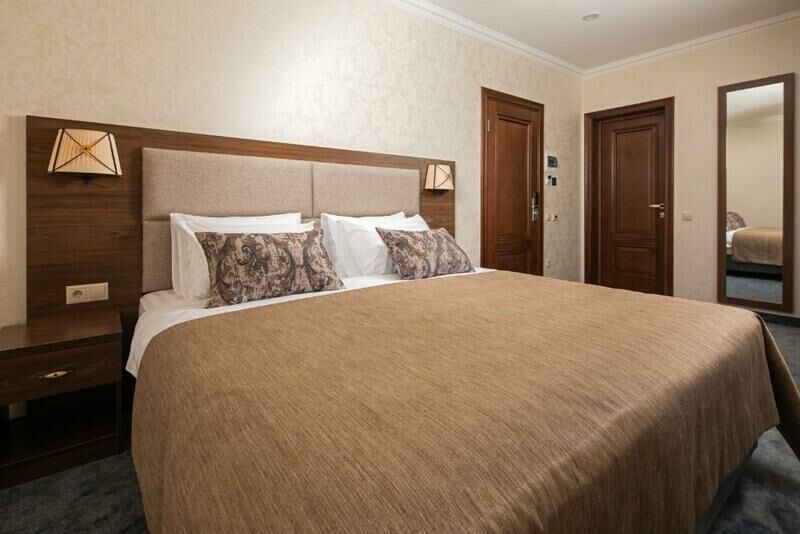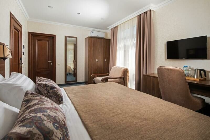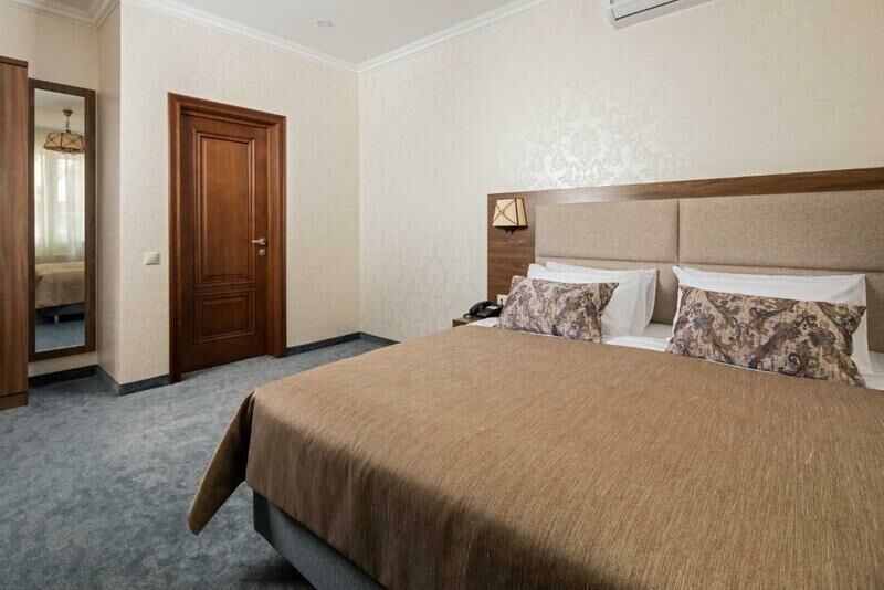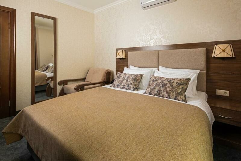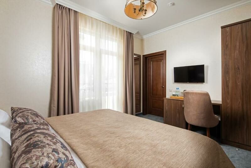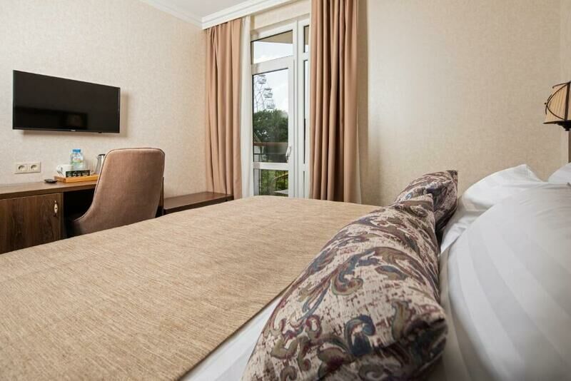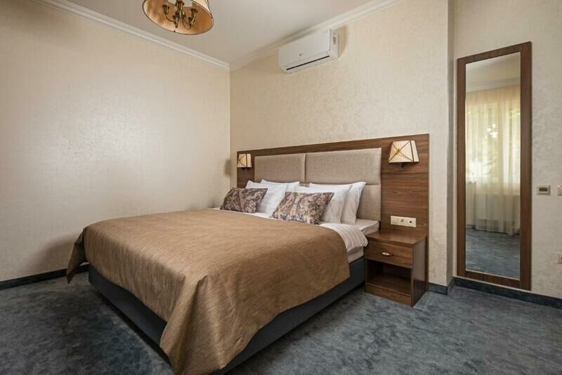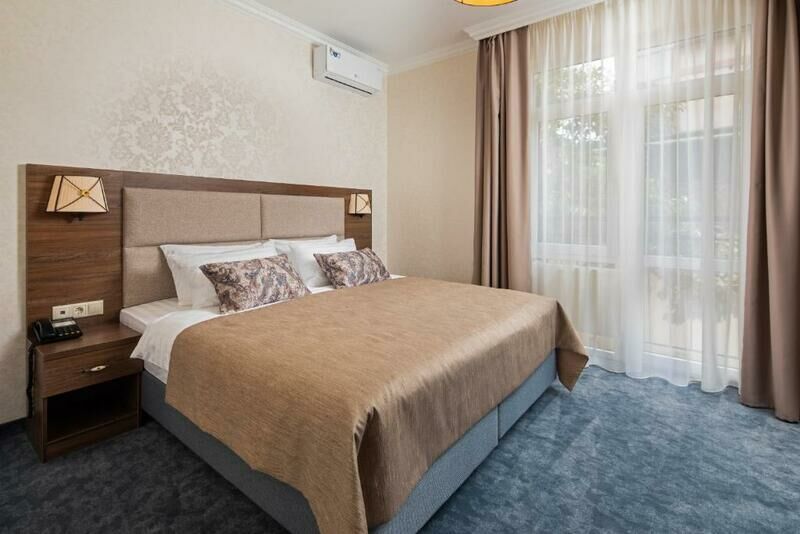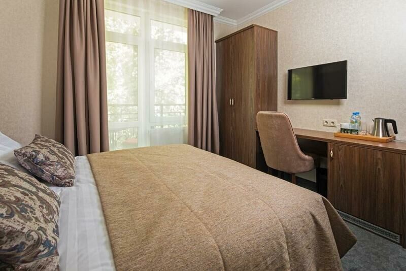 Четырехэтажный корпус отеля, оснащенный лифом, разместился на спокойной уютной улице в тени раскидистых платанов. Гостей ожидают комфортабельные номера, интерьеры которых разработаны по индивидуальному дизайну и выдержаны в стиле прованс. Каждый номер оснащен индивидуальным санузлом, сплит-системой и всей необходимой техникой: в комнатах есть плазменный телевизор, электрочайник, фен, холодильник, в некоторых номерах предусмотрены балконы.