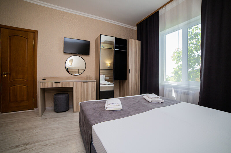 Номера оформлены в классическом стиле и оборудованы кондиционером и телевизором, а в некоторых есть балкон. В номерах имеется собственная ванная комната с душем.