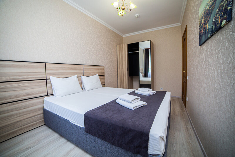 основные места - двуспальная кровать, диван, с/у, душ, ТВ, К, мини-холодильник