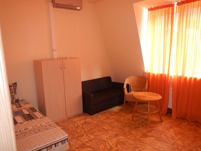 В распоряжении отдыхающих комфортабельные двухместные апартаменты класса люкс (18-25 м2) 2012 года постройки. Современная отделка, повышенная звукоизоляция, новые добротные кровати с ортопедическими матрасами, диванчики, ЖК телевизоры, Wi-Fi, видеонаблюдение, плательный шкаф, журнальный столик, современный санузел.