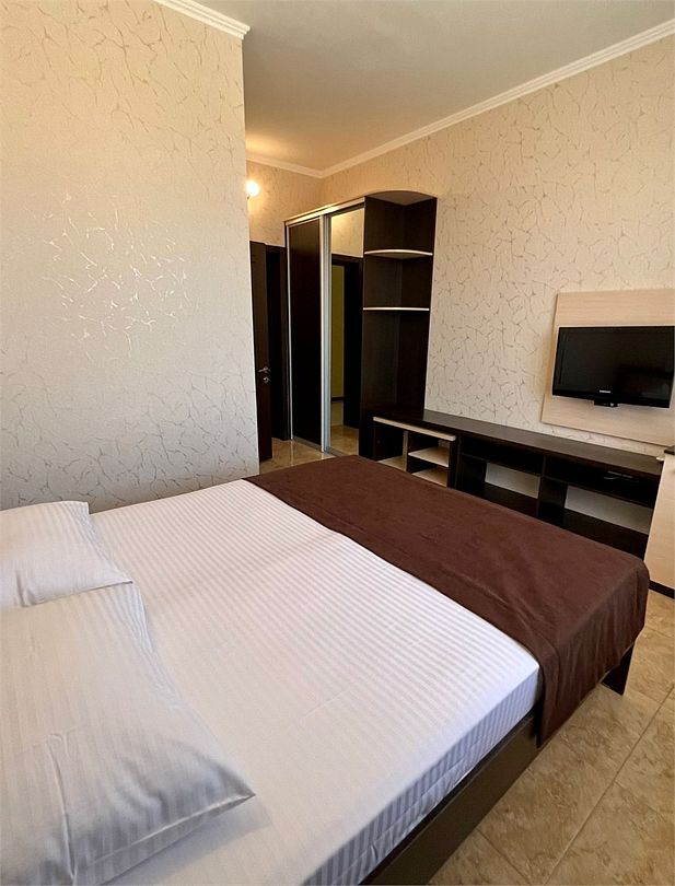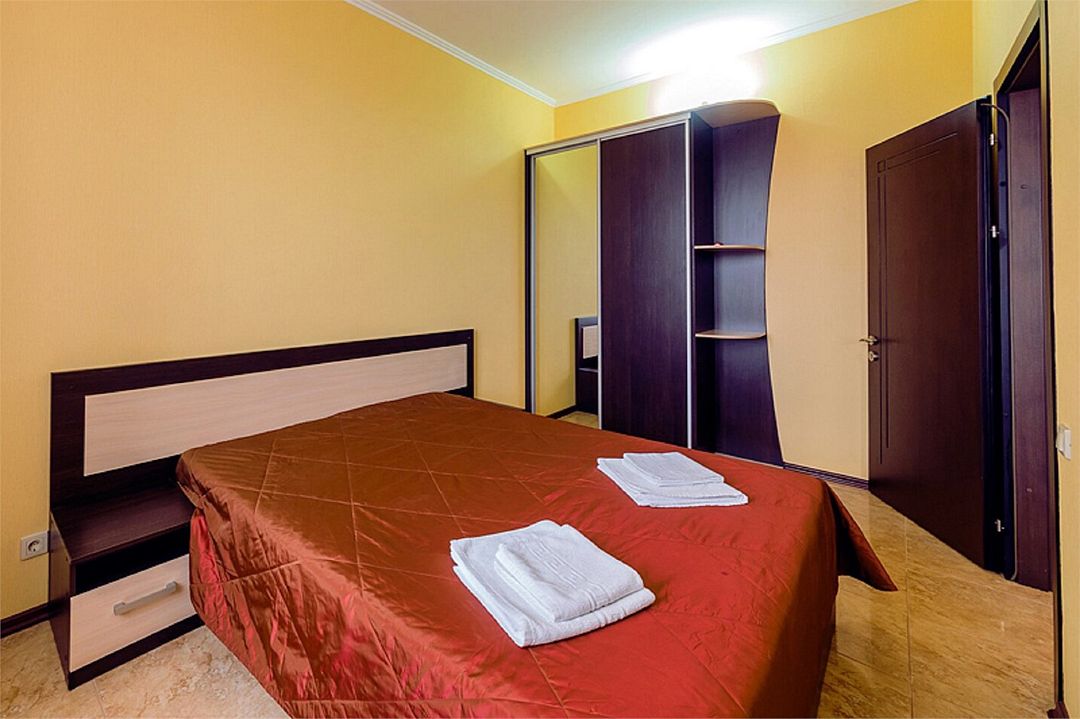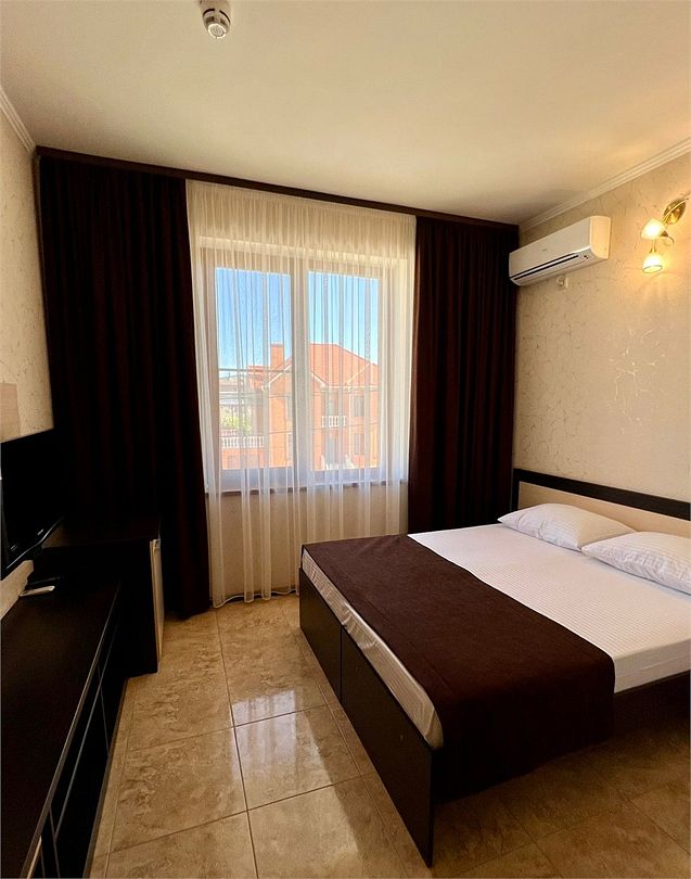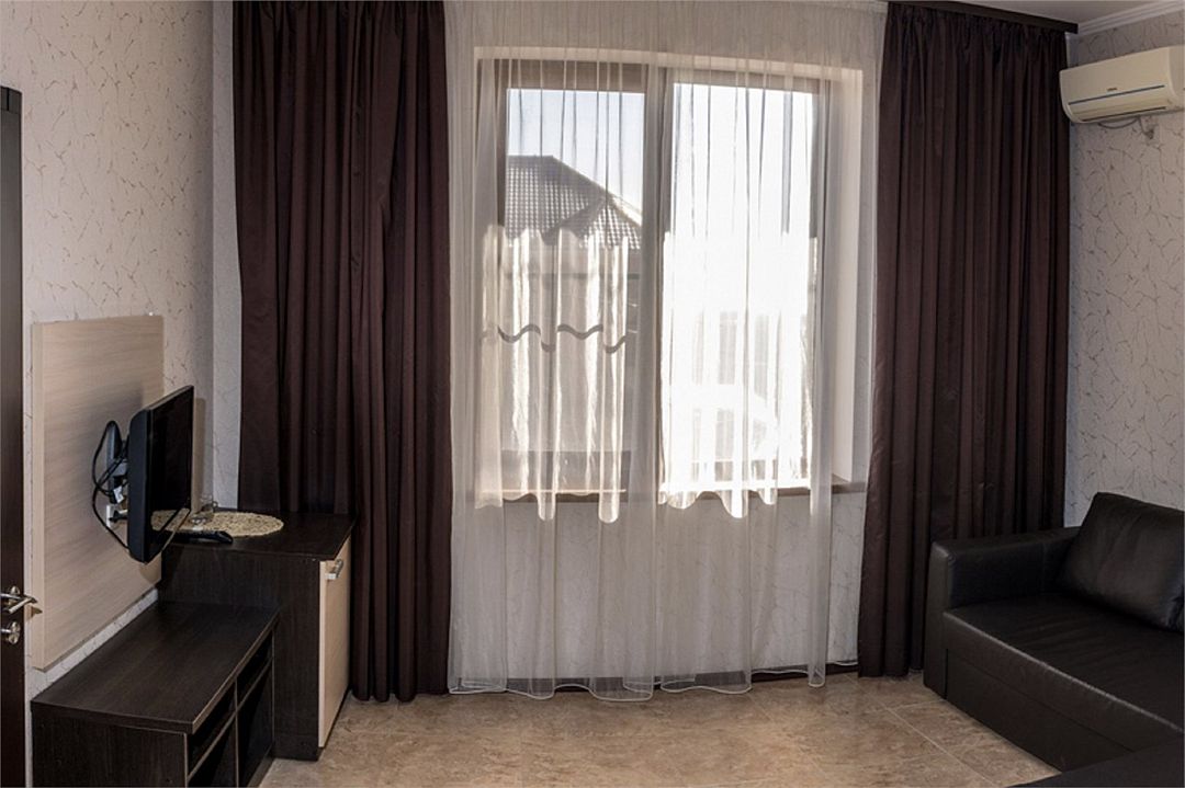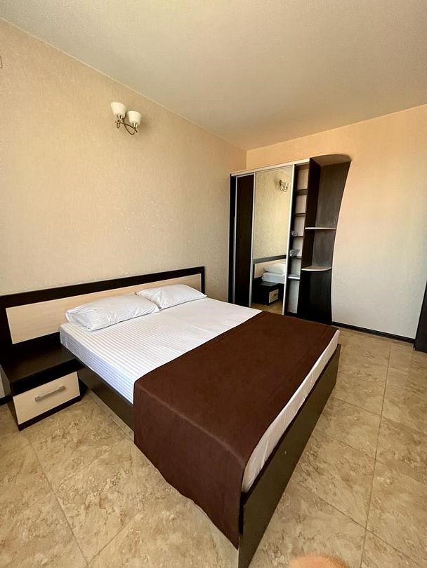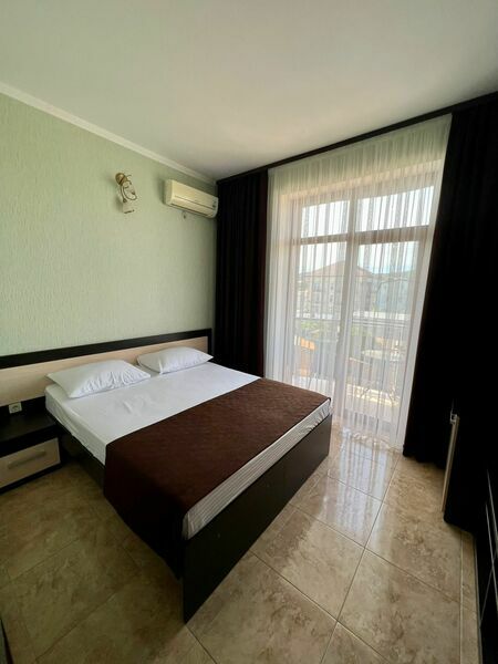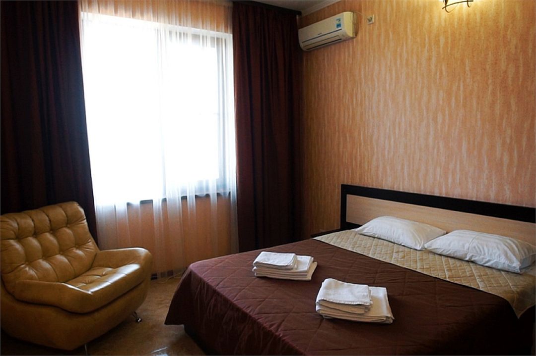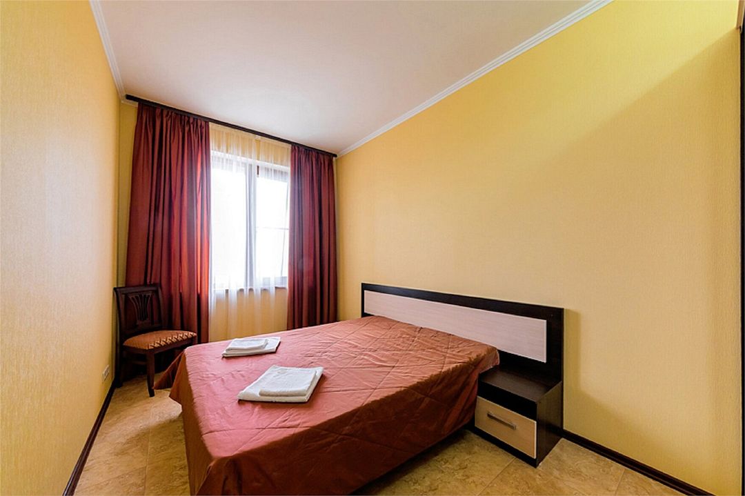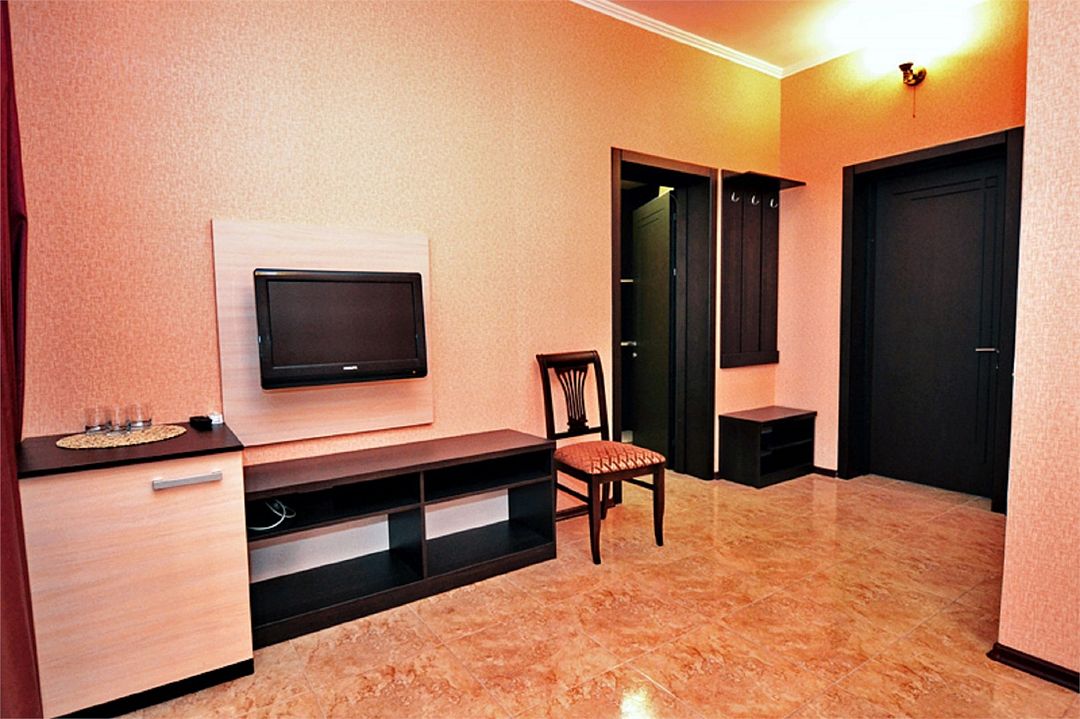 2-х комнатные наиболее просторные и комфортабельные номера с широкими двуспальной кроватью, прикроватными тумбочками, шкаф купе, диваном трансформер , кресло, телевизор, мини бар , кондиционером. Совмещенный сан узел и душевая,( фен, банные и гигиенические принадлежности.)Услуги и удобства