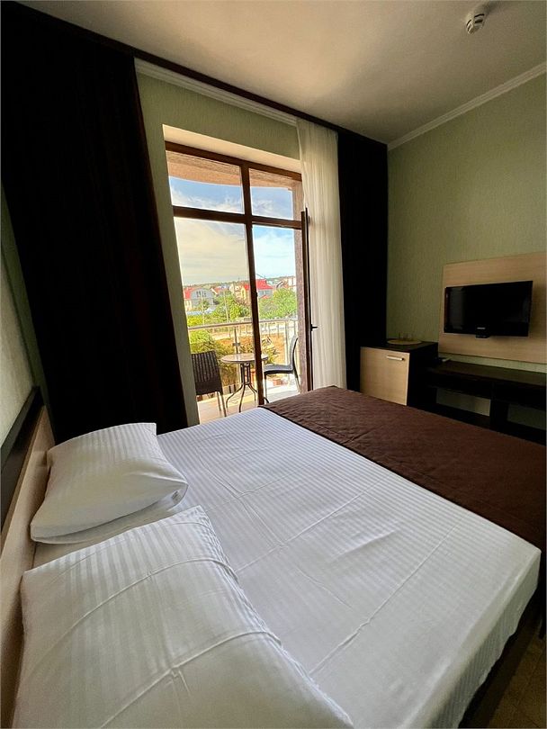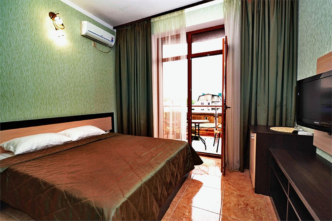 1 комнатный номер с балконом (вид на бассейн) ,с большой кроватью, или с двумя отдельными кроватями ,прикроватные тумбочки, шкаф купе, сан узел и душ совмещен ( фен, банные и гигиенические принадлежности.) Номер оборудован: индивидуальной системой кондиционирования, TV, мини-бар.Услуги и удобства