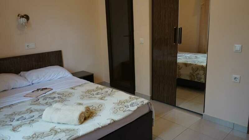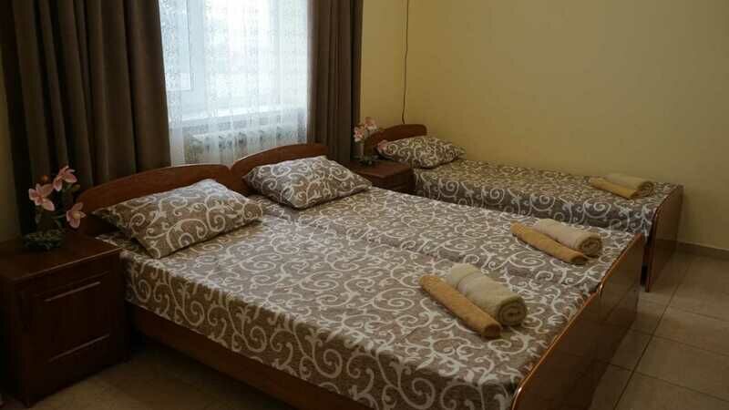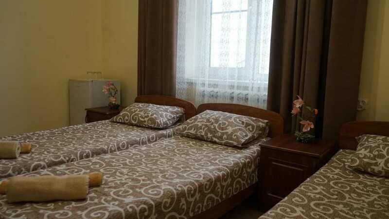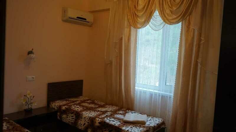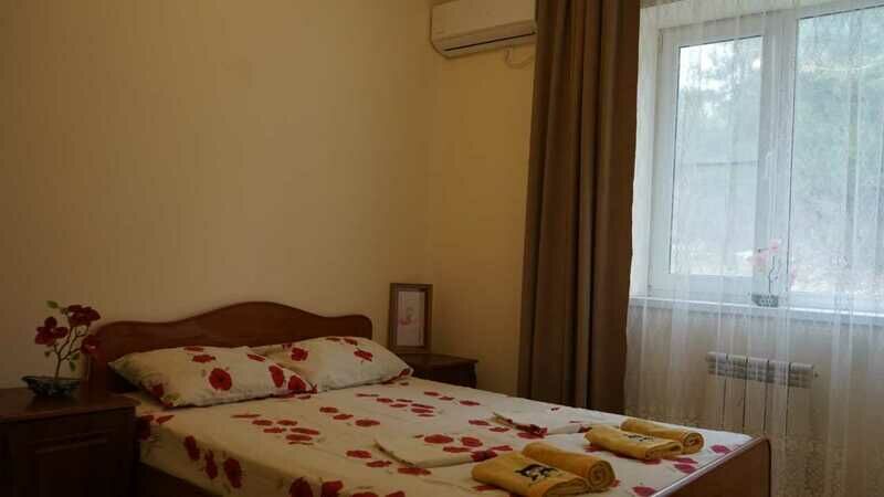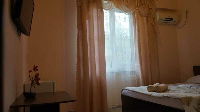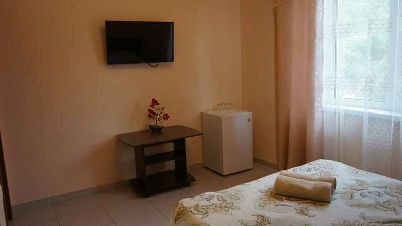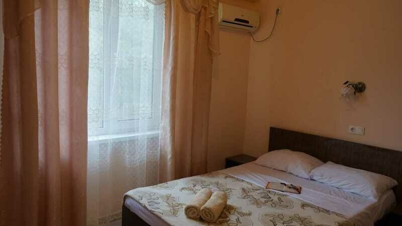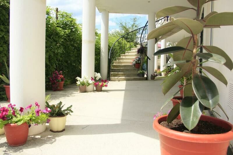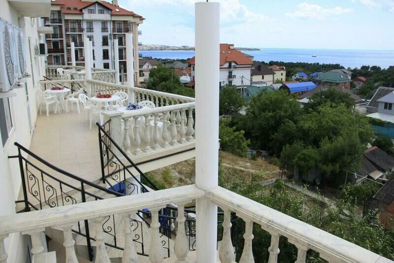 Трехэтажный корпус гостевого дома с белоснежными балюстрадами разместился на закрытой благоустроенной территории, расположенной в 800 метрах от моря. В распоряжении гостей 33 номера разной категории комфорта. В комнатах есть телевизор, мини-холодильник, кондиционер, везде предусмотрен индивидуальный санузел и общий балкон.