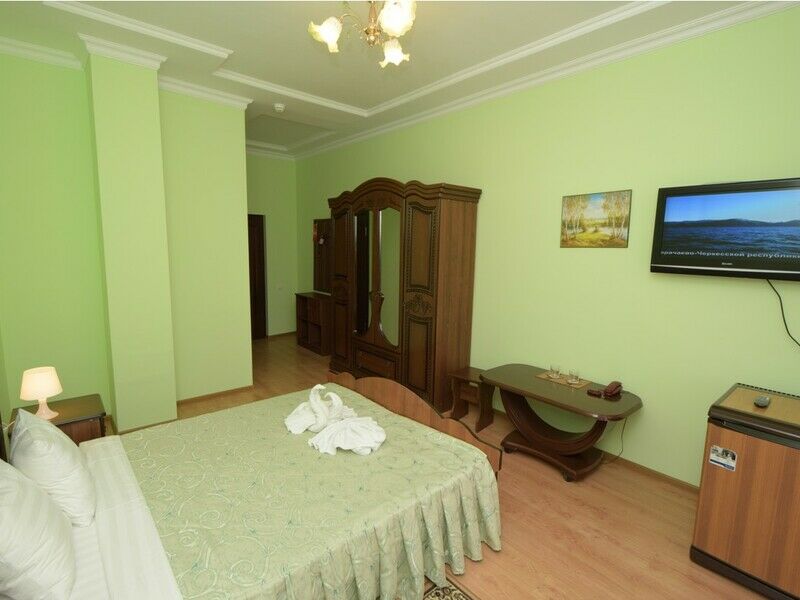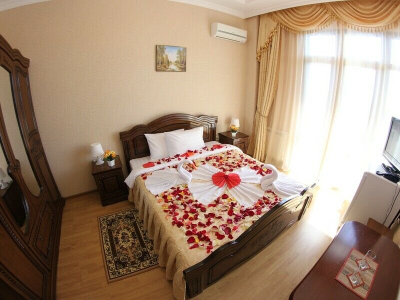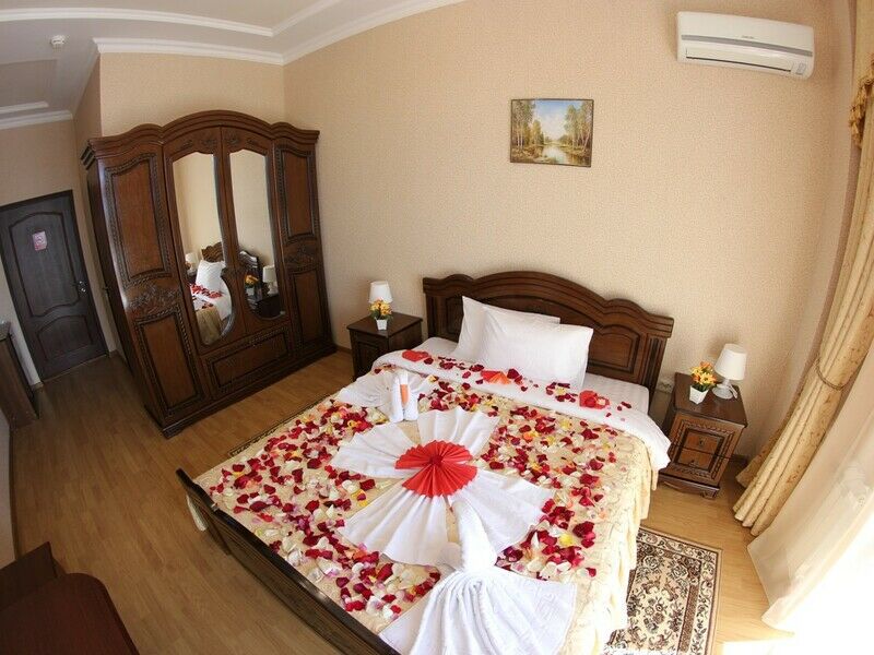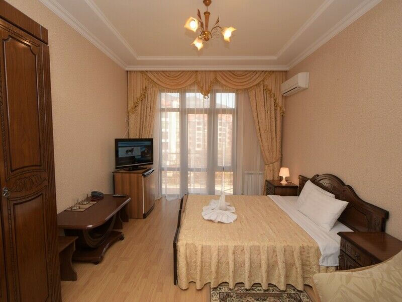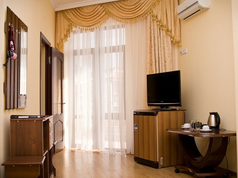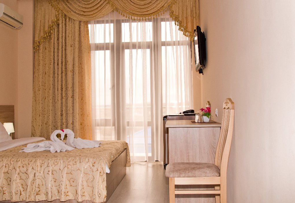 Здание состоит из шести этажей. Оно оборудовано роскошным обзорным лифтом. Одновременно в нем может разместиться 84 человека. Представлены номера Люкс, Джуниор сюит, Стандарт. Они стильно меблированы, оснащены мини-холодильником, телефоном, ванной с душем, туалетными принадлежностями. Предусмотрен бесплатный доступ к беспроводному интернету.
