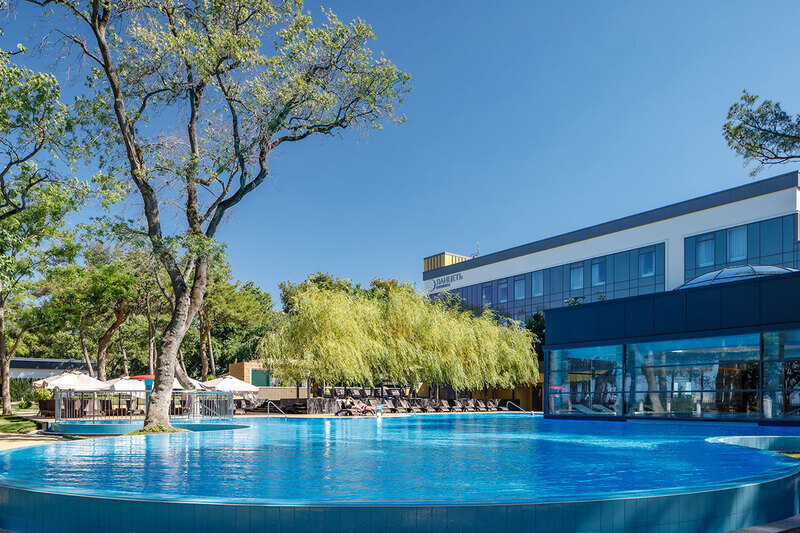 - всесезонный бассейн с морской водой и с термальной зоной (сауна, хаммам) в корпусе №1 (ул. Мира, 23);