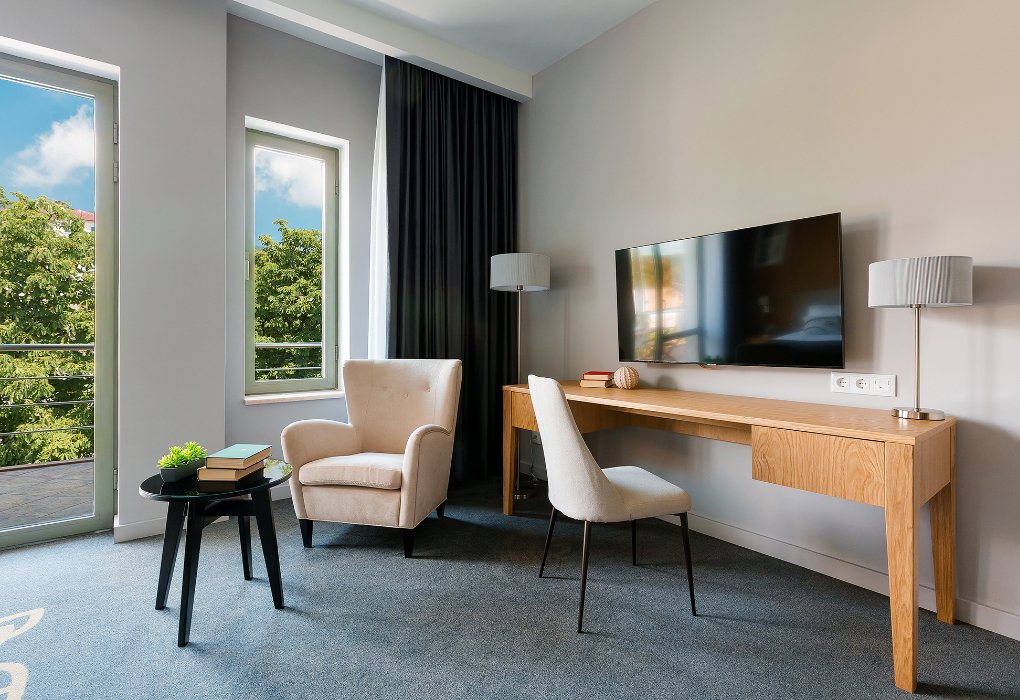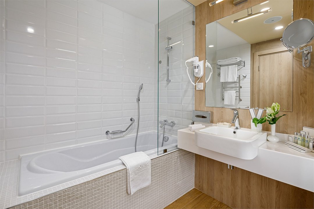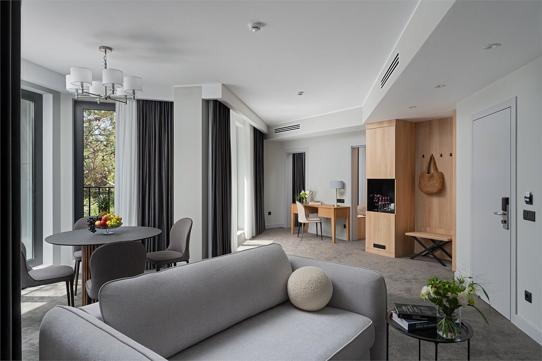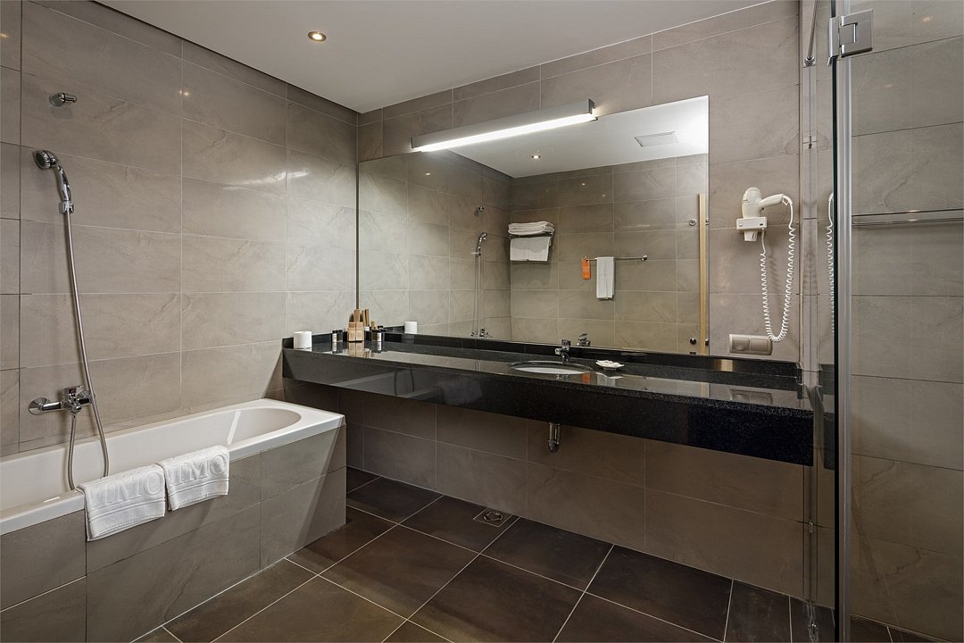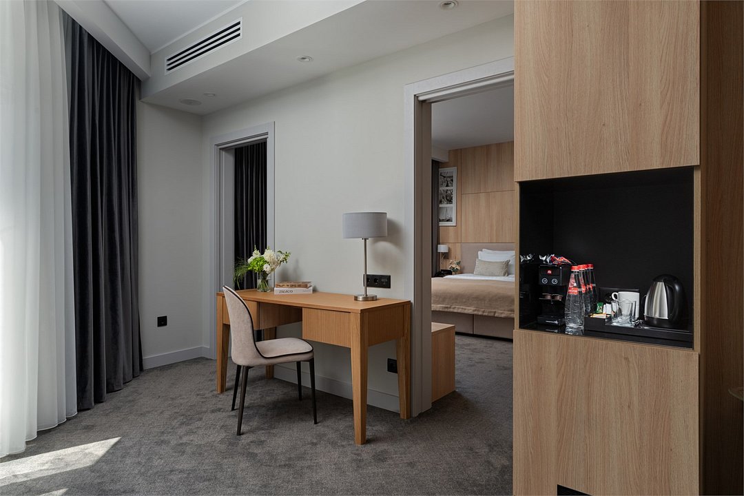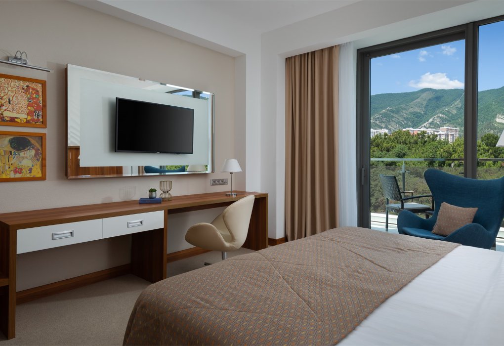 Однокомнатный номер с видом во двор или на горы в новом корпусе класса люкс. Выполнен в теплых светлых тонах. В распоряжении гостей удобное рабочее место и мягкая мебель. Номер порадует трансформируемой кроватью, которая гарантирует крепкий, восстанавливающий силы сон и полноценный отдых. Ванная комната оснащена душем и ванной. Идеально подходит для отдыха и деловых поездок. *Дополнительное место предоставляется за отдельную плату.Услуги и удобства