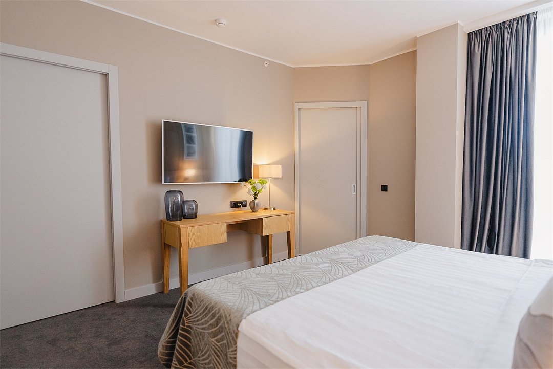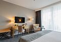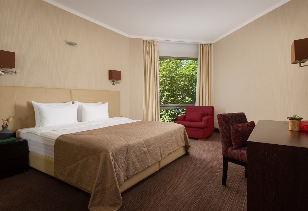 Однокомнатный номер на 1 этаже с большой кроватью. Все номера отличаются высоким уровнем комфорта. В каждом номере: автономная система кондиционирования, ванная комната с набором полотенец, фирменной косметикой и феном; телефон, кабельное телевидение, мини-бар (комплектуется за дополнительную плату), мини-сейф, в номере отсутствует балкон.Услуги и удобства