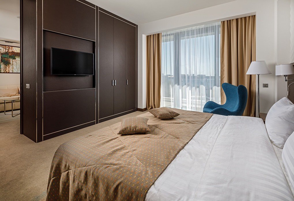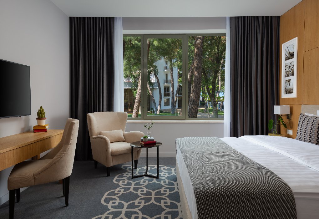 Однокомнатный номер с трансформируемой кроватью (большая французская кровать или две раздельные кровати). Смежные номера делают комфортным отдых родителей с детьми или компаний. Цветовое настроение «Свежий Лайм». Все номера отличаются высоким уровнем комфорта. В каждом номере: автономная система кондиционирования, ванная комната с набором полотенец, фирменной косметикой и феном; телефон, спутниковое телевидение, мини-бар (комплектуется за дополнительную плату), мини-сейф, балкон.Услуги и удобства