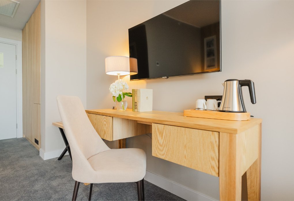 кабельное телевидение, Wi-Fi, фен, электронные замки, санузел, банные принадлежности, халаты, тапочки, гигиенические средства, двуспальная кровать, шкаф для одежды, чайный набор, сейф, вид на город, вид во двор, тумба, туалет, внутренний телефон, телевизор с плоским экраном, фанкойл, можно с питомцами, игрушки, миска, пакетик для выгулаВ номере