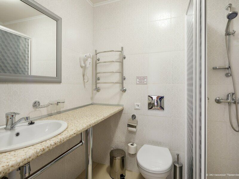 НОМЕР: У нас был стандартный номер. Шкаф, тумбочка, двухспальная кровать, раскладушка, телевизор, зеркало и под ним узенький столик (крайне не хватает освещения у зеркала), балкон с веревками и прищепками. В целом хороший номер. Душевая кабина просторная, комфортная, также есть фен, вся сантехника и электрика исправна. Убирались отлично каждой день, всегда чисто, полотенца и белье меняли часто. Мини-холодильник есть, но при заезде был пустой, пришлось просить воды, затем докладывали. Также на этаже есть гладильная доска с утюгом.