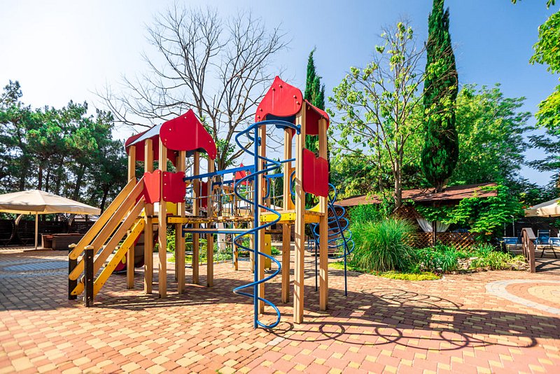 Современный детский игровой комплекс пансионата — это не просто детский игровой лабиринт. Это целый комплекс детского спортивного оборудования. Он состоит из песочницы, качелей для малышей и детей постарше, каруселей.