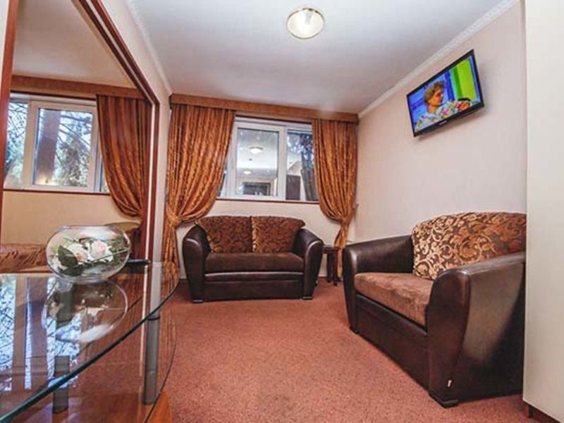Удобное расположение: в центре города, в 150 м от набережной и песчаного пляжа, рядом с развлекательными центрами – аквапарком «Дельфин», парком аттракционов, барами и кафе.