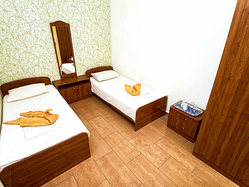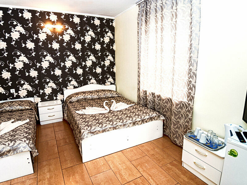 Отель состоит из одного 3-этажного корпуса. Гости размещаются в 2, 3, 4-местных 1-комнатный номерах со всеми удобствами. На территории отеля есть кухней для самостоятельного приготовления пищи.