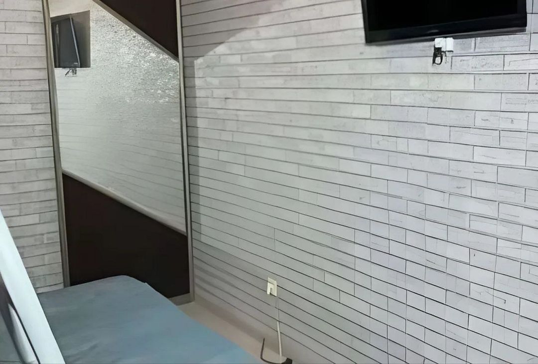В номере кондиционер, холодильник, телевизор, чайник. Номер без балкона, окна выходят на город. Смена белья через 5 суток, ежедневная смена полотенец, влажная уборка по запросу. Утюг и гладильная доска на этаже.