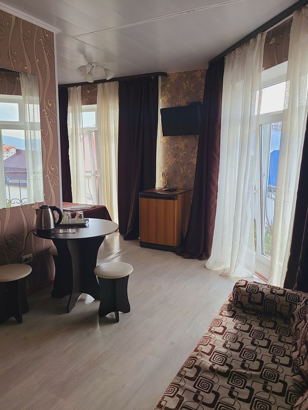 Трехместный номер комфорт (3 номера) на втором этаже вход отдельно. Все три номера объединяет один общий балкон. Три основных места.