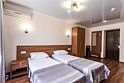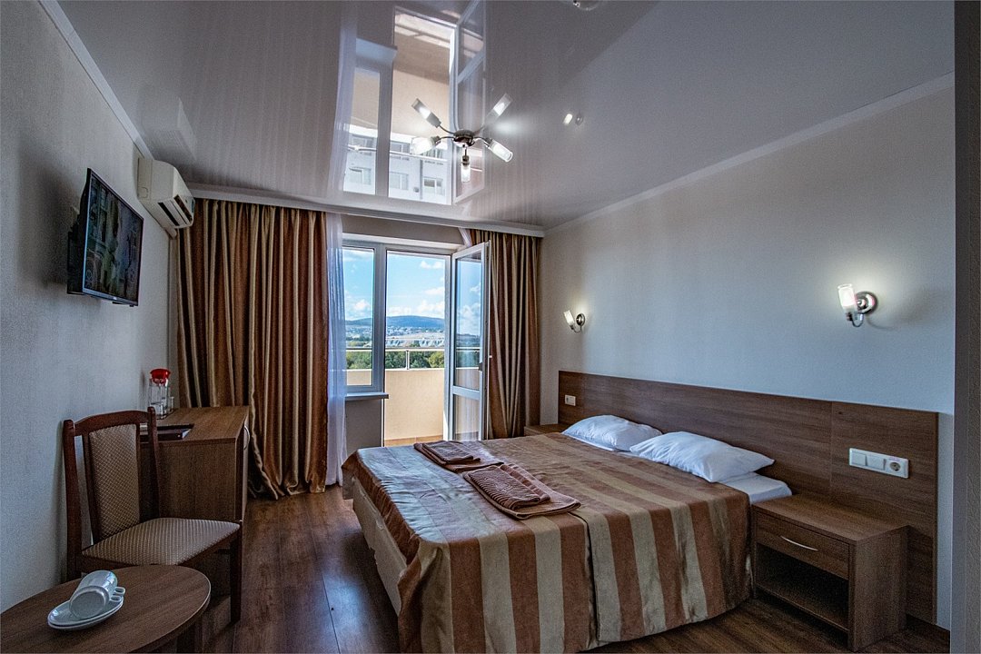 Двухместный номер Стандарт площадью 16 кв.м., с балконом. На основные места предоставлена двуспальная/две односпальные кровати. Одно дополнительное место на еврораскладушке. В номере: зеркало, прикроватные тумбочки,стулья, холодильник, телевизор, система климат-контроль. Санузел с душевой кабиной, также имеются туалетные и банные принадлежности, фен.Услуги и удобства