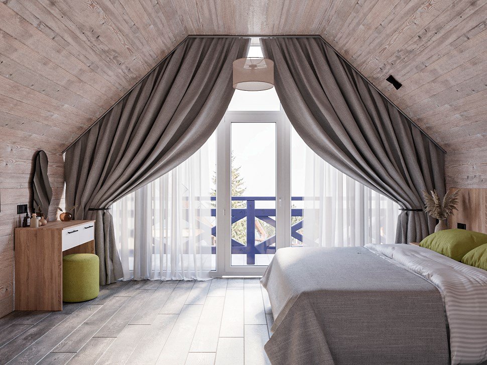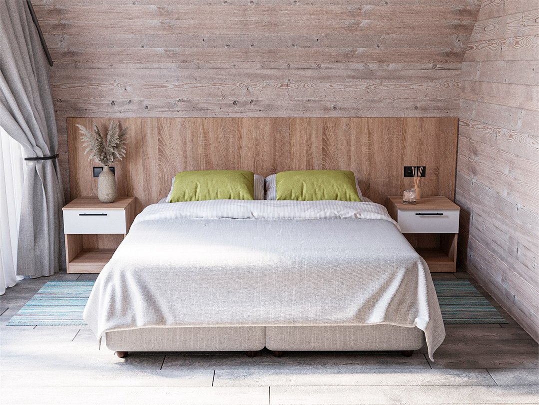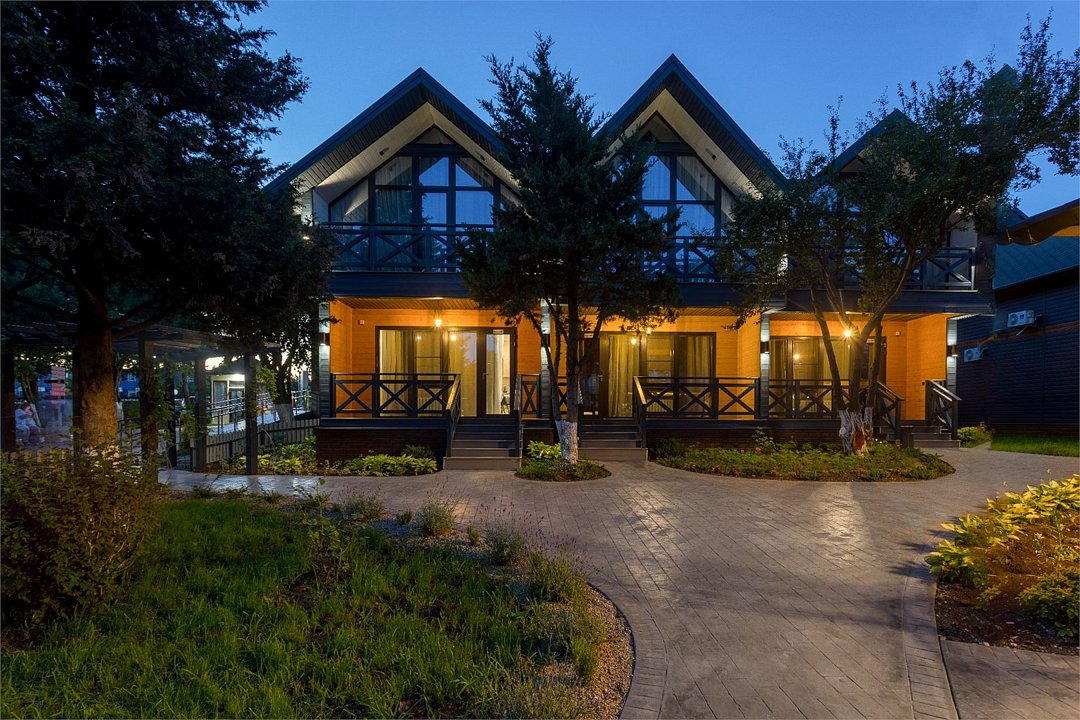 Двухэтажный дом в стиле "Шале" площадью от 50 кв.м., на каждом этаже балкон. На первом этаже располагается гостиная с кухонным уголком, на втором этаже спальня с двуспальной кроватью, дополнительные места это диваны. В доме имеется всё необходимое для комфортного отдыха всей семьей: холодильник, телевизоры, электрический чайник, микроволновая печь, система климат-контроль. Санузел с душевой кабиной на 1 этаже, а также санузел на втором этаже. Также имеются туалетные и банные принадлежности, тапочки, халат, фен.Услуги и удобства