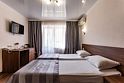 Однокомнатный двухместный номер Премиум площадью 25 кв.м., с балконом. На основные места предоставлена двуспальная/две односпальные кровати. Два дополнительных места на кресле или еврораскладушке. В номере: зеркало, прикроватные тумбочки, стол, стулья, холодильник, телевизор, электрический чайник, система климат-контроль. Санузел с душевой кабиной, также имеются туалетные и банные принадлежности, тапочки, халат, фен.Услуги и удобства