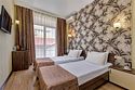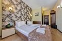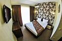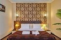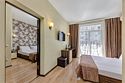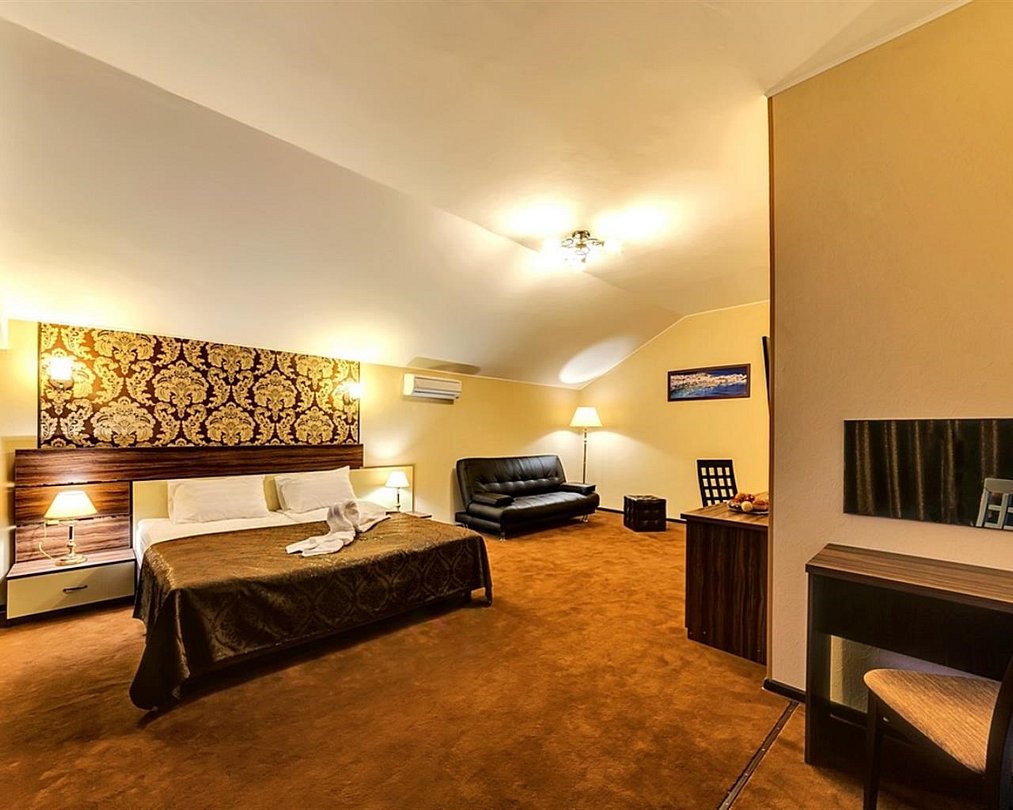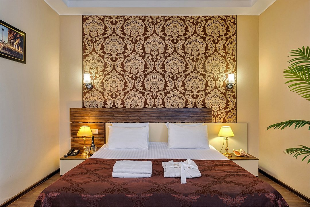 Однокомнатный номер, который представляет собой жилую комнату сбалконом, рассчитанную на проживание одного-двух человек. На ваше усмотрение менеджеры отеля подберут номер с одной большой кроватью (KING) либо двумя раздвинутыми (TWIN) спальными местами. Оформление номера в спокойных фисташковых тонах позволит гостям окунуться в атмосферу расслабляющего и комфортного отдыха.Услуги и удобства