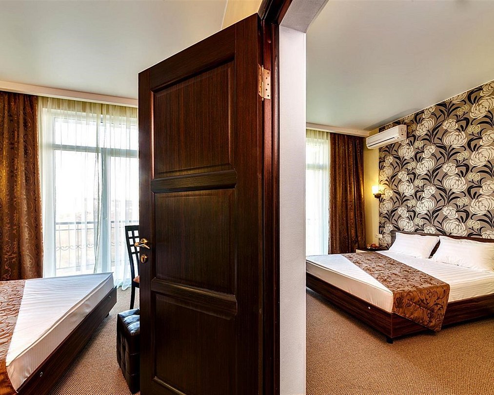 Стандартный двухкомнатный номер для проживания 3-4 человек. В каждой комнате свой санузел, большая кровать, кондиционер и всё необходимое для комфортного проживания,а также два балкона с видом на горы и город, что позволит комфортное проживание с семьей.Услуги и удобства