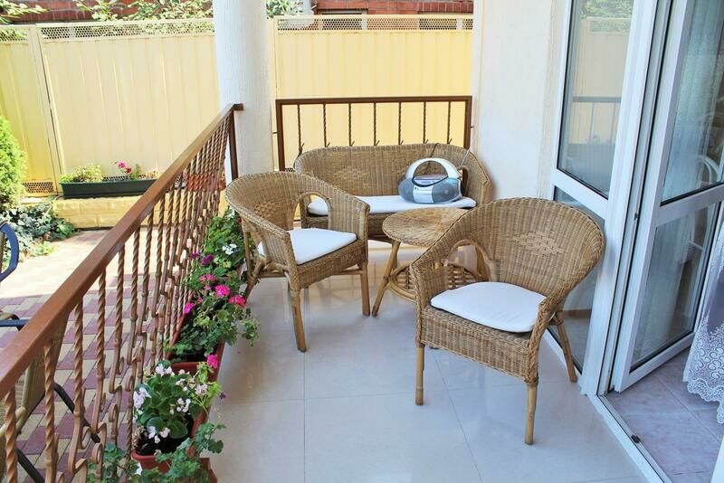 В гостевом доме есть кафе, общая кухня для удобства отдыхающих и принадлежности для барбекю во внутреннем дворике. К услугам гостей уличный бассейн с детской секцией, игровая площадка с качелями, а владельцы автомобилей могут припарковаться на охраняемой парковке.