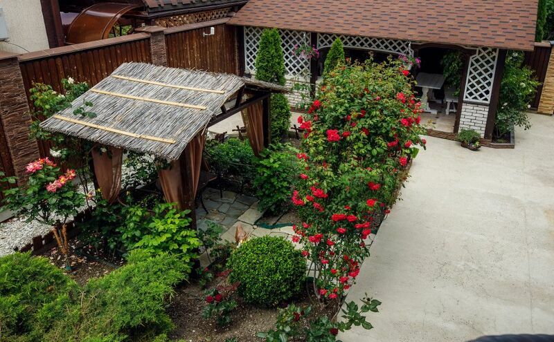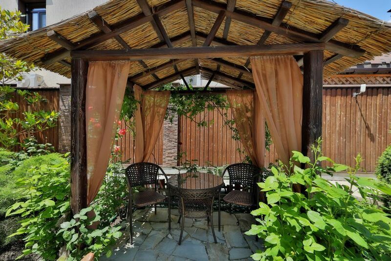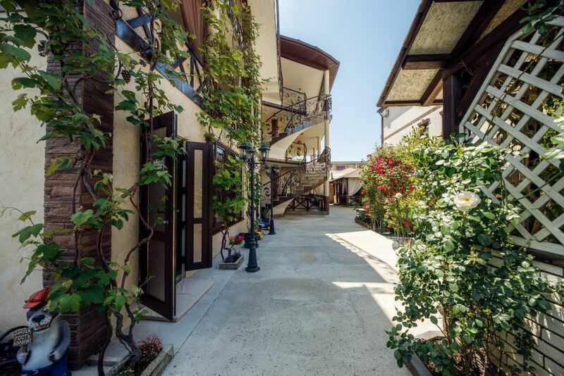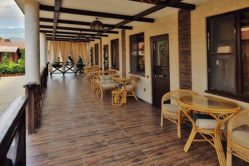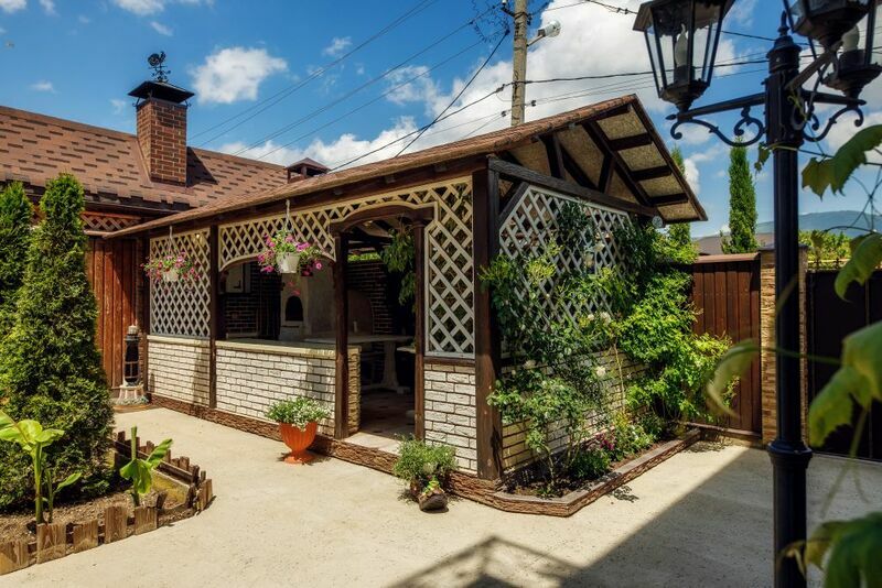На территории гостевого дома организованы три общие хорошо оборудованные кухни — одна на каждые четыре номера. Также предусмотрена зона барбекю с мангалами, есть летняя веранда. В распоряжении гостей охраняемая парковка, интернет, услуги прачечной.