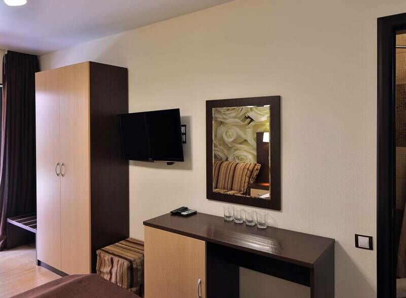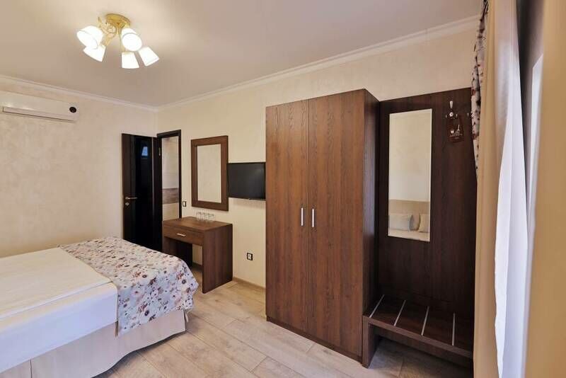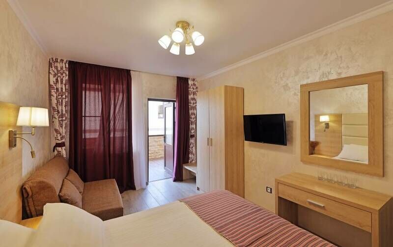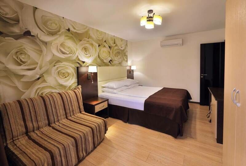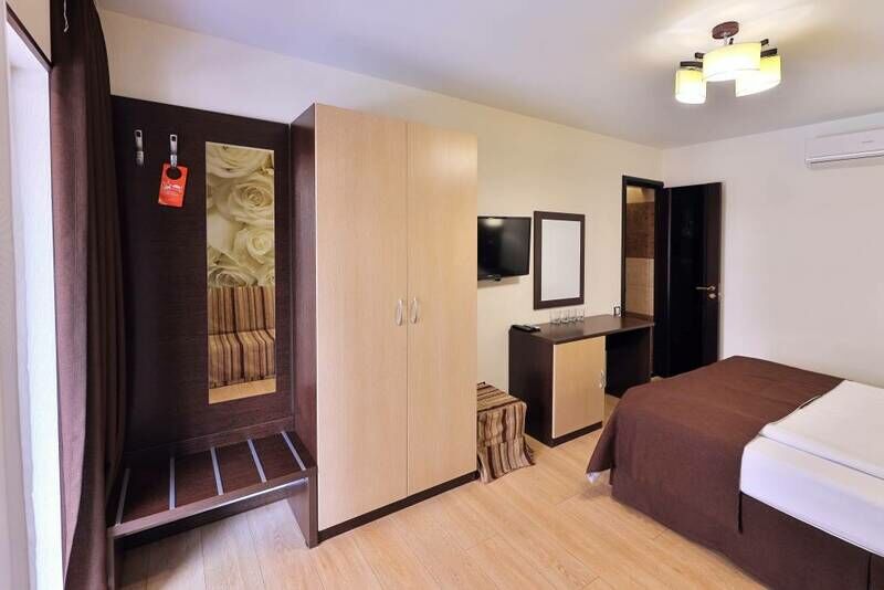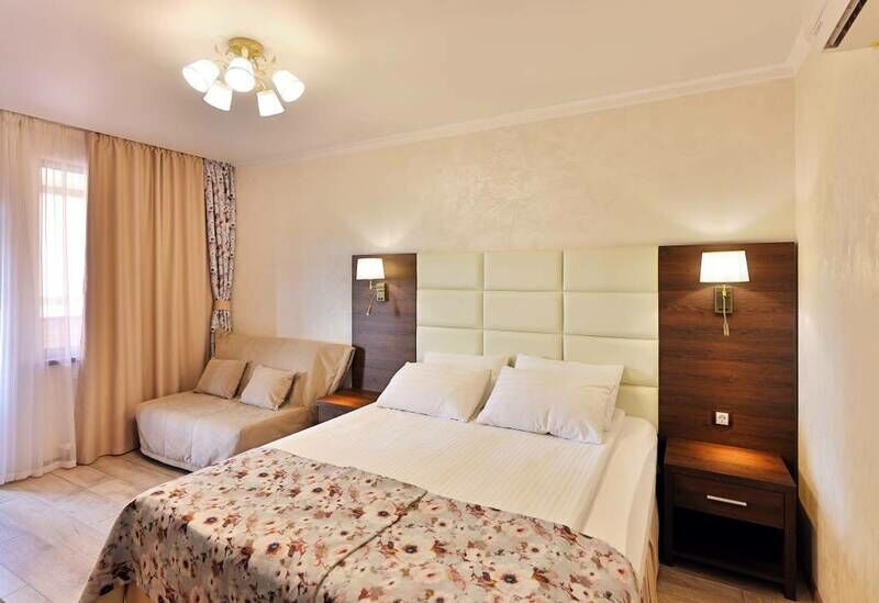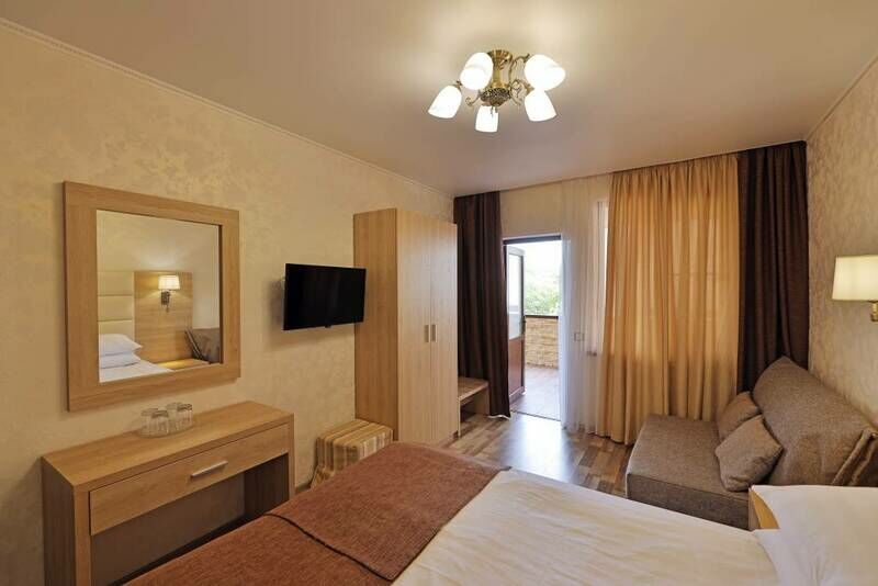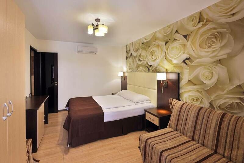 Сам отель представляет из себя трехэтажный корпус, расположенный на закрытой территории в тихом и зеленом квартале города. В распоряжении гостей двухместные стандартные номера с индивидуальными удобствами. Каждый номер оснащен кондиционером и другой бытовой техникой: есть телевизор, фен, электрочайник, небольшой холодильник. В ванных комнатах для отдыхающих подготовлены наборы косметических принадлежностей.