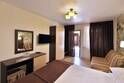 Двуспальная кровать или две односпальные кровати, мебельный гарнитур, холодильник, кондиционер, телевизор, чайник, фен, санузел (душ+туалет), балкон/терраса,
