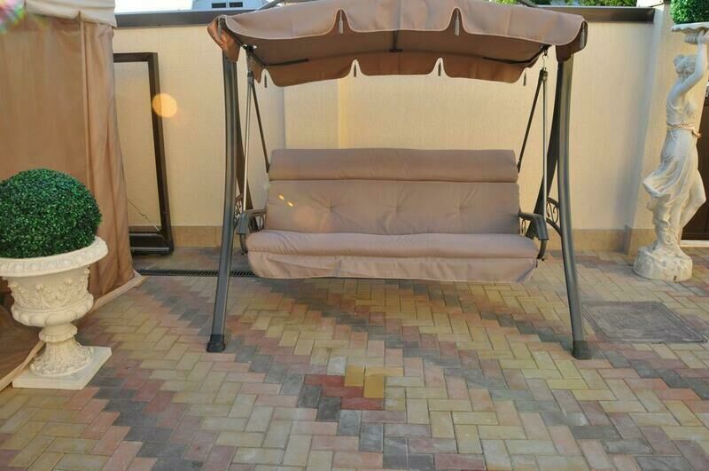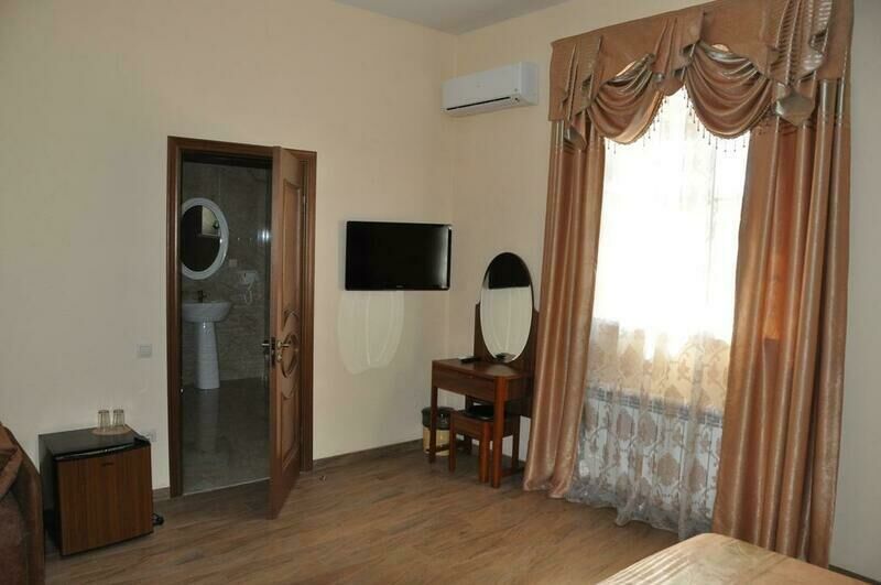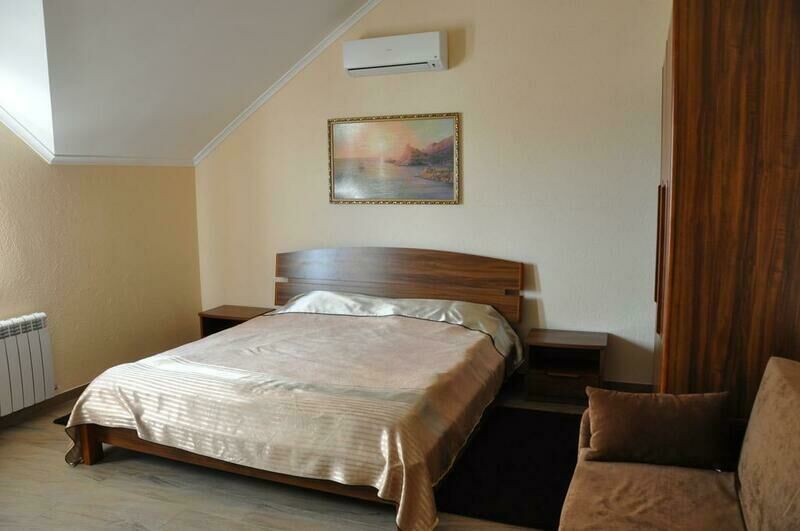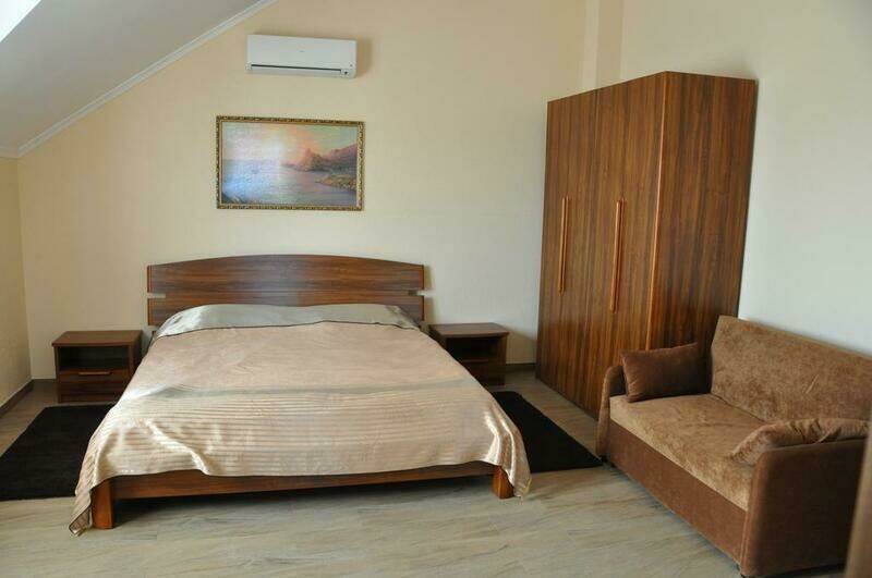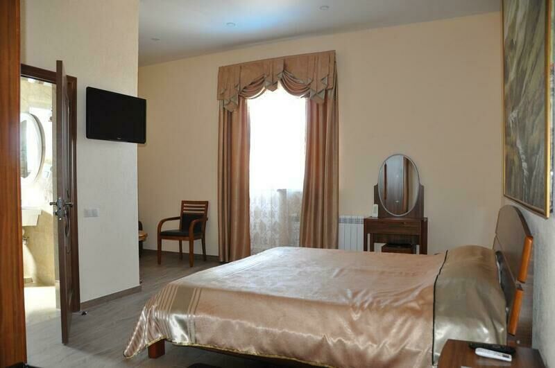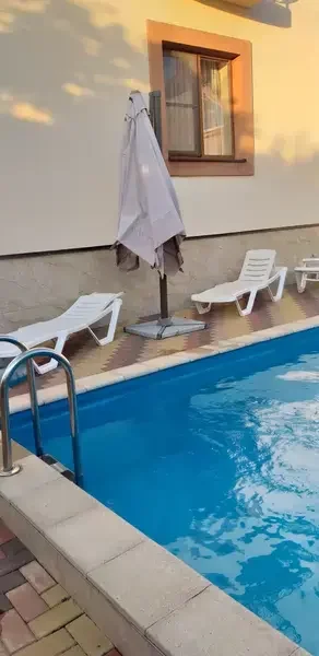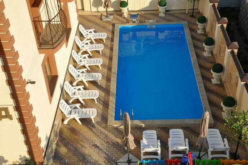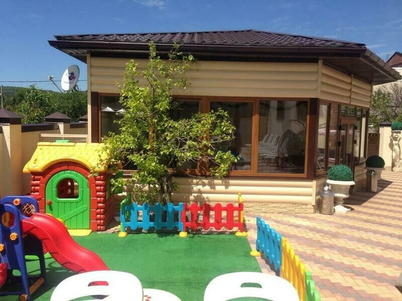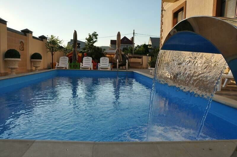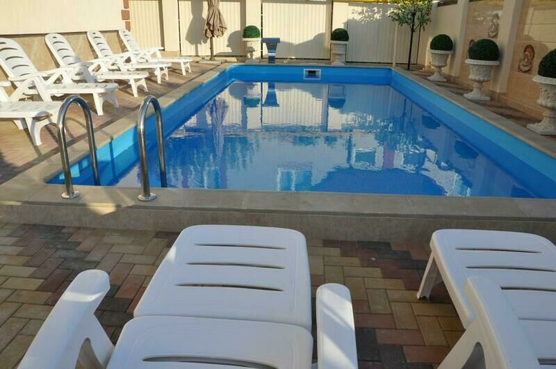В уютном дворе гостевого дома большой (10 х 4.5 м) подогреваемый бассейн; лежаки; детский городок; батут; фонтан; столики; качели. Предлагается бесплатный доступ к сети интернет через беспроводную сеть WiFi. Видеонаблюдение по всей территории.