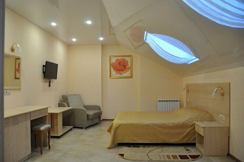 Трехэтажный корпус гостевого дома, разместился на благоустроенной закрытой территории. Гостей ожидают двухместные номера разных категорий, включая бюджетные варианты в цокольном этаже. В комнатах предусмотрен индивидуальный санузел, есть кондиционер и телевизор.