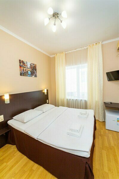 Кровать двуспальная большая, односпальная кровать, мебельный гарнитур, мини-холодильник, кондиционер, телевизор, санузел (душ+туалет), банные принадлежности