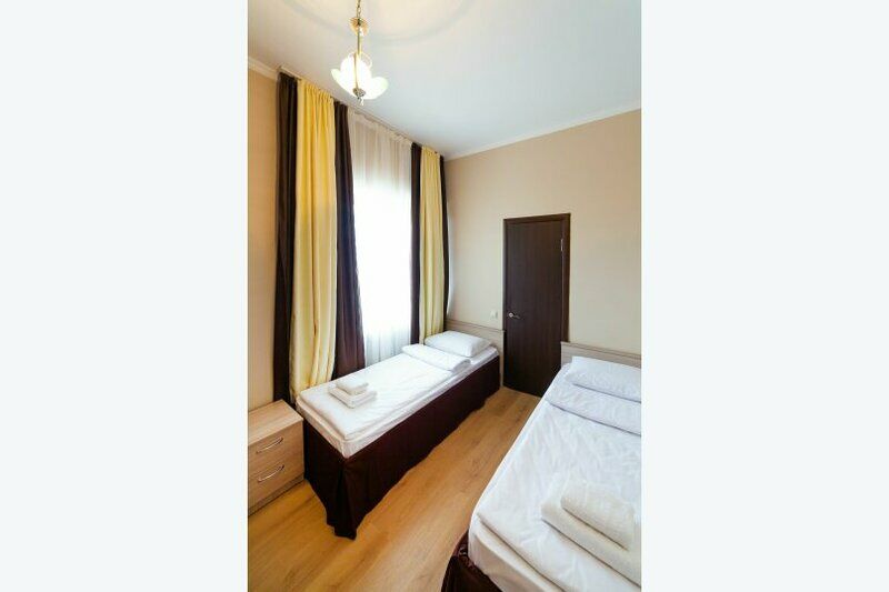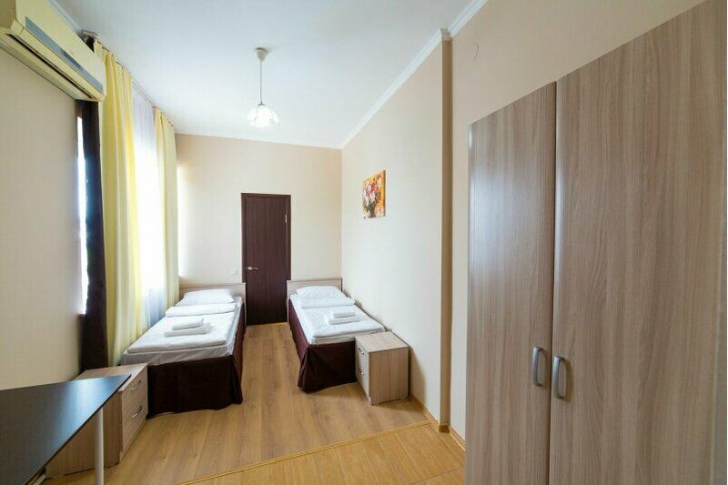 Жилой фонд расположился в корпусе в три этажа и на небольшой озелененной и уютной территории. Для расселения гостей оборудованы 14 номеров со всеми необходимыми удобствами, а также с кондиционером, телевизором, холодильником и душевой. При гостевом доме обустроена кухня для приготовления пищи, зона для барбекю с мангалом. Среди услуг для отдыхающих есть бассейн с сезонным режимом работы, библиотека и парковка для автовладельцев под охраной. В 10-15 минутах простирается пляж, обустроенным всем необходимым.