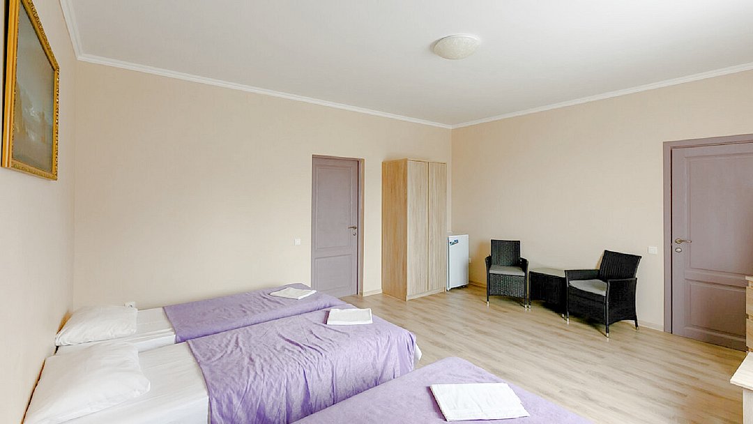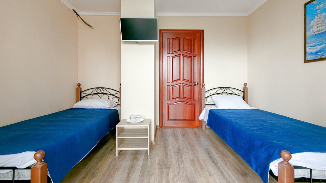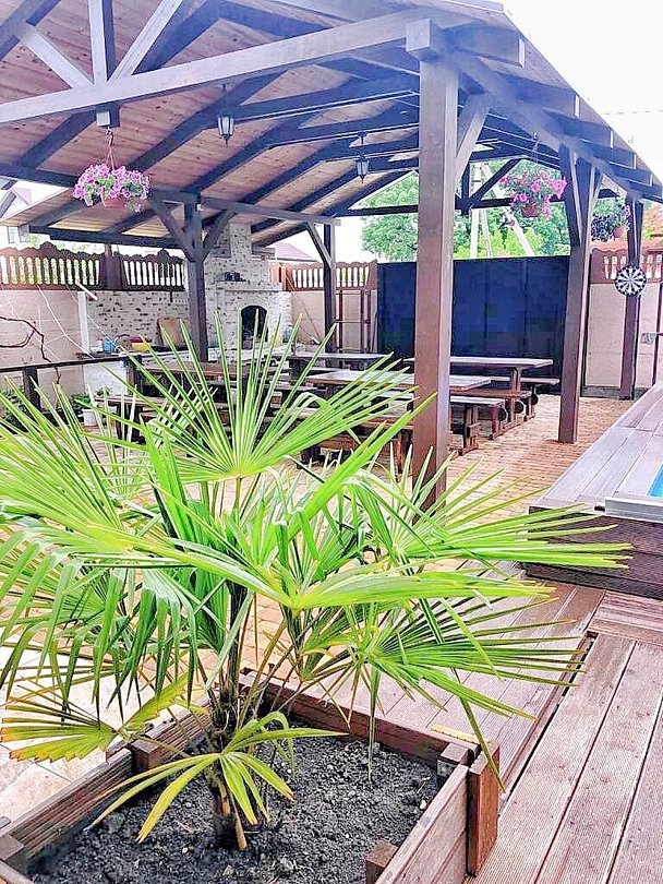 Гостевой дом «Три пальмы» расположен в Голубой бухте, всего в 10 километрах от центра Геленджика. Этот гостевой дом станет идеальным местом для незабываемого отдыха на побережье Черного моря в Геленджике. Бухта отлично подходит для семейного отдыха благодаря чистому морю, тишине, приятной природной атмосфере и близости к аттракционам и развлечениям. В шаговой доступности работают кафе, магазины, экскурсионные бюро, сувенирные лавки и многое другое.