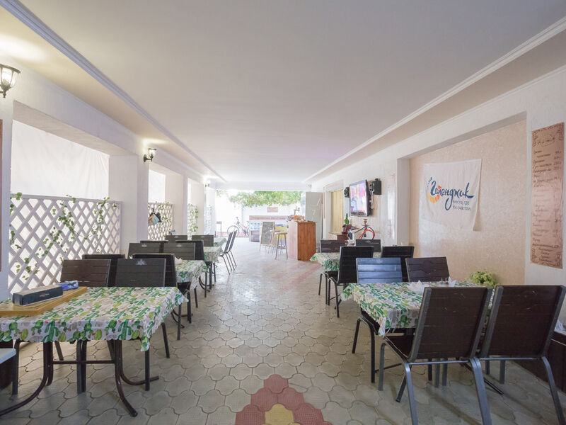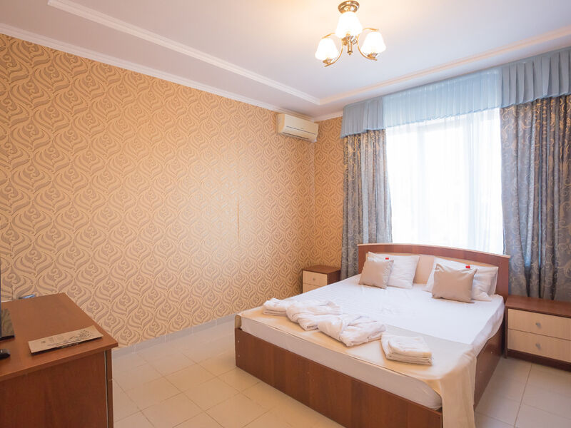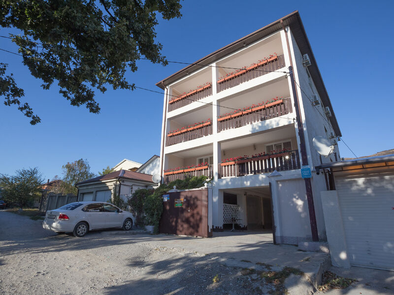 Гостевой дом представлен трехэтажным отелем с меблированными лоджиями-террасами. Для автовладельцев организована закрытая автостоянка. Каждый номер хорошо меблирован и оснащен стандартной бытовой техникой с собственным санузлом и ванной. На третьем этаже отеля располагаются семейные стандартные двухкомнатные номера с мини кухней - две комнаты, в каждой из них душ и туалет.